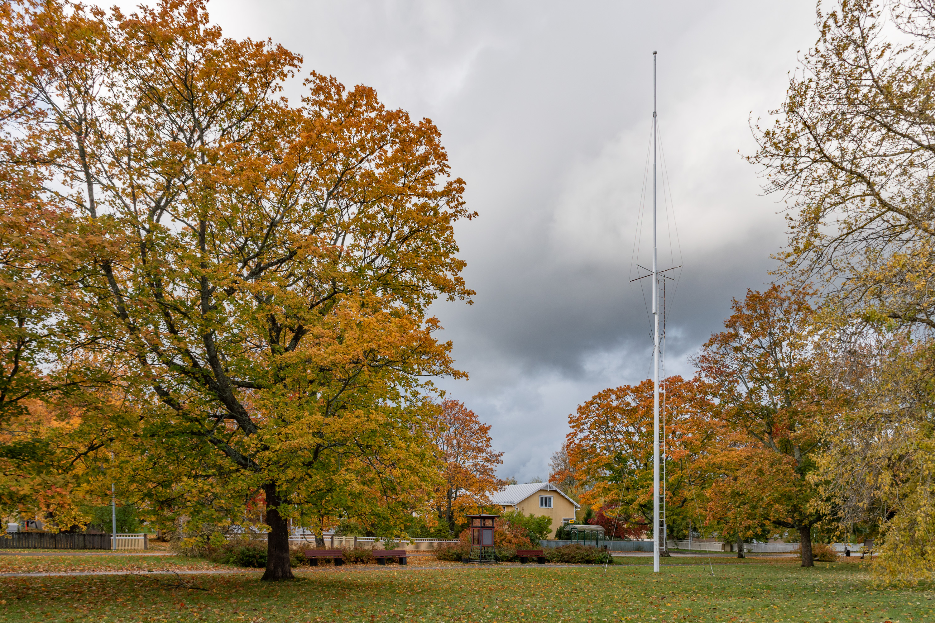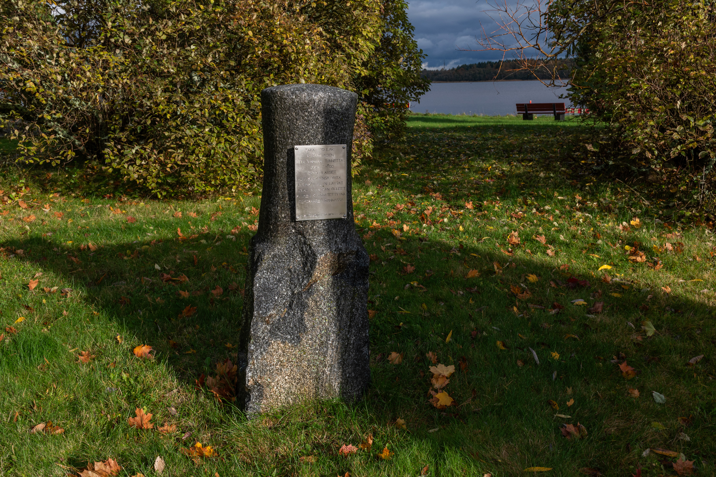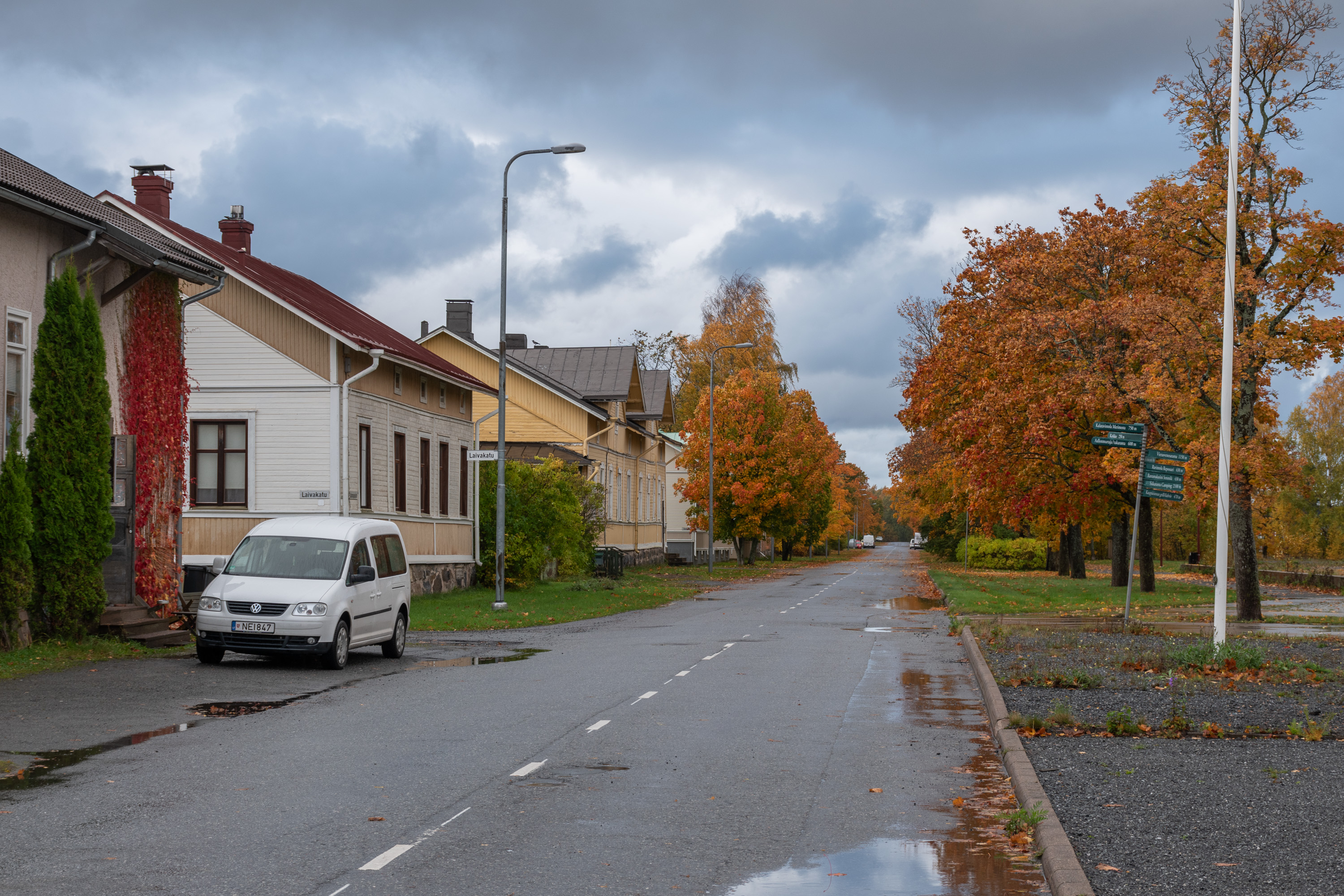 1. Приезжая на Репосаари, будь то на машине или на автобусе, первым делом мы видим набережную с кленовой аллеей — Портовый бульвар (Satamapuisto). Три раза я раньше был на Репосаари, но все было в некрасивые сезоны и/или очень коротко, так что в этот раз теперь для основательной прогулки выбрал самое красивое время осени — лишь несколько недостающих фотографий добавил со старых поездок.
