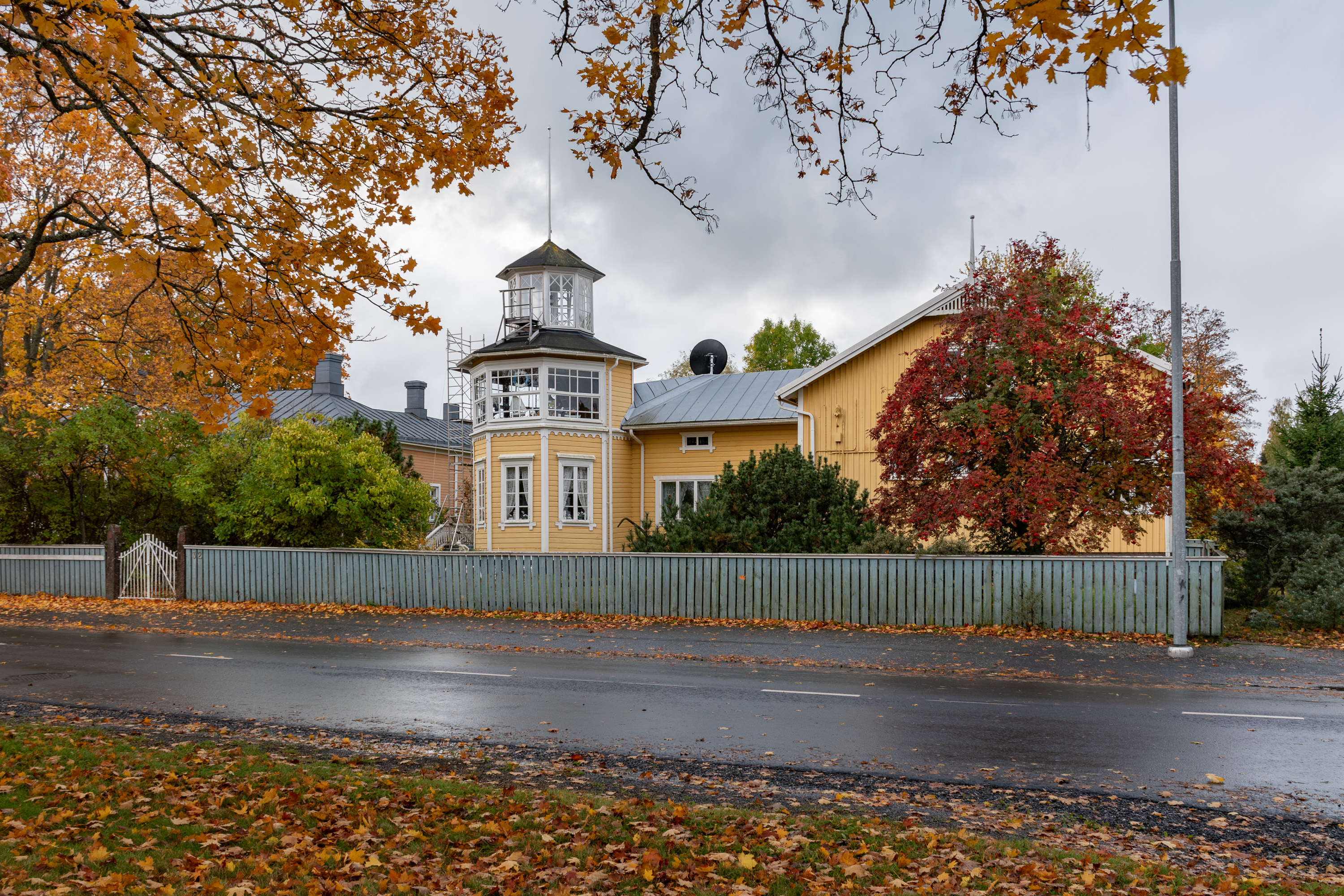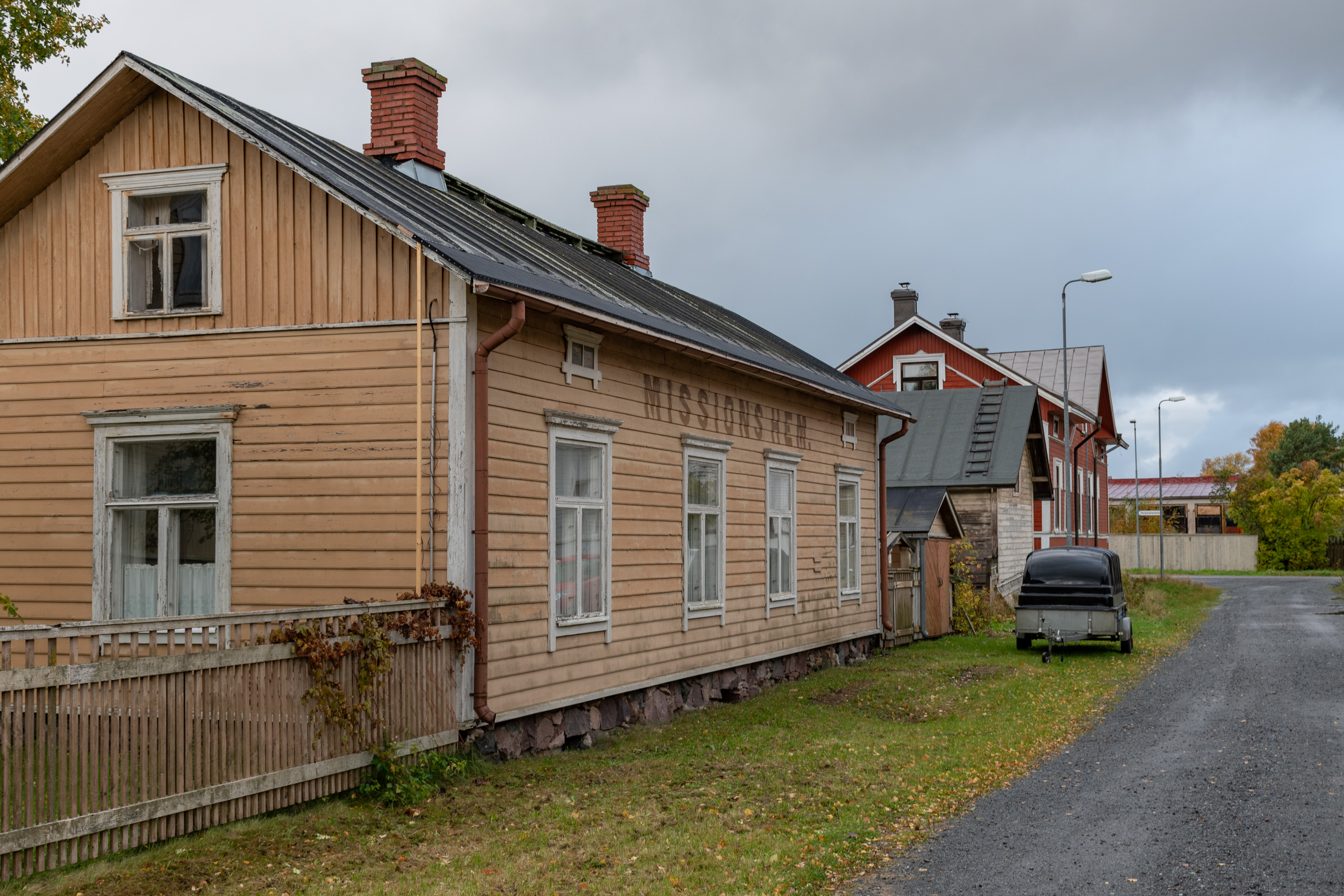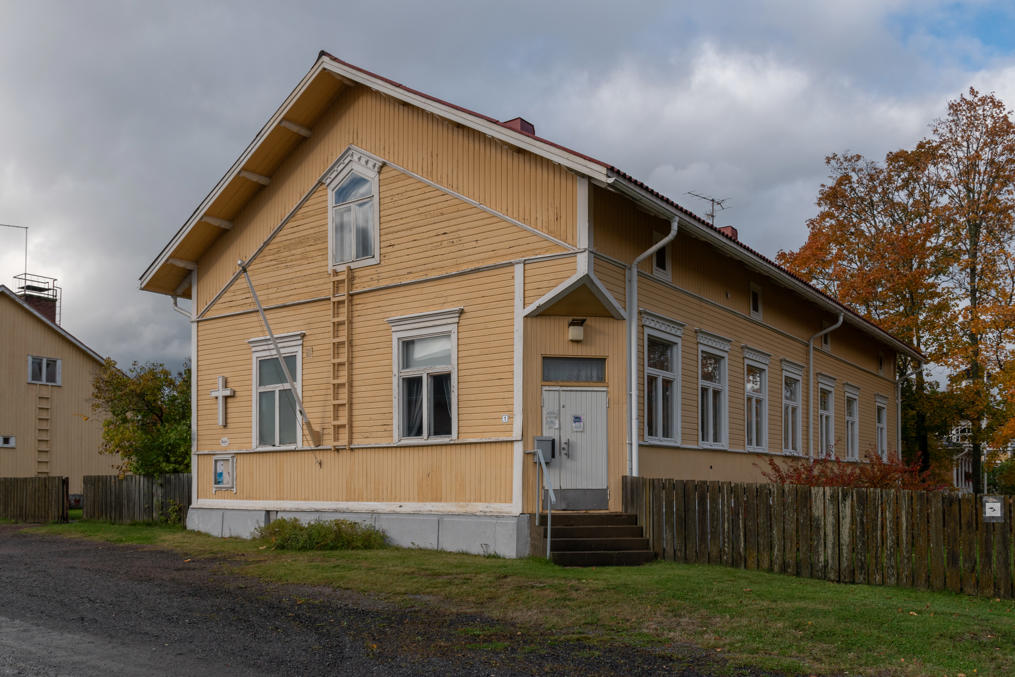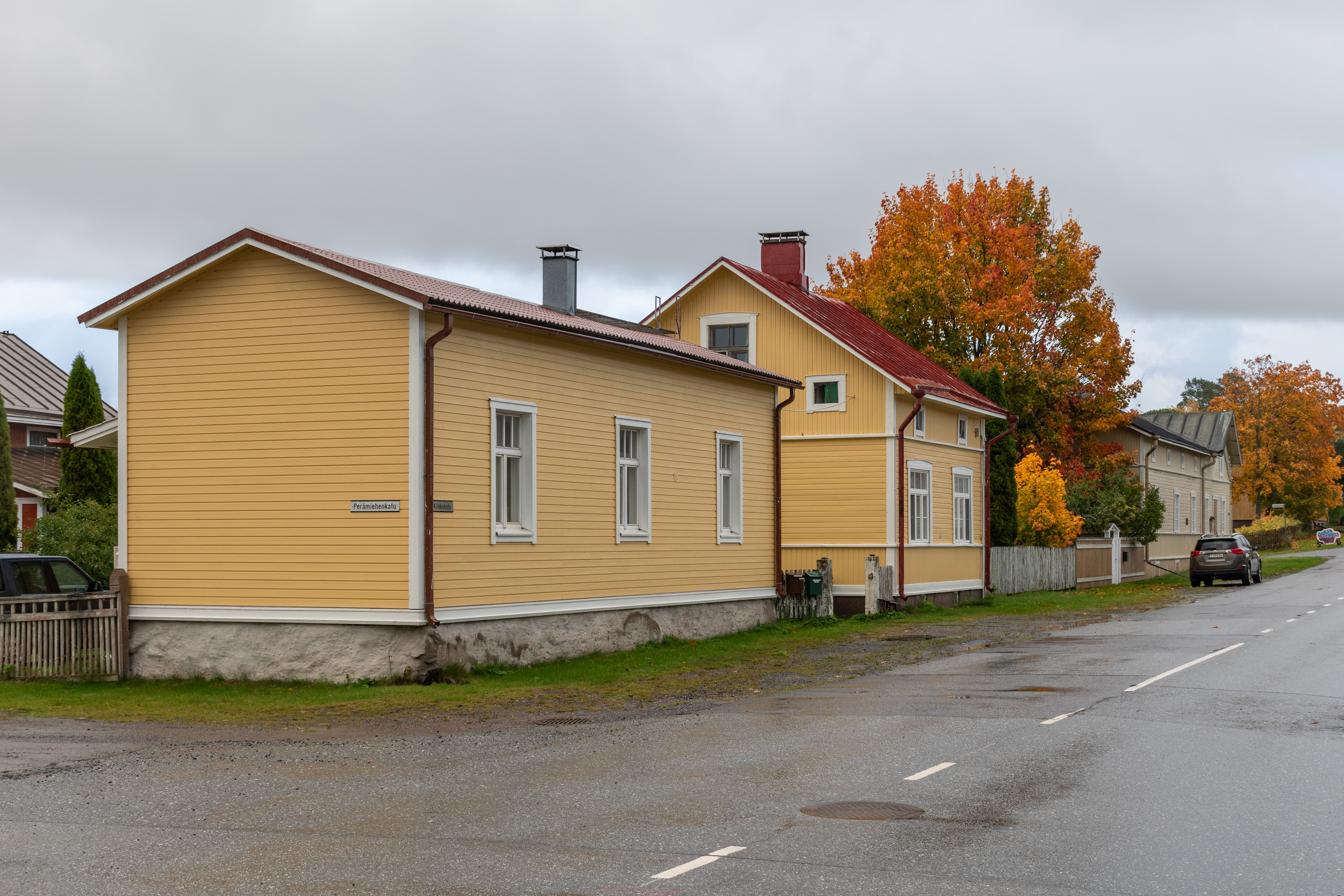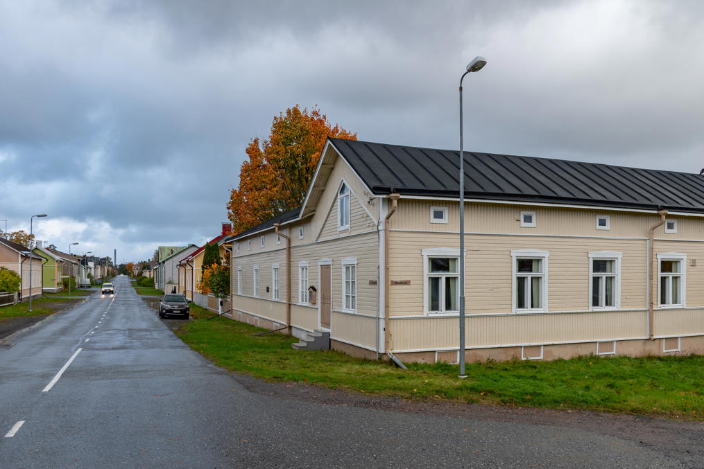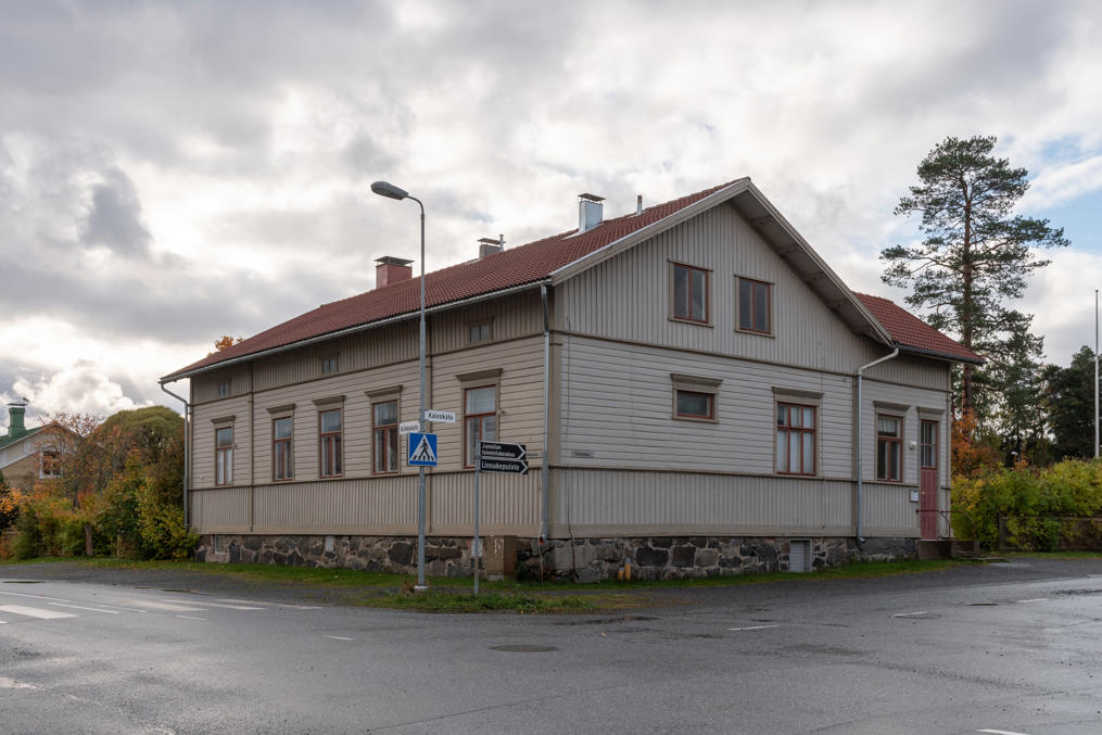 47. На углу Адмиральской (Amiraalinkatu) — старый дом добровольческой пожарной бригады (VPK), 1901 года. На первый выезд пришлось выезжать тогда прямо с церемонии открытия дома: загорелась лесопилка (сгорела тогда дотла, но заново отстроили). В 1917 местные красные попытались основать свою пожарную бригаду и отбили дом у старой, но в свою очередь на помощь старой приехала бригада из Пори, отбили обратно. Дом служил и служит для разных мероприятий, а пожарная бригада тоже существует до сих пор — рядом стоит другое невзрачное здание с несколькими пожарными машинами за воротами.