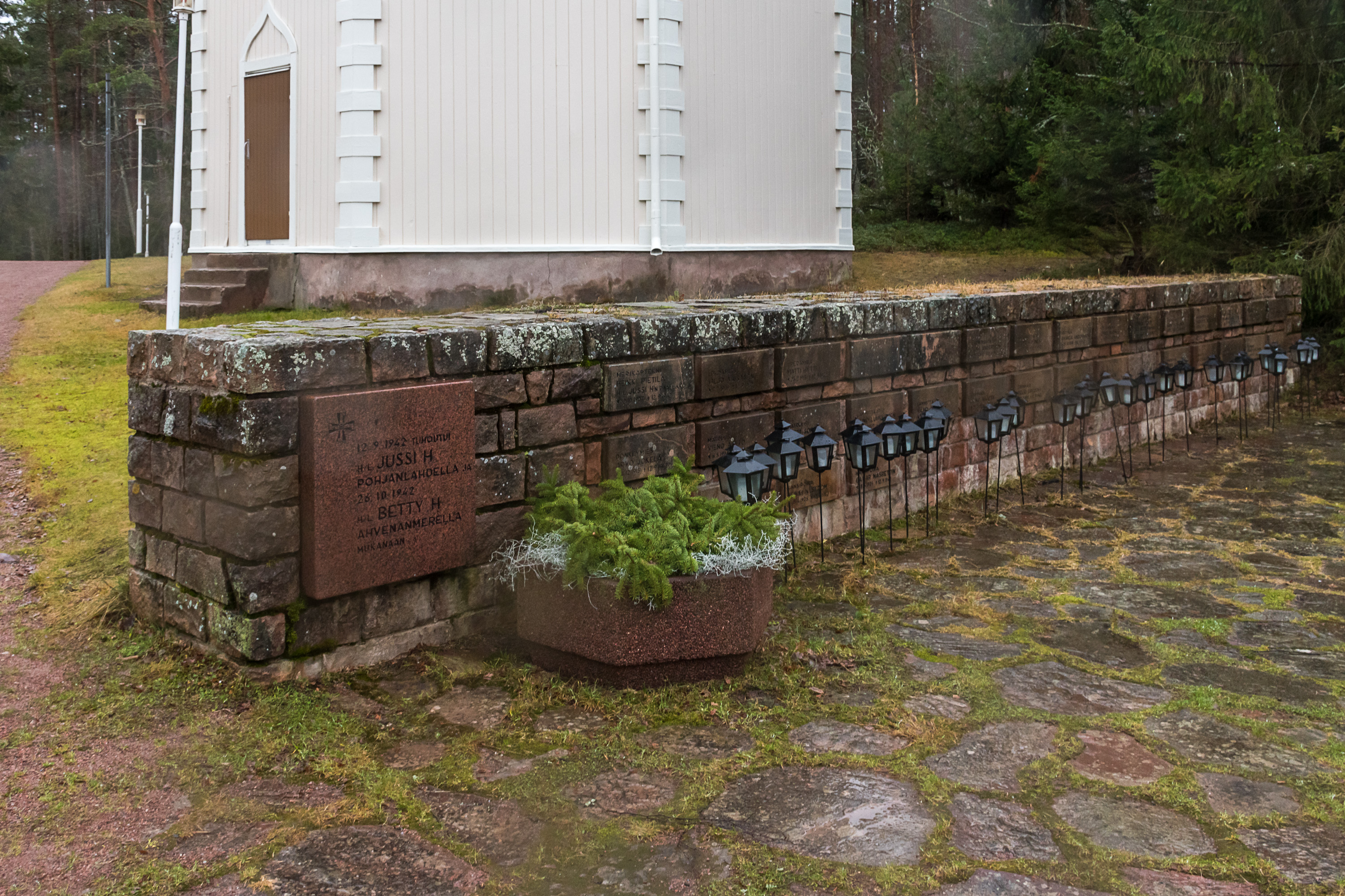26. Кладбище примыкает к Репосаарской церкви, построенной в 1876 году. Одними из главных инициаторов и спонсоров строительства церкви были норвежские моряки — почему-то именно они были особо набожным народом тогда — и, вероятно, поэтому церковь, как считается, по стилю вышла довольно близкой к норвежским. Хоть я и много катаюсь по Норвегии, с архитектурой норвежских церквей я знаком мало и не могу прокомментировать — мне они всегда казались там очень незамысловатыми, ну, кроме средневековых деревянных ставкирок (как в Ломе, например) и отдельных крутых соборов. Строил церковь, однако, швед из Стокгольма, Герман Мюллер (Herman Müller), более известный как художник. В церкви венчались в числе прочих предыдущий президент Финляндии Саули Ниинистё с супругой Йенни Хаукио.