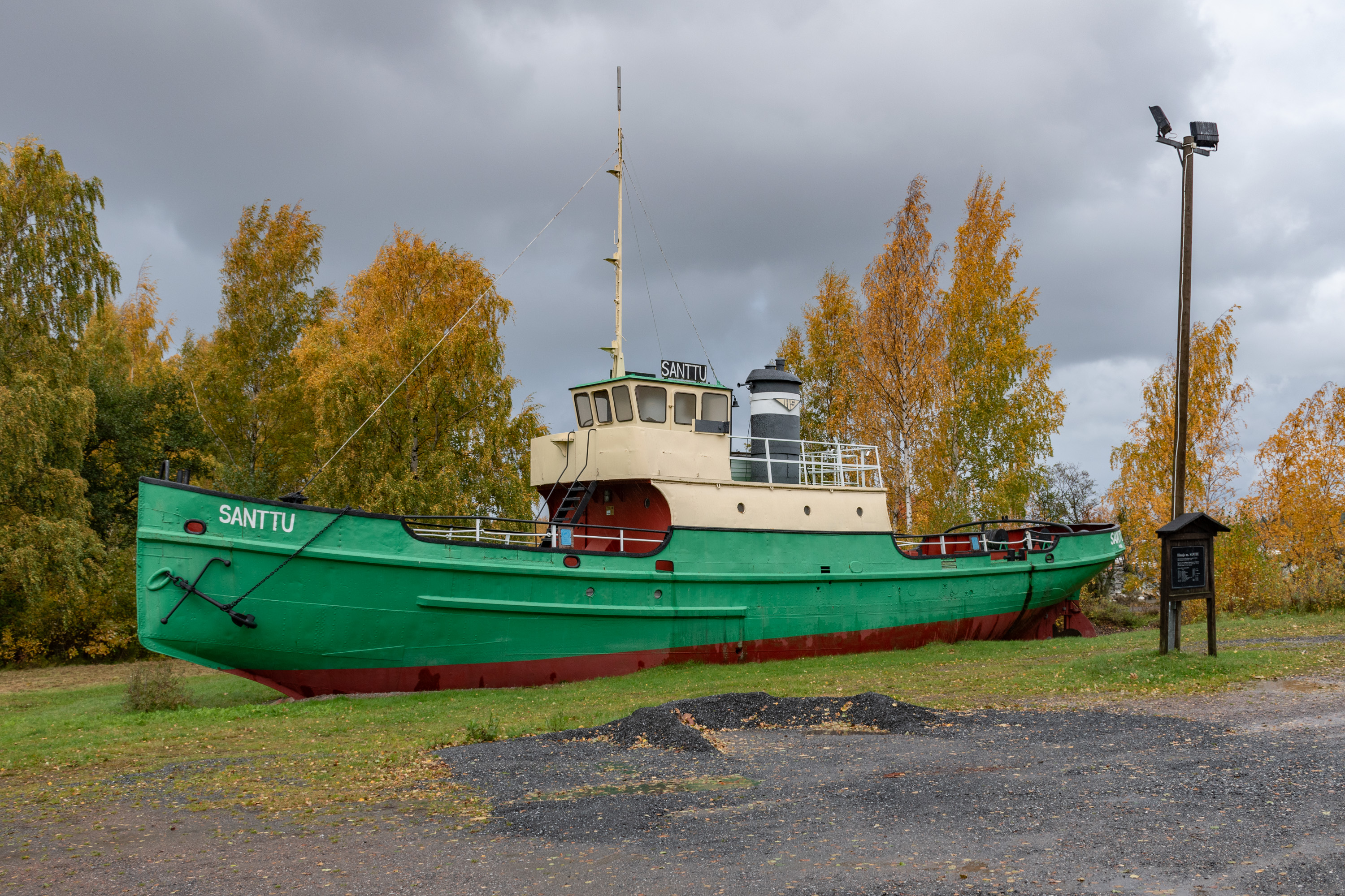 8. Чуть дальше на берегу стоит музейное судно, буксир Santtu, построенный в 1894 в Хельсинки, изначально под названием "Бомба" для российского флота, для обслуживания морских крепостей Финского залива. В 1918 он, как и многие другие оставшиеся в Финляндии суда, перешел в собственность Финляндии, и работал под названием Santahamina на, собственно, базе флота Сантахамина в Хельсинки, с 1924 на гражданской службе, на озерах на Сайме, с 1938 на Репосаари, где получил нынешнее название. В 1945-1948 как раз занимался расчисткой мин. Работал на Репосаари и Мянтюлуото до 1970-х, подарен последними владельцами городу Пори в 1981 и установлен как музейный. Не самый эпический в мире корабль, но достойный трудяга.
