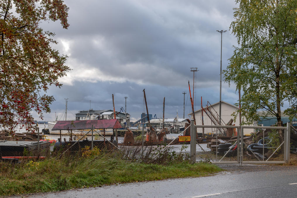 54. Порт Мянтюлуото начинается всего в 700 метрах от этого места, напротив через пролив, и на него здесь открываются хорошие виды. Вот например грузят медный концентрат (производства Boliden, из Харьявалты).