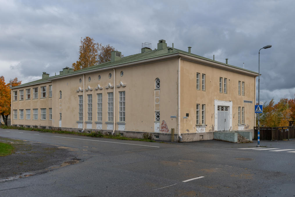 45. На время ремонта учатся в менее старом здании на углу Колодезной (Kaivokatu), где были раньше 7-9-й классы (yläaste) — сейчас на Репосаари остались только 1-6-й (ala-aste). На здании видна памятная табличка, говорящая о том, что в 1931-1944 здесь действовало отделение шюцкора и "Лотты Свярд" (добровольческих военизированных организаций). Нередко подобные здания, по архитектуре которых видно, что они из 1920-30-х, и которые зачастую выделяются из застройки размером и/или тем, что построены из камня/кирпича в деревянных кварталах, для шюцкора изначально и строились — и после запрета шюцкора по требованию СССР в 1944 их в школы же нередко и перестраивали.