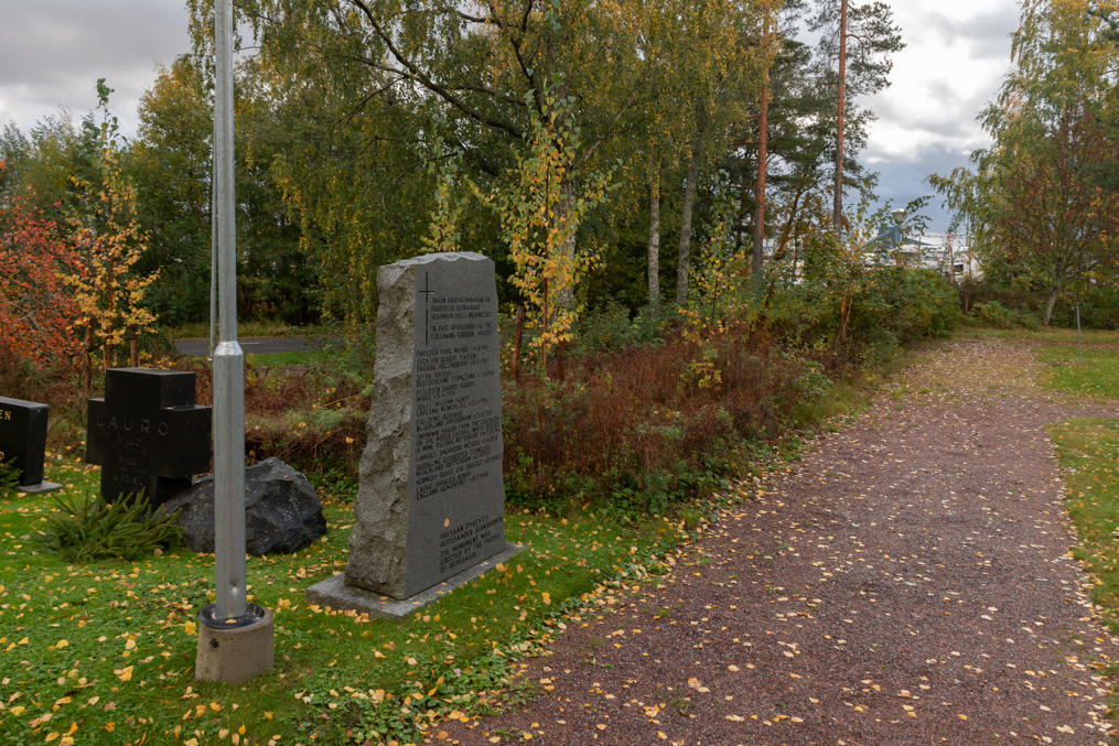 27. Перед церковью стоит памятник погибшим на миноносце S2 в 1925 году. Миноносец "Прозорливый", класса "Сокол", был построен на Невском заводе в 1901 для Тихоокеанского флота, на Балтику был передан с другими однотипными с началом Первой мировой (и переименован в "Гагару"), и, как и тот буксир Santtu/"Бомба", в 1918 после выдворения остатков российского флота из Финляндии явочным, так сказать, порядком вошел в состав флота финляндского (из-за ледовой обстановки миноносцы не могли уйти из Хельсинки сами), где ему дали незамысловатое имя S2 — наряду с "Рьяным"/"Совой" (S1), "Послушным"/"Коршуном" (S3), "Резвым"/"Вороном" (S4), "Подвижным"/"Альбатросом" (S5), а также принадлежавшим к другому классу более маленьким S6. Три из них Финляндия вернула Советской России по Тартусскому миру 1920.