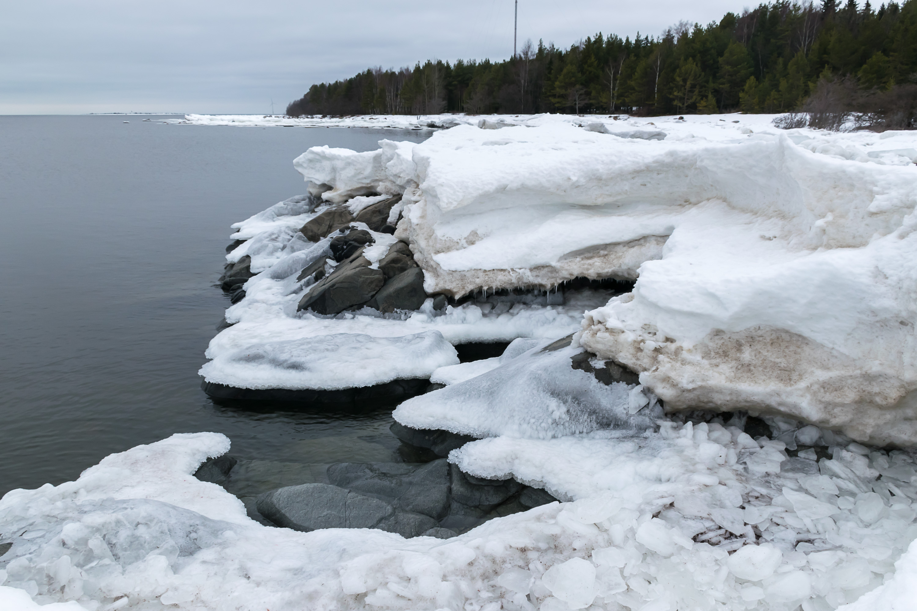 59. Побережье южной части Ботнического залива обычно обмерзает не очень сильно, а Репосаари находится достаточно далеко от берегов, так что лед был на скалах, но не на море.