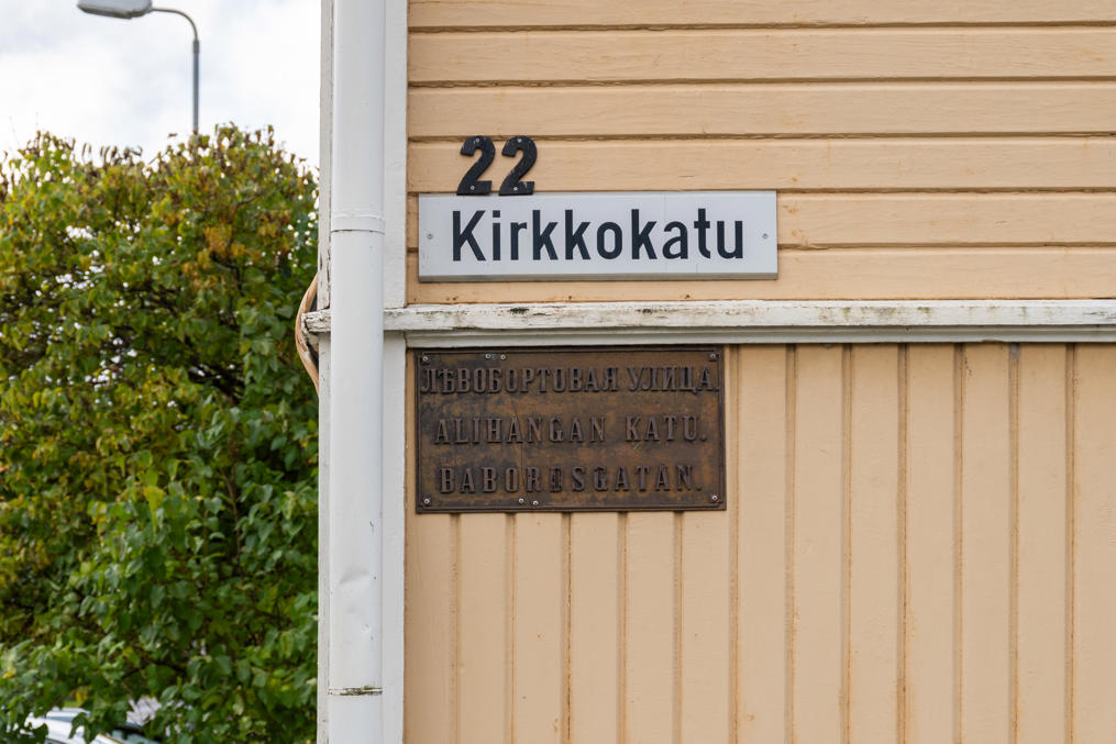 31. Когда-то она была не Церковной, а Левобортовой — видимо, какая-то из параллельный была и Правобортовой. По-шведски левый и правый борт — babord и styrbord, как и во многих европейских языках (в английском port и starboard), по-фински тоже обычно говорят paapuuri и tyyrpuuri, но тут вот используется слово alihanka, которого более нигде не встречал — может, местное. В Пори и Репосаари, по-видимому, есть традиция беречь такие старые таблички еще с царских времен — не то чтобы прям массово, но встречал в нескольких местах, что уже чаще, чем можно сказать про большинство других городов.