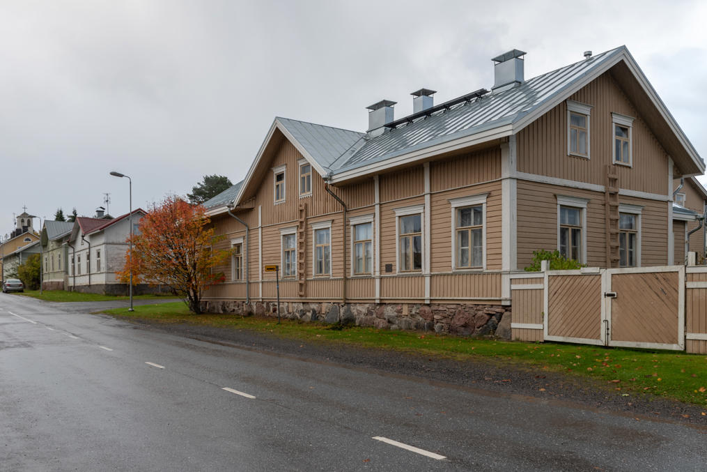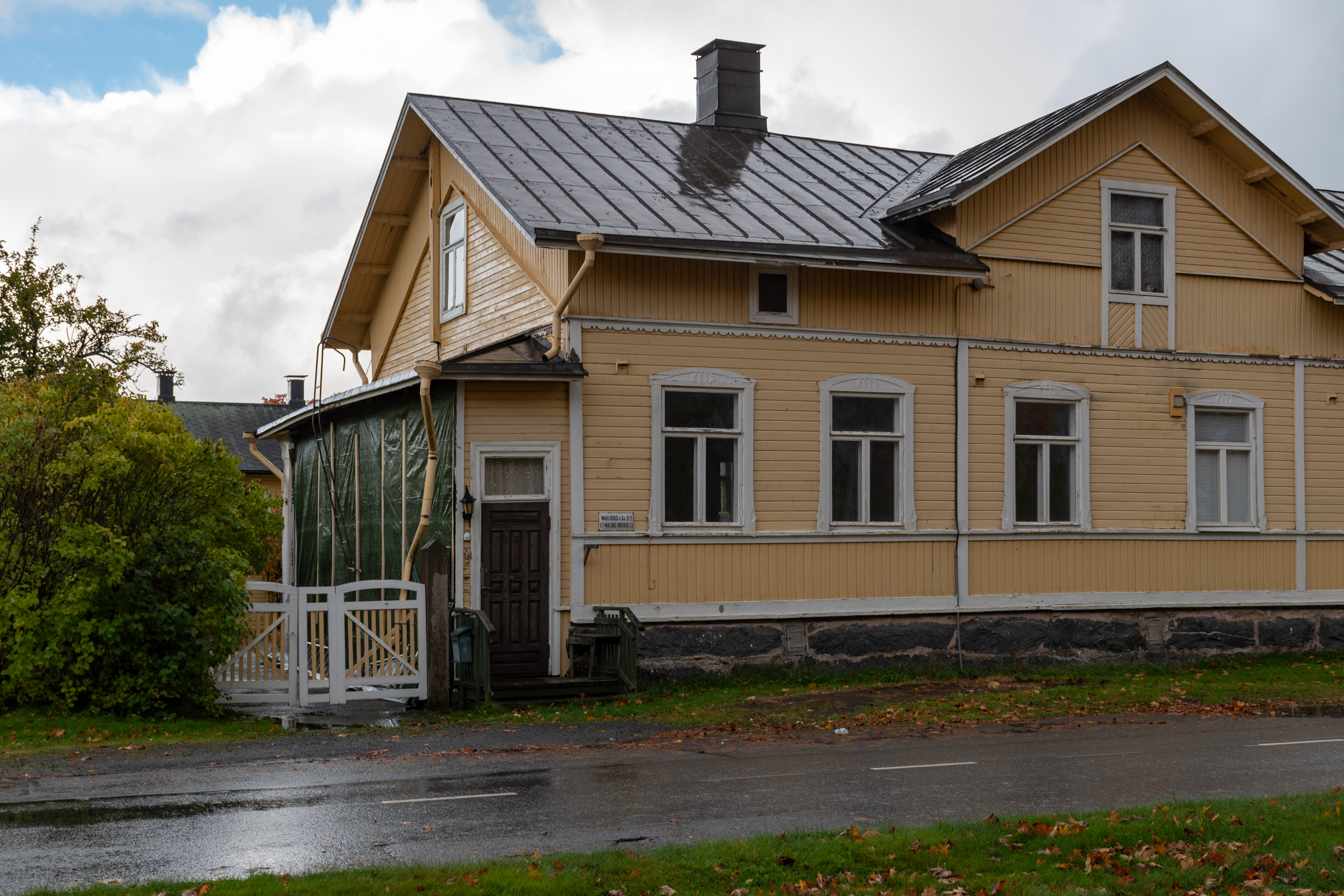 13. А на этом доме видна табличка Wahlroos & Co. O/Y. — O/Y Wahlroos Brothers Ltd. Здесь жил купец Рафаэль Валроос (Rafael Wahlroos, 1873-1923), которому с братом Уно принадлежал магазин, как раз в здании нынешнего дома священника, буксир, а в 1919-1923 и упоминавшаяся в начале верфь. Эти Валроосы вроде бы не родня Бьёрну "Налле" Валроосу (Björn Wahlroos, р. 1952), бизнесмену, одному из самых богатых людей Финляндии в наши дни, и одному из немногих из них, кто при этом остается относительно публичной персоной.