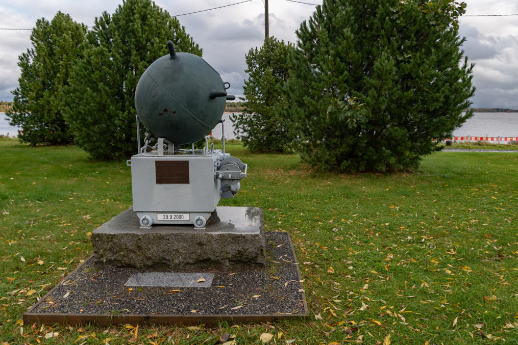 4. Другой памятник в парке на набережной — морская мина на тележке — памятник ветеранам разминирования Балтийского моря. После войны в 1944-1958 Финляндия по условиям мирного договора должна была разминировать Финский залив, от мин Финляндии, Германии и СССР всех сразу. Этой работой занималось более 2000 человек на около 200 судов; 28 человек погибло. В качестве памятника установлена финская мина модели S/43, образца 1943 года, стало быть — они продолжали стоять на вооружении вплоть до 21 века.