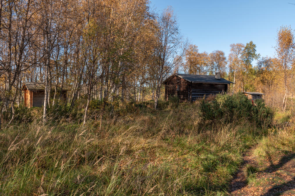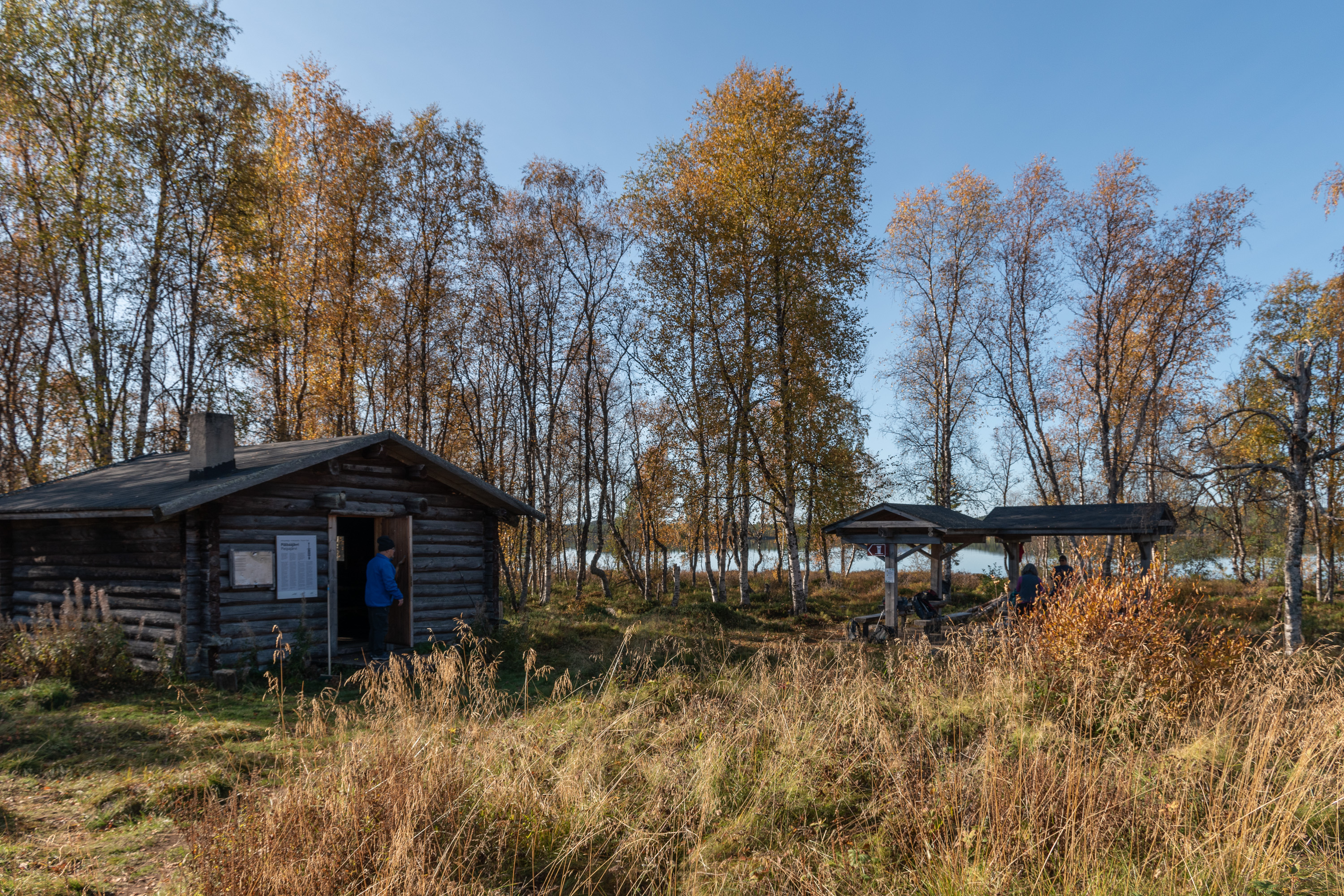 Перед церковью нас встречает хижина для привалов, место для костра, довольно большой луг, где угадываются фундаменты старых построек, и домик с надписью "только для персонала". Луг огорожен изгородью; с недавних пор церковь Пиелпаярви — одно из довольно многих мест, куда летом привозят пастись овечек, а добровольцев приглашают в этом домике пожить и последить за овечками (за это надо еще и доплатить довольно приличную сумму). Ну, в сентябре, конечно, овечек уже не было.