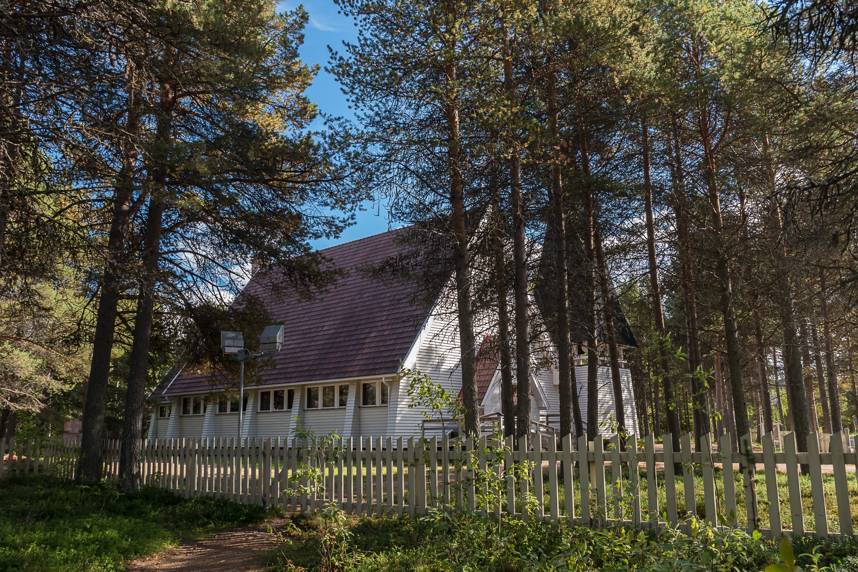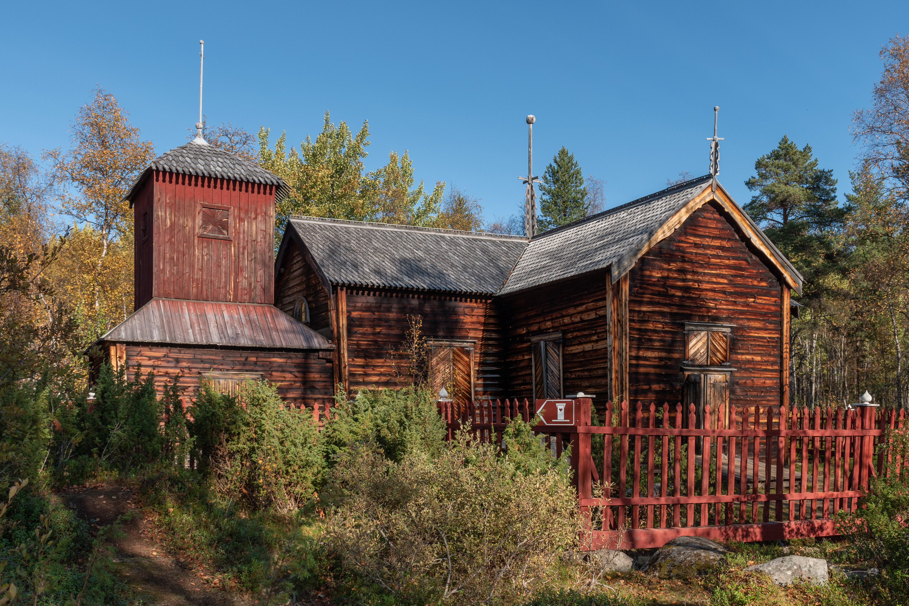 Церковь интересна тем, что это самое старое здание всей Верхней Лапландии (1760), но при этом стоит посреди леса, дороги до нее нет. Впрочем, это не так уж удивительно — на этом месте располагалось зимнее стойбище инари-саамов. Инари-саамы (inarinsaamelaiset) — один из коренных народов Лапландии, и, как и многие другие саамы, они вели кочевой образ жизни; летние стойбища у них располагались на берегах великого озера Инариярви (Inarijärvi) — 3-го по размерам озера всей Финляндии, и с большим отрывом крупнейшего в Финской Лапландии — а зимние глубже в лесах, где пасли оленей, впрочем, обычно всего в нескольких километрах от озера.