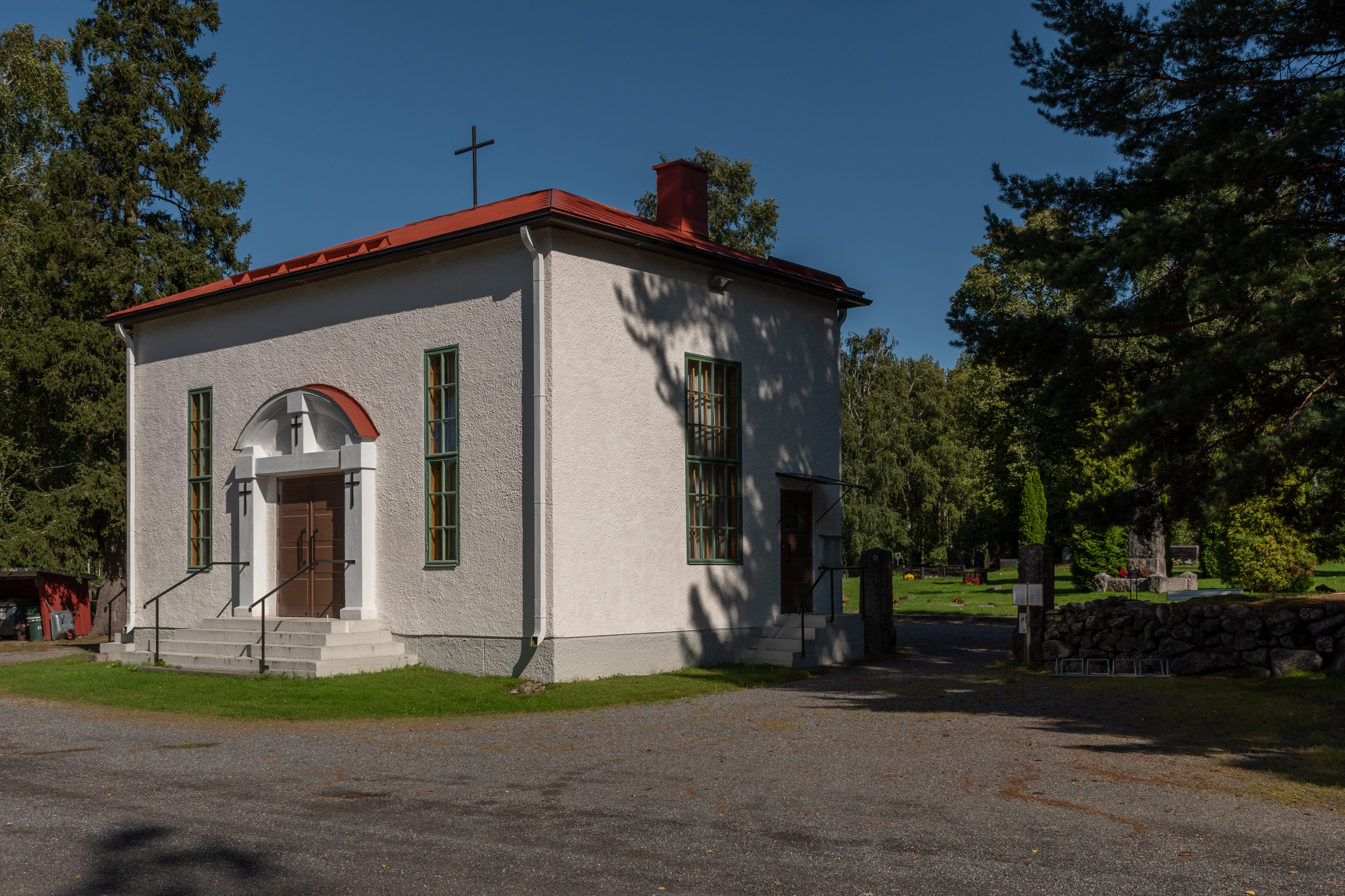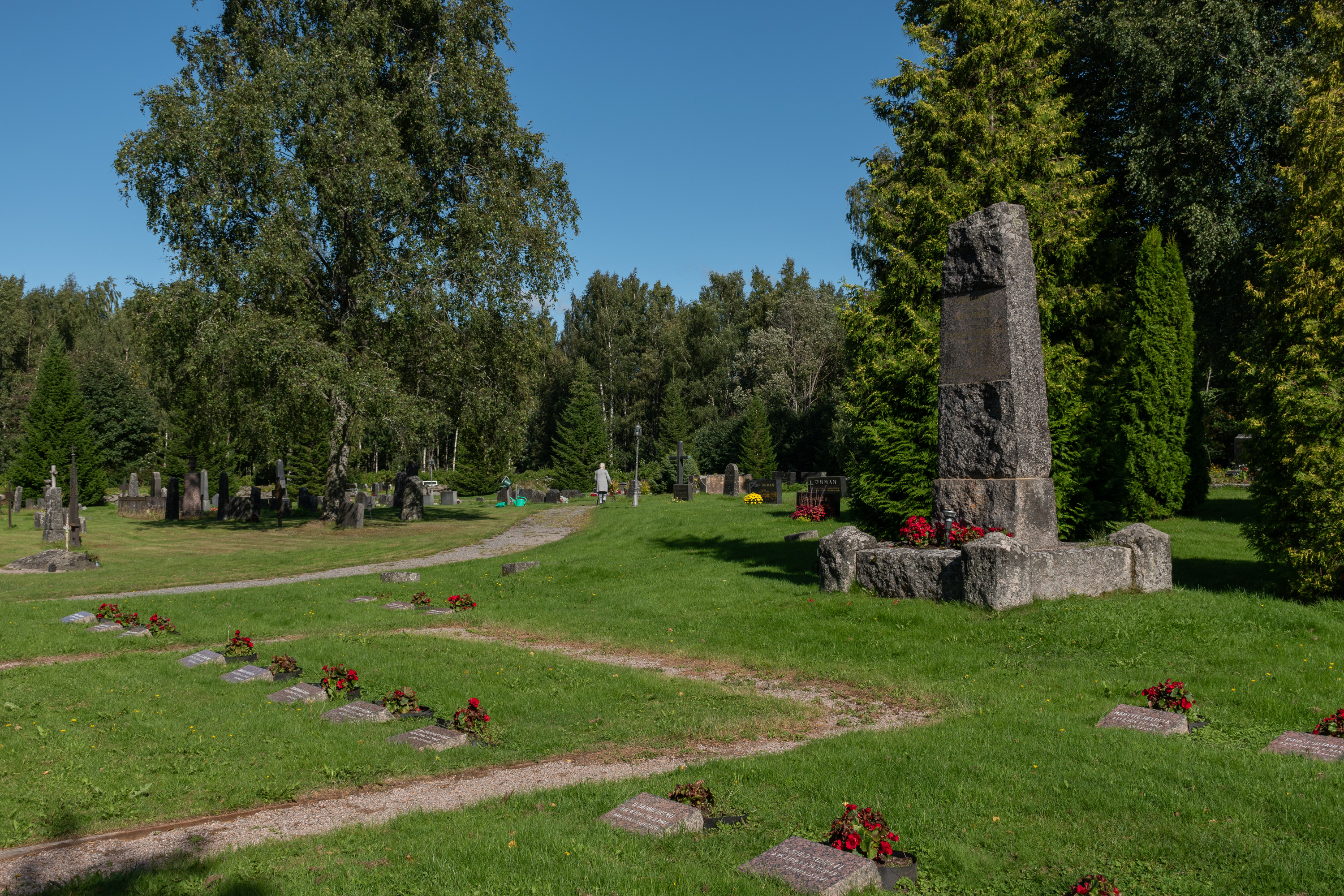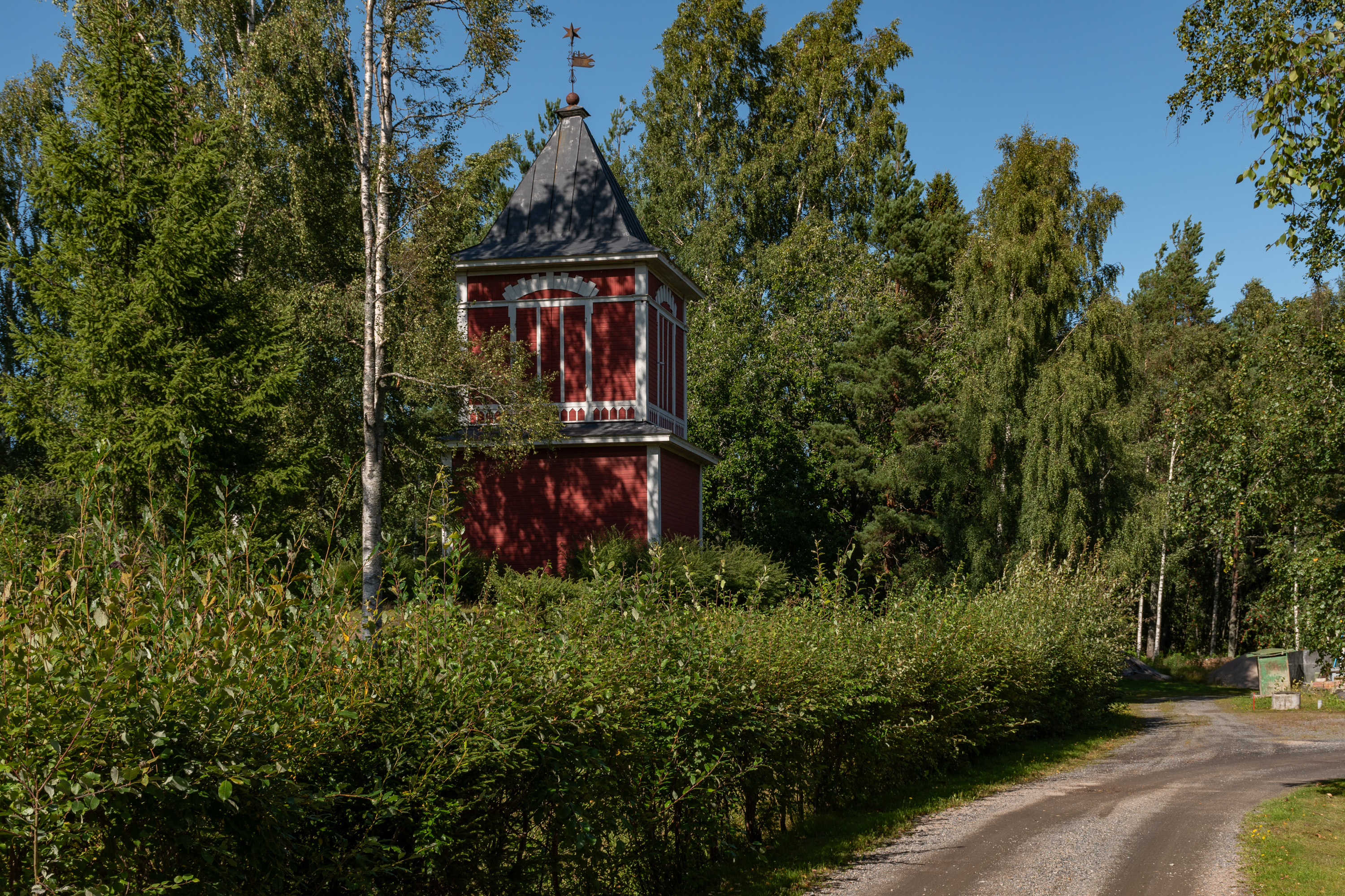 38. Дальше в сторону завода Metsä Fibre будет городское кладбище, украшенное маленькой старой колокольней. Колокольня была (перенесена сюда от дома Блада), а церкви не было — бывает и так — а я сначала было подумал, что просто старая церковь сгорела, как обычно.