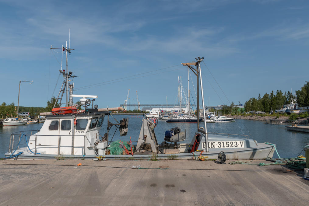 43. За грузовым портом начинается рыбный, на территорию которого, в отличие от грузового, можно заехать, даже рыбу вроде купить можно. Хотя, конечно, тут не так живописно, как в старой рыбной гавани с сараями. Каскинен, как и находящийся в 85 км южнее Репосаари, относится к главным рыбным портам Финляндии; южный Ботнический залив (Ботническое море, Selkämeri) — важнейший район вылова сельди, важнейшей промысловой рыбы Финляндии. Ежегодные цифры улова найти сходу не получается, но, к примеру, в 2007 здесь отгрузили 25 тыс. т сельди. В октябре в Каскинене проводится традиционная сельдяная ярмарка (silakkamarkkinat) — я не бывал пока что. К счастью, ЕС все-таки не стал пока что запрещать лов сельди на Балтике, как грозился в последние годы, хоть и ужесточил квоты.