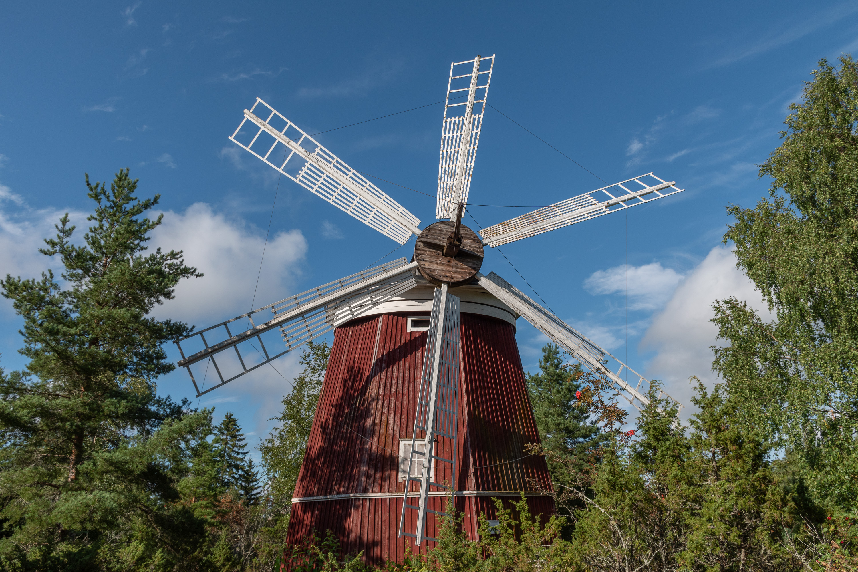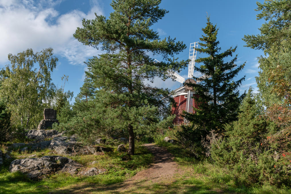 31. На скалистом пригорке, на мысе Кварнскатан — Мельничном — стояла, собственно, еще первая мельница Блада-младшего, а эта нынешняя мельница была перемещена сюда на память из села Эвермарк (Övermark) в 1954. Рядом стоит памятник "Моисеевой ночи" — шторму в ночь на 5.9.1854, когда из моря не вернулось сразу 11 рыбаков — самый большой несчастный случай в истории города.