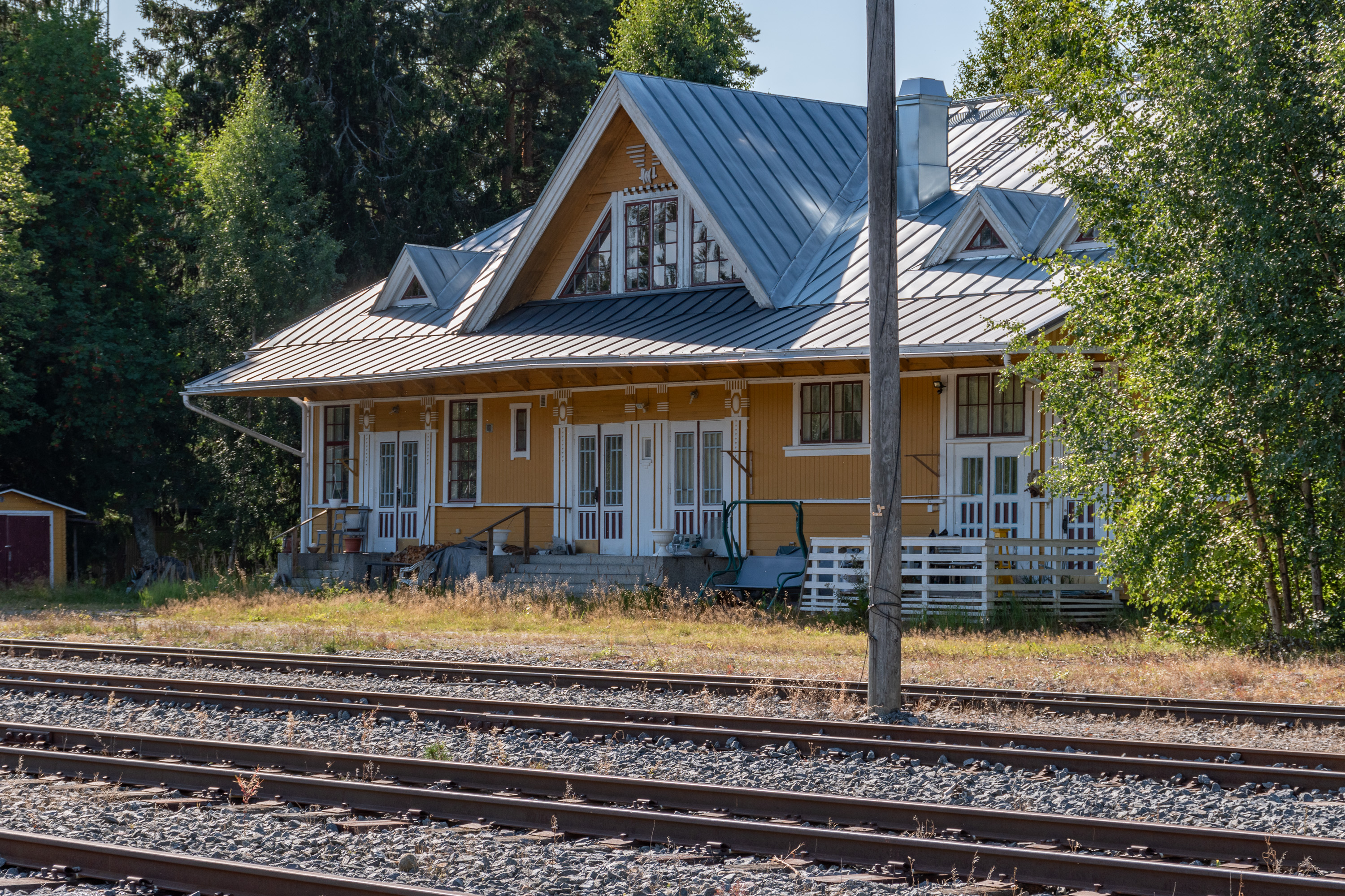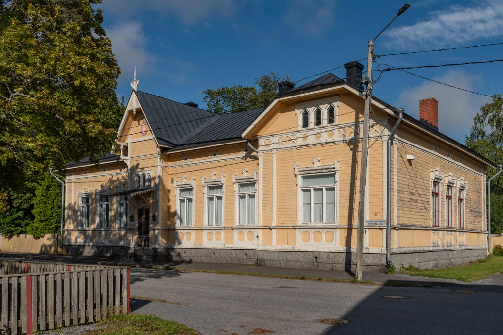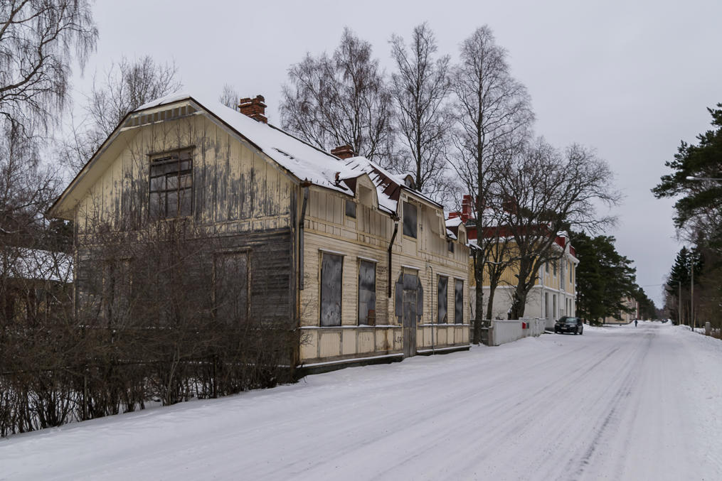 23. Железная дорога отделяет от основной части Каскинена один-два дальних ряда кварталов. Бывший вокзал построен одновременно с железной дорогой, в 1912, Туре Хеллстрёмом (Thure Hellström, 1880-1946), архитектором, построившим большинство железнодорожных станций Финляндии первой половины 20 века. Сейчас используется под жилой дом и более-менее толком виден только со стороны путей.