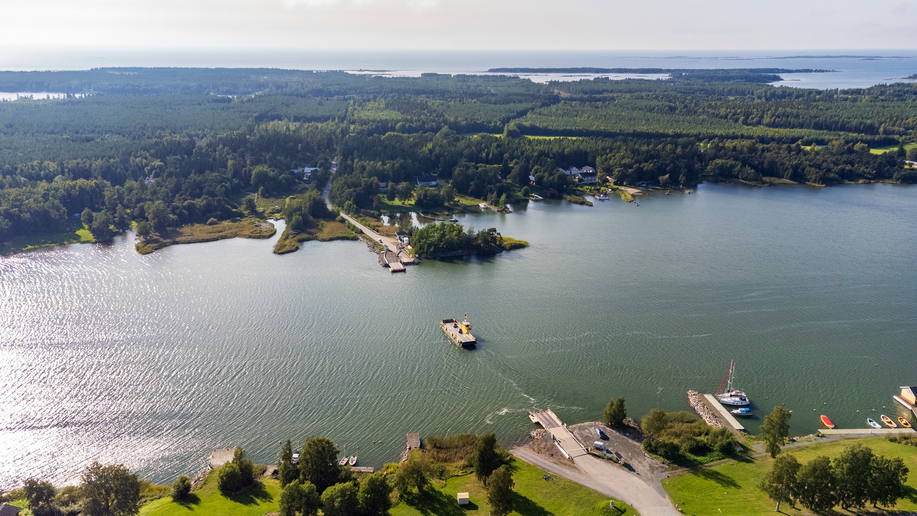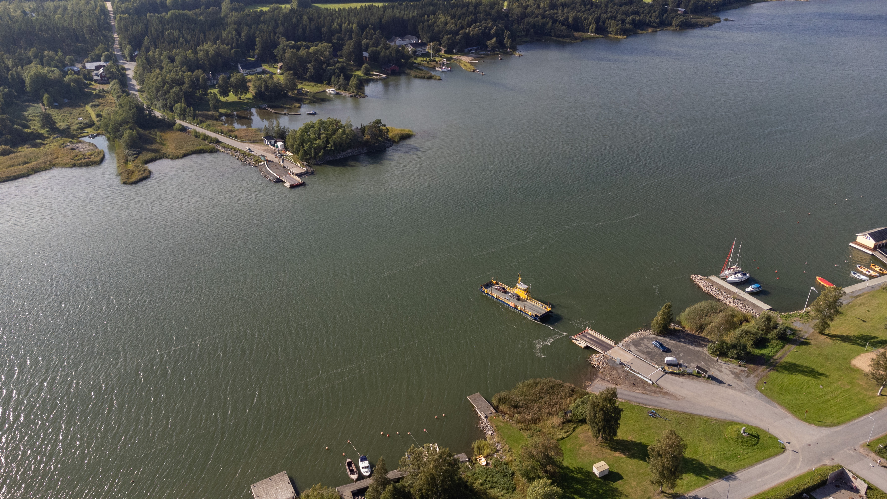 17. Еще здесь в глаза бросается паром — совсем короткая, 180 м, паромная переправа из самого центра Каскинена на соседний остров Эскё (Eskö) или Эскильсё (Eskilsö). Наряду с паромом на Бергё это единственные паромы области Остроботния, несмотря на то, что тут местами есть достаточно обширные архипелаги. Тут бы, конечно, можно было бы и мост построить вполне, да, видимо, смысла нет.