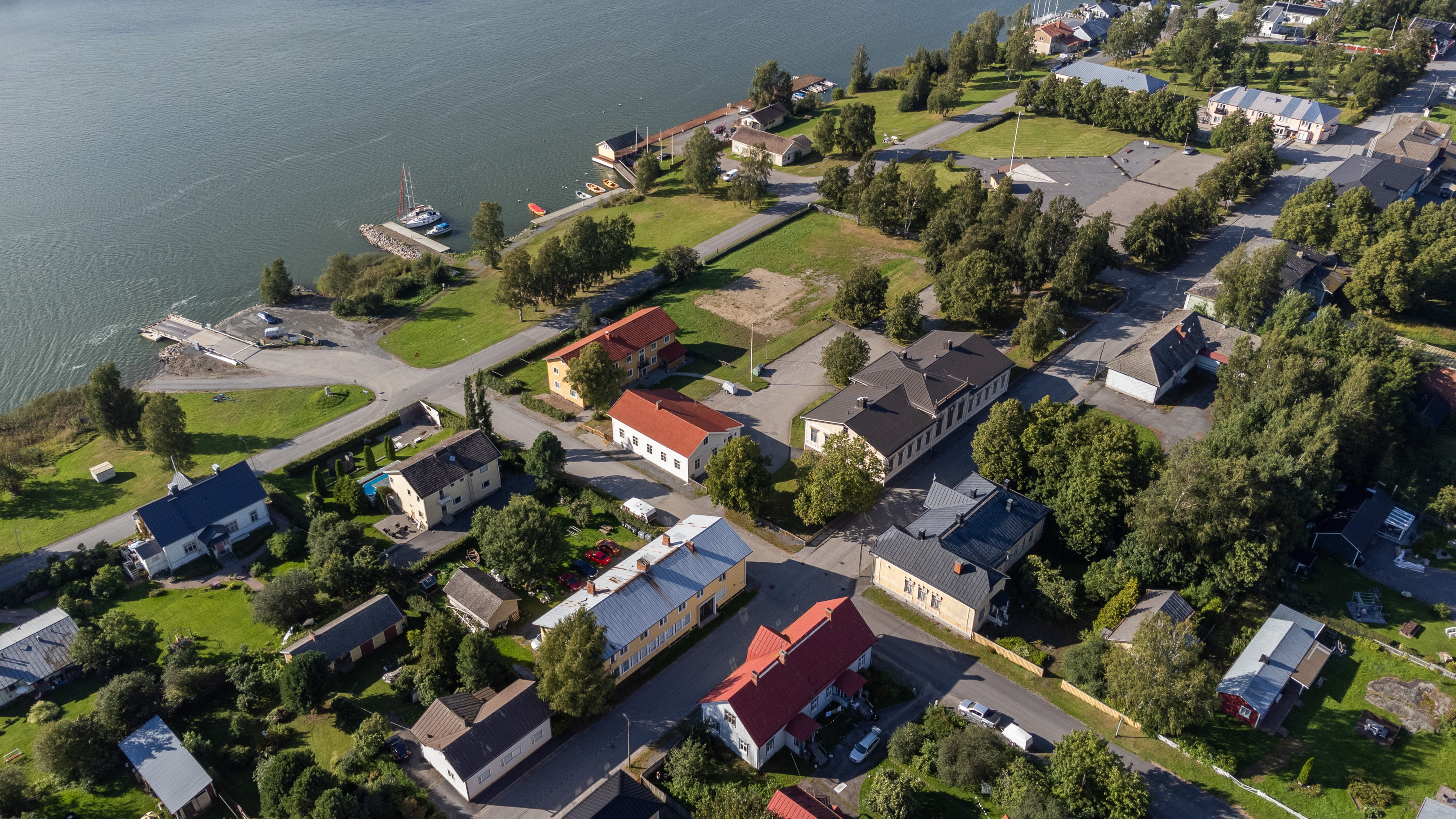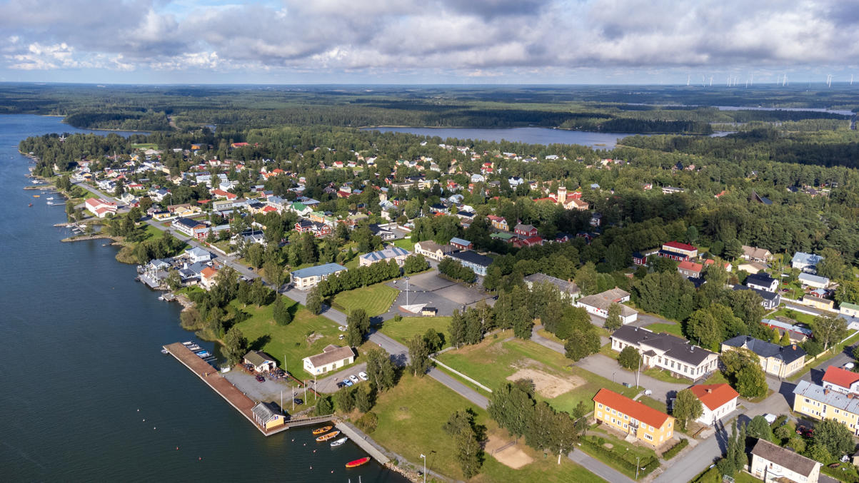 8. Вид на центр с воздуха. Каскинен построен в типичной для своей эпохи "квадратно-гнездовой" планировке — все кварталы аккуратные, прямоугольные, одинаковые по размерам. Необычным является то, что город и по сей день не вырос за пределы этого изначального плана 18 века, даже некоторые участки так с 18 века незастроенными и стоят.