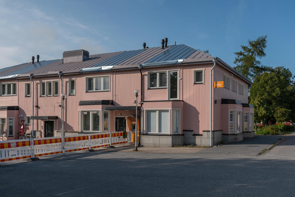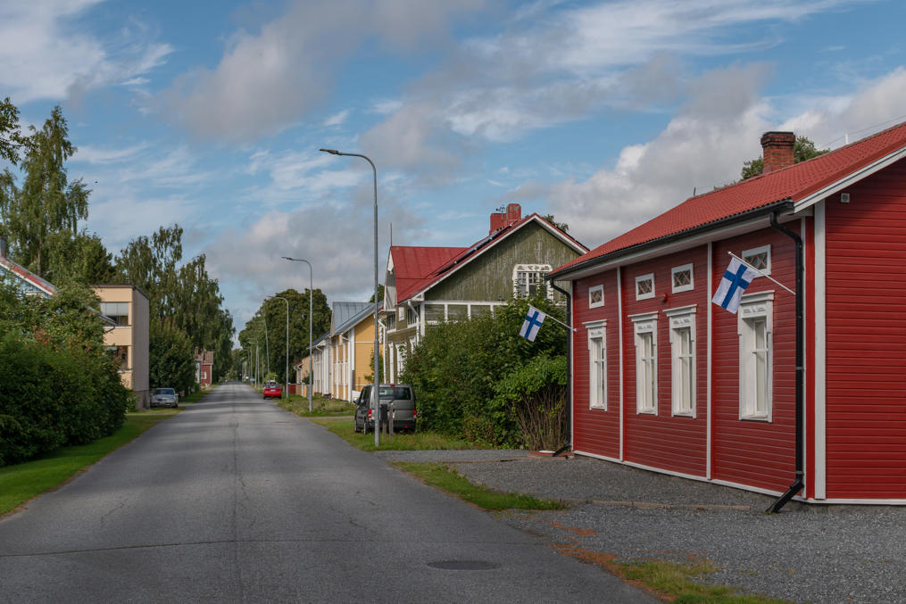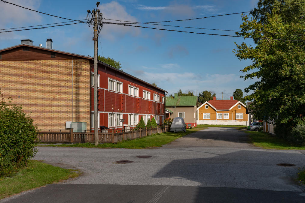 15. Впрочем, есть место и тут немолодой двухэтажке. С трассы 8 Вааса-Пори на съезде в сторону Каскинена стоит указатель с подписью "город деревянных домов" (puutalokaupunki), но на самом деле не все дома, конечно, деревянные, застройка довольно разношерстная, и есть местами и вкрапления маленьких многоэтажек второй половины 20 века.