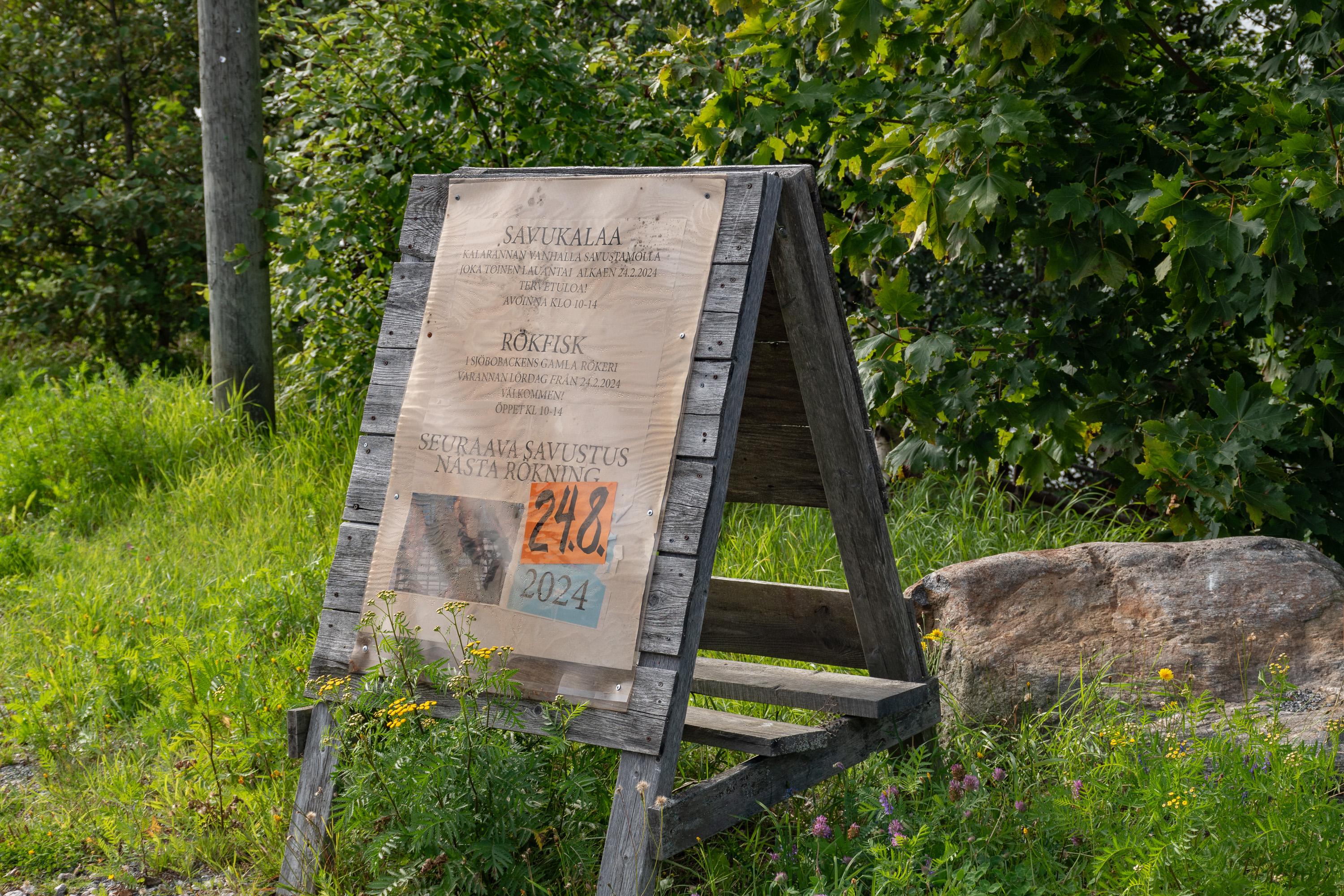 35. А самая большая постройка — коптильня — где, судя по объявлению, до сих пор каждую вторую субботу коптят и продают рыбу.