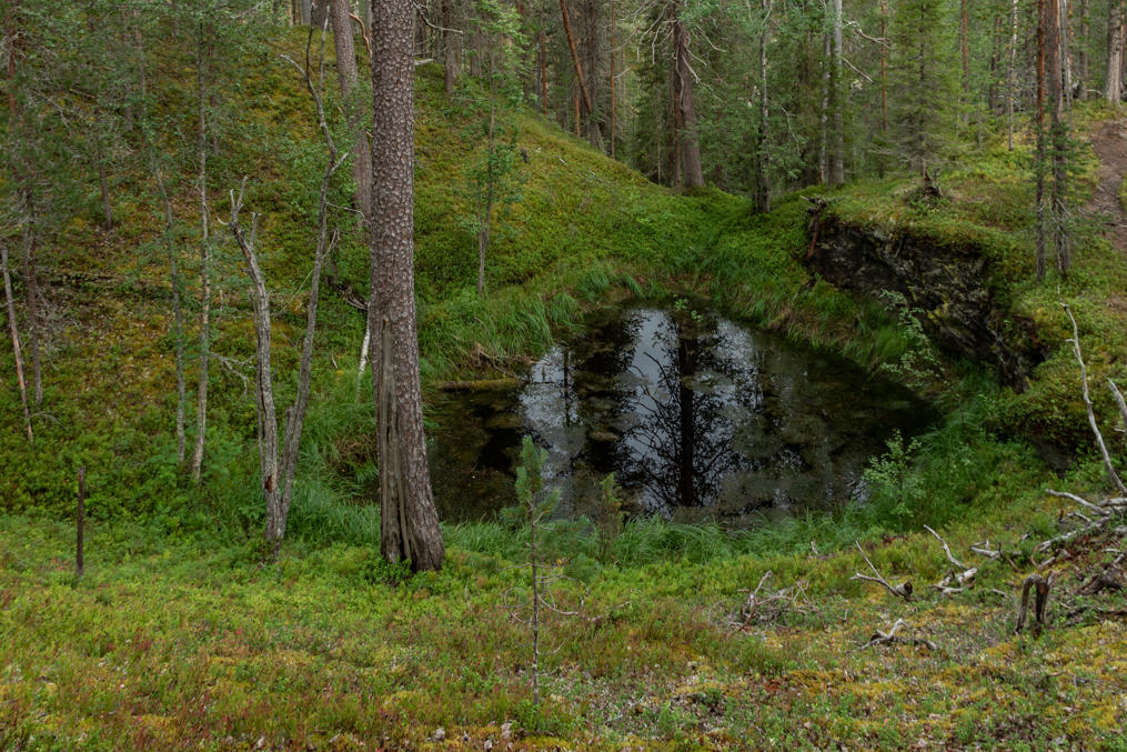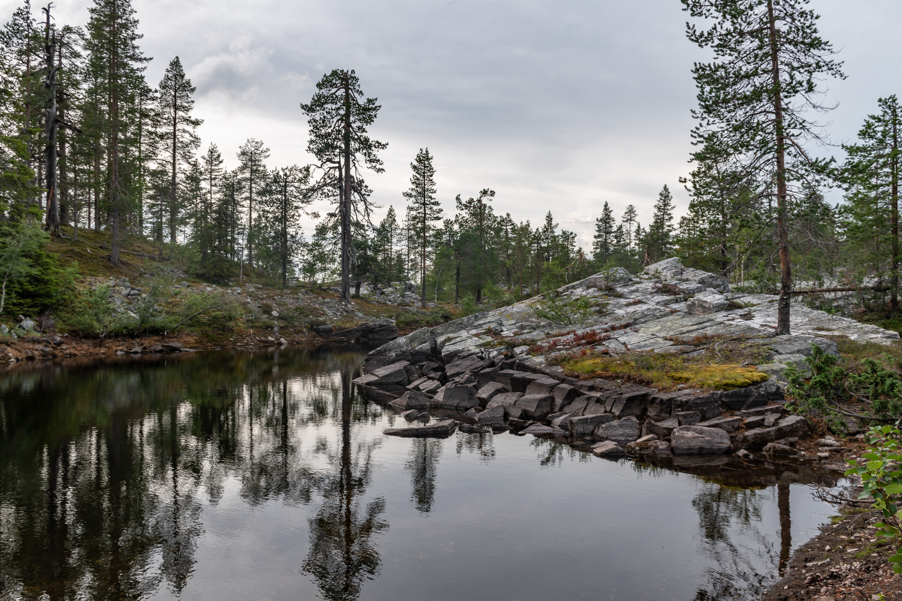 27. Центральная точка тропы — навес-лааву Айтипетяйянлампи (Äitipetäjänlampi) — стоящий у одноименного мрачного маленького озерца, название которого означает "пруд Матери-Сосны".