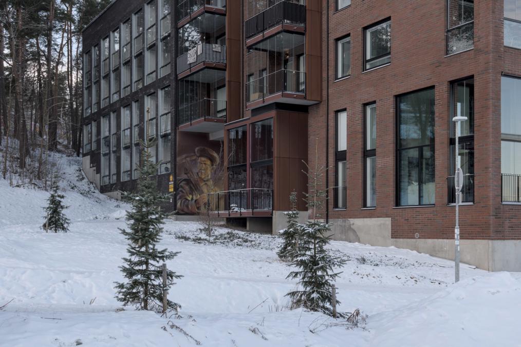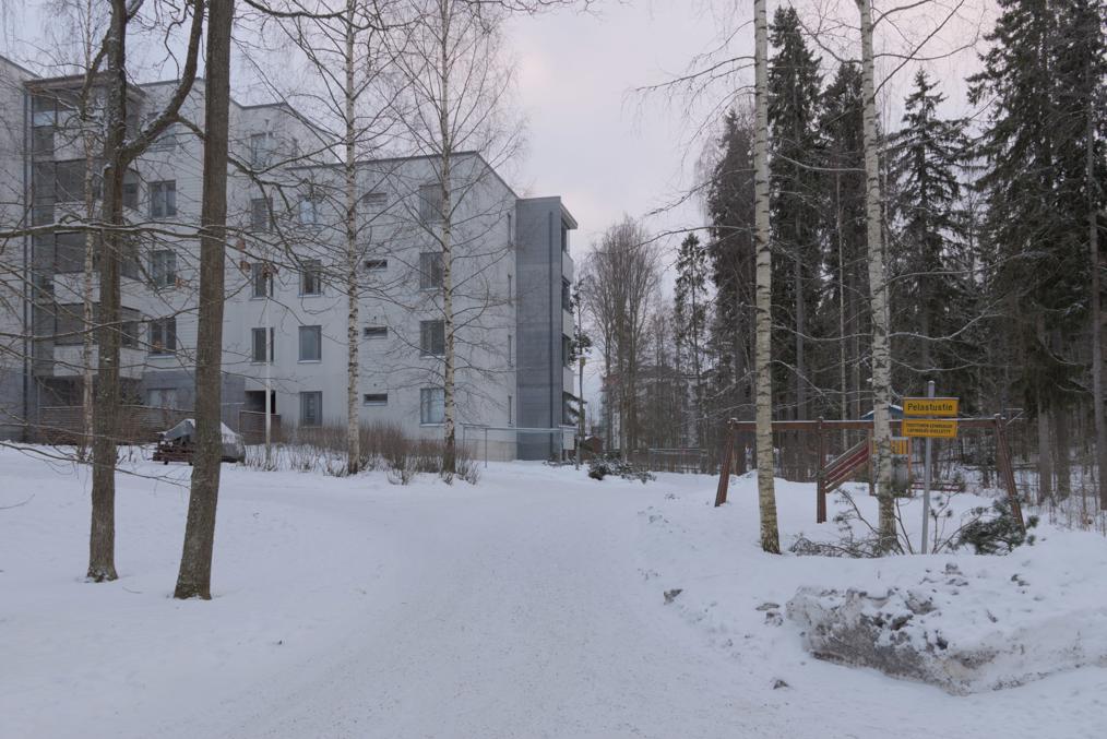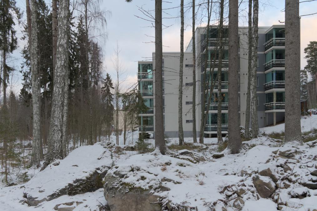 67. Район Лентявянниеми, пожалуй, самый приятный из всех вдоль новой линии — здесь сохранилось много лесопарков и кусочков леса, много мелких скал, а многоэтажки аккуратно вписаны в этот пейзаж, и между ними оставлено достаточно много места. Многоэтажки, правда, многие довольно старые, особенно в дальней части района.