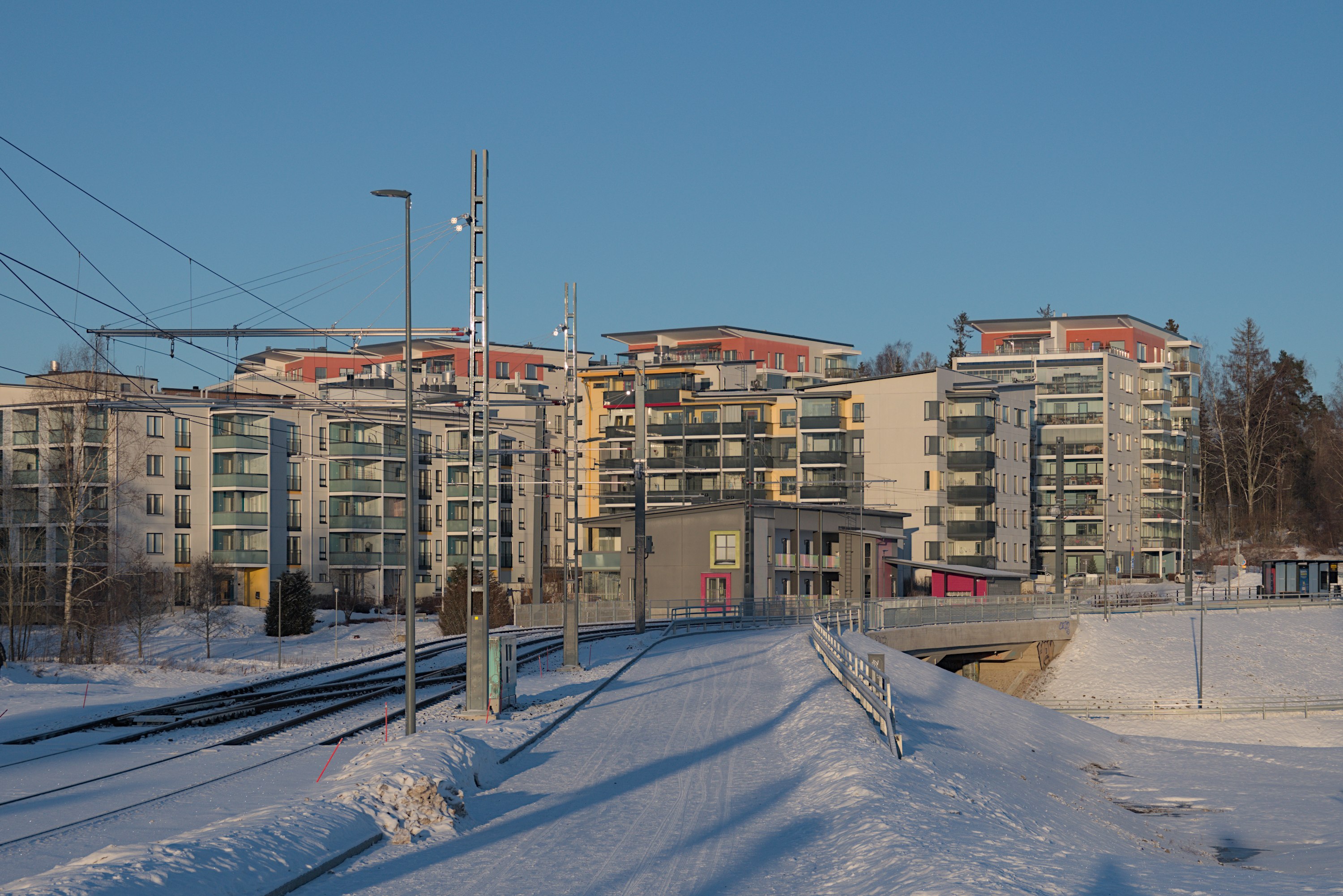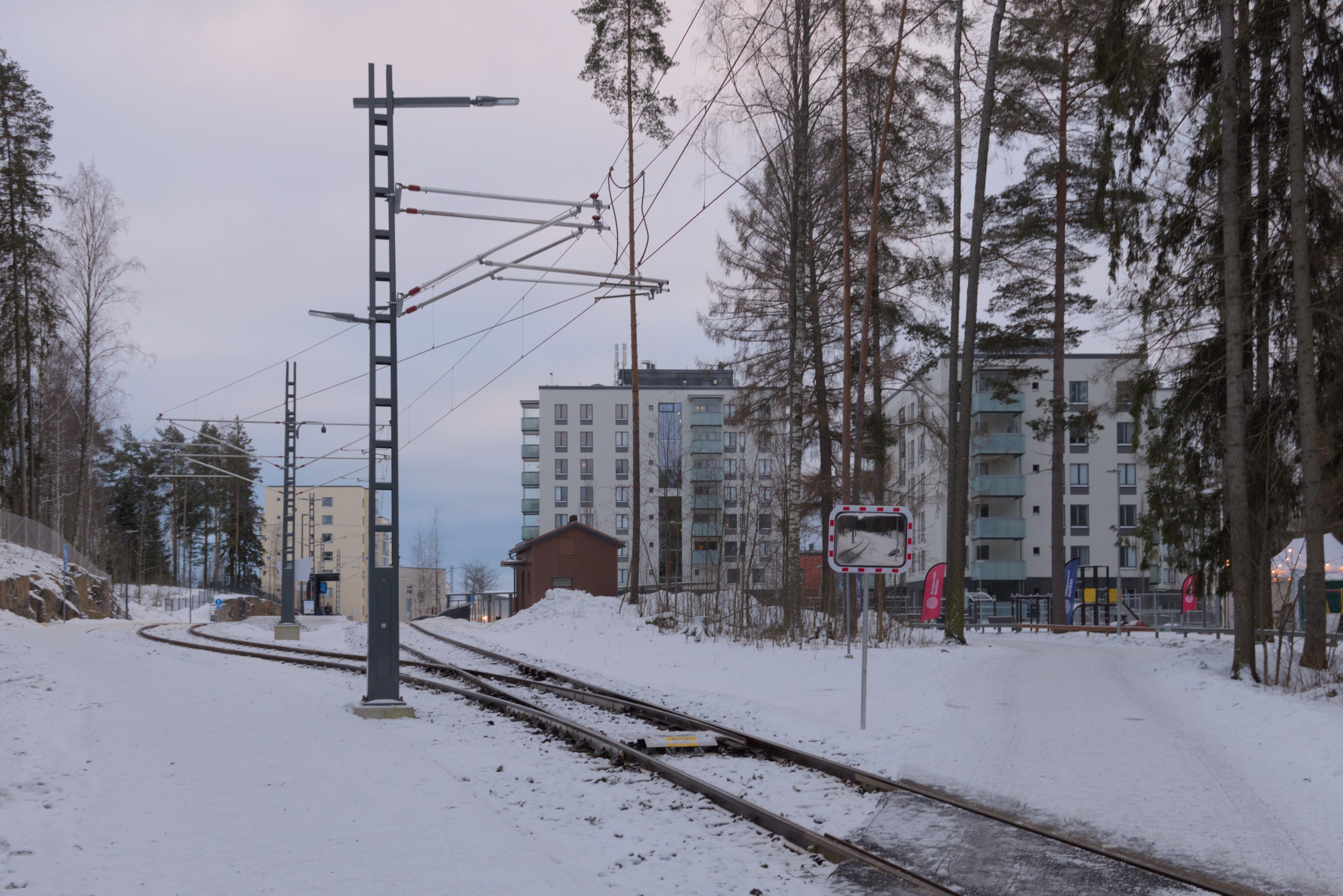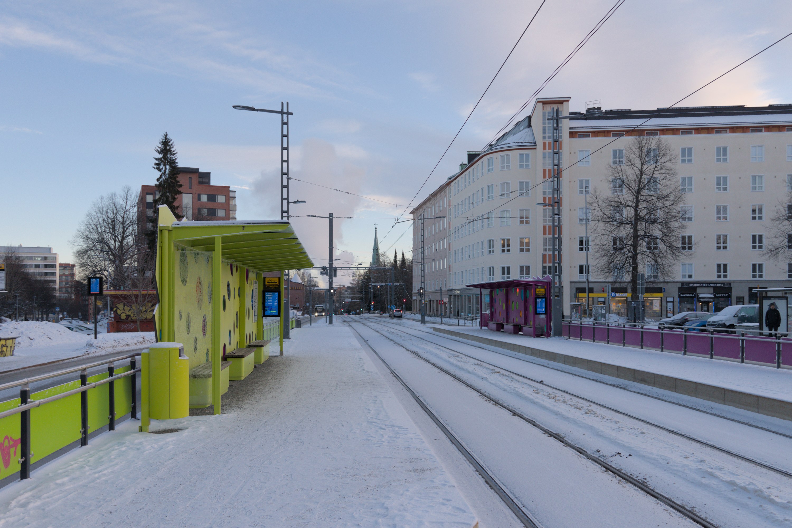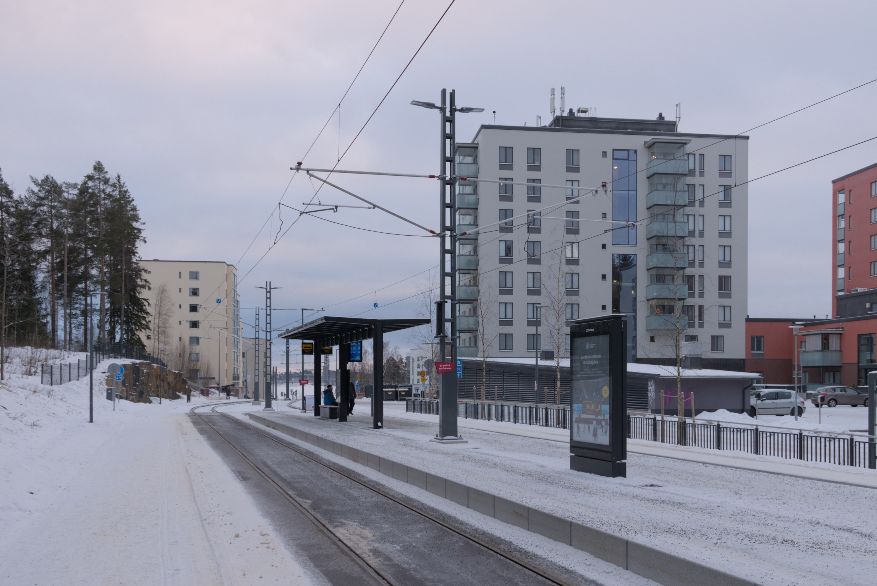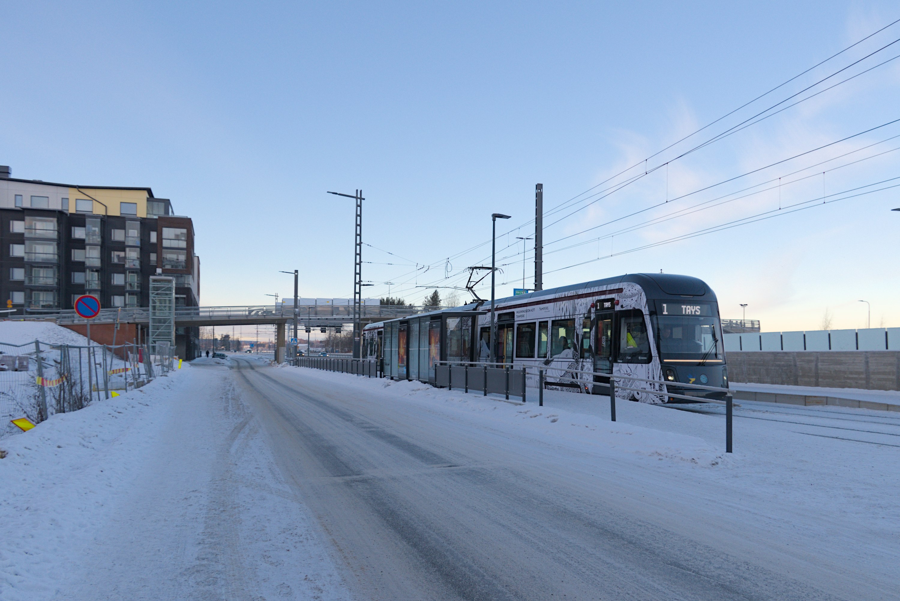 Так что на момент написания этого поста трамвай Тампере благополучно ходит до Лентявянниеми уже дней десять как. За несколько дней до открытия, 4.1.2025, на бывшем Лиелахтинском целлюлозном комбинате провели небольшой трамвайный праздник, и я добрался-таки до Тампере сам, сходил на этот праздник и прошелся вдоль новой линии, которую в этом посте и покажу.