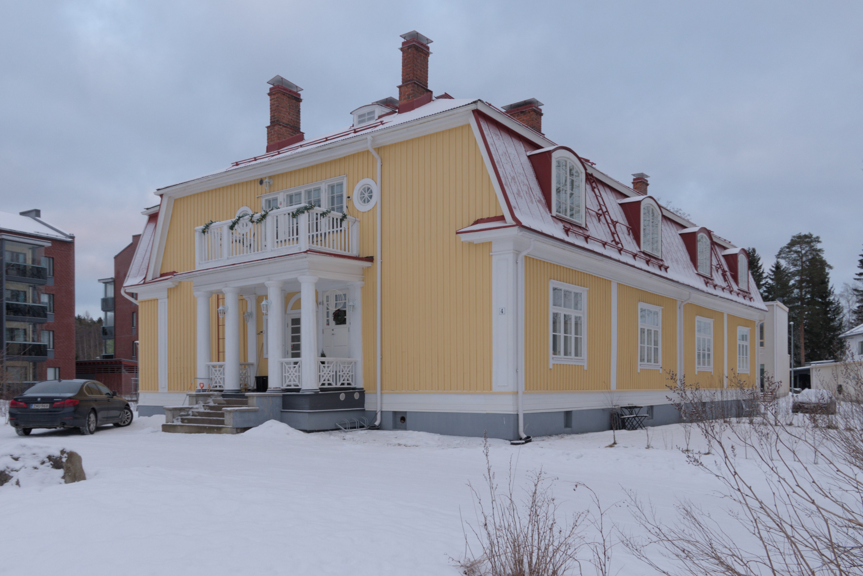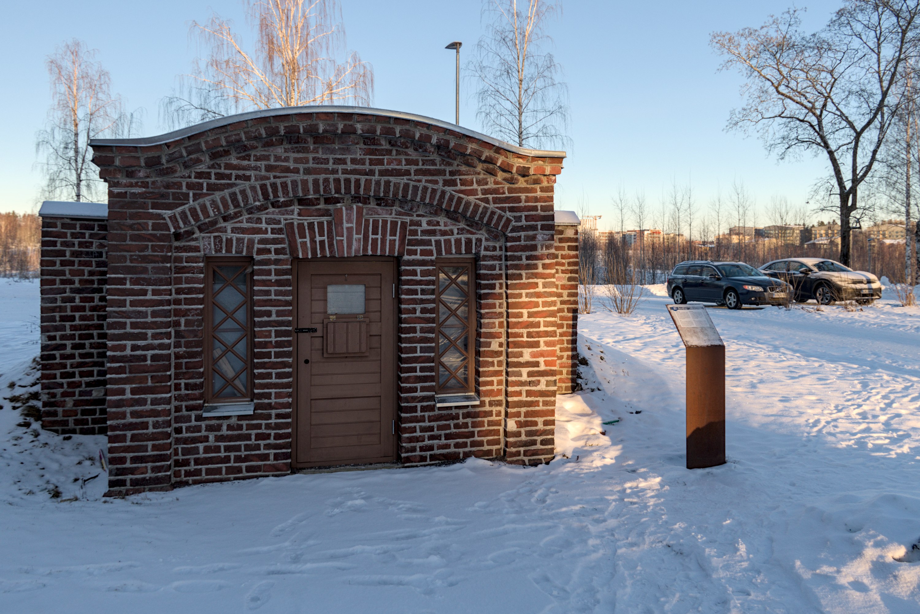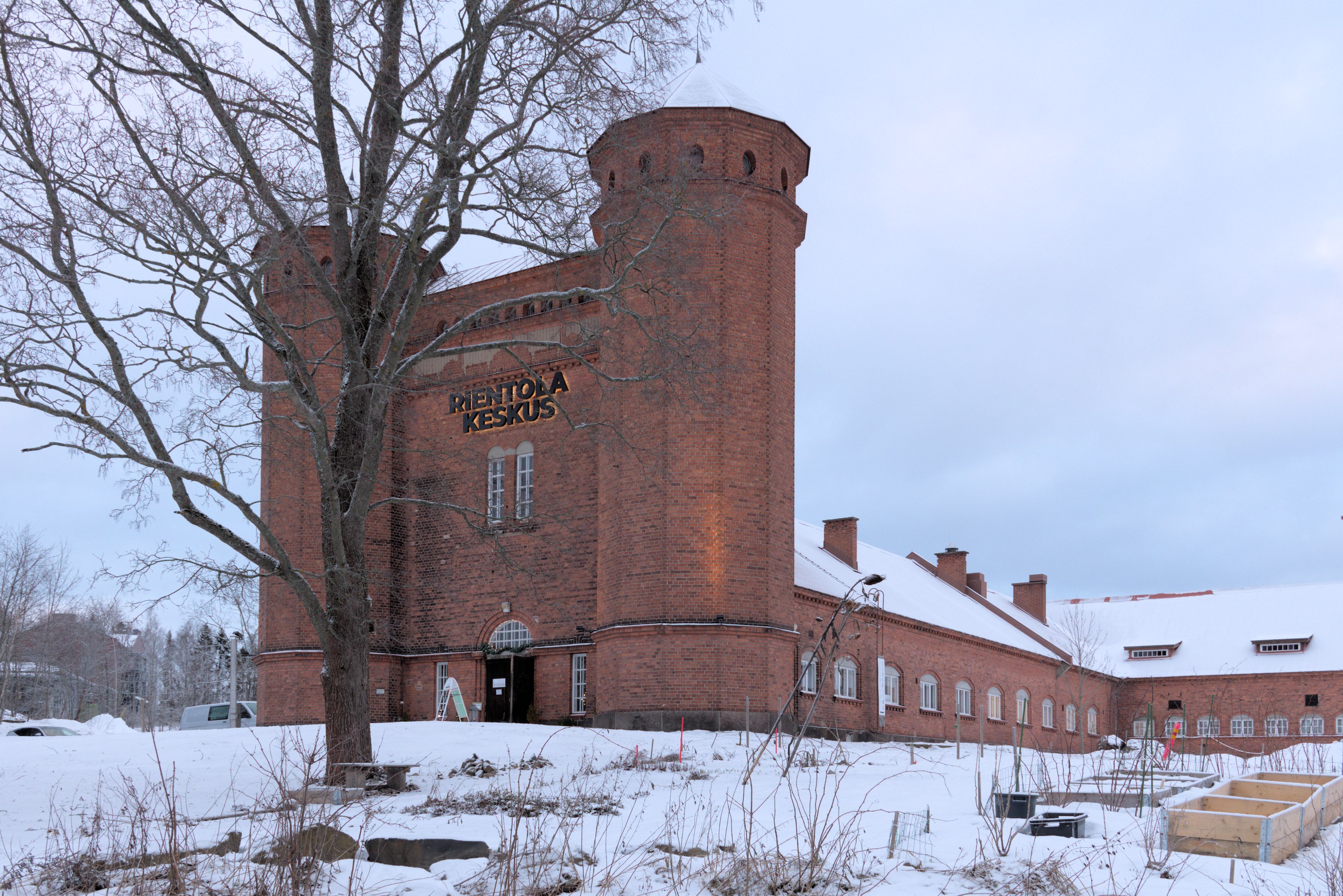52. Поместье существовало, довольно недалеко от Лиелахти, с 1840; последней его хозяйкой была некая Матильда Ниеми (Matilda Niemi, 1831-1907), которая, будучи бездетной вдовой, в 1887 продала его компании Ahlström, основавшей на землях поместья лесопилку. Сельским хозяйством, впрочем, тоже продолжали заниматься еще долго — коровник с башнями только в 1918 построили, чтобы рабочим было что кушать. Со временем поместье и лесопилка тоже стали частью целлюлозного комбината, в нем в частности размещался рабочий клуб, но ничего почти не трогали и не сносили. Лесопилка проработала до 1960-х, от нее никаких следов не осталось. Но как память промышленному прошлому этих мест и поставили эту шестерню как памятник — вот буквально в тот же день, как я снимал, 4.1.2025, и поставили.