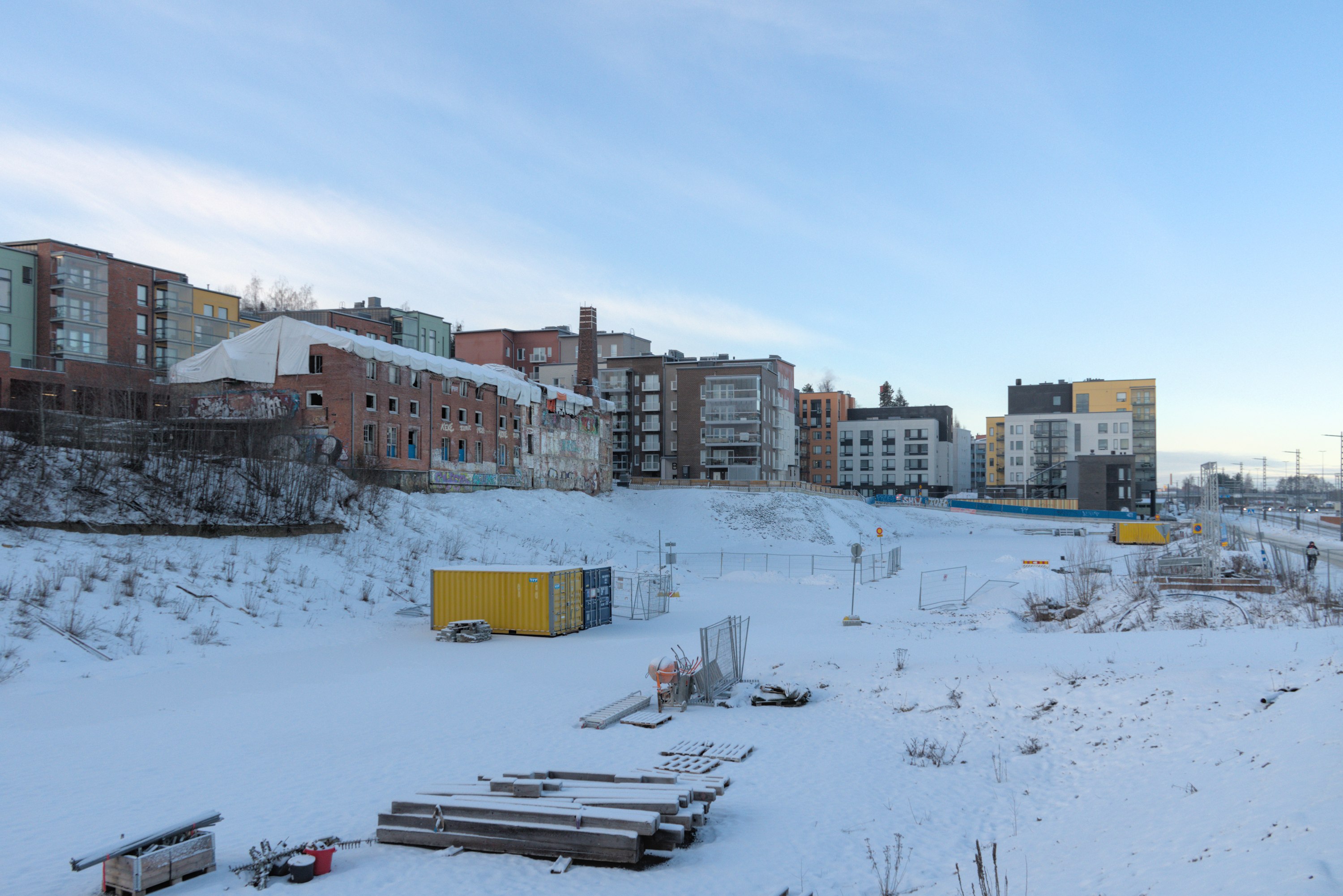 Перспективный район Хиеданранта тоже представляет собой сейчас один большой пустырь, разве что с бывшим Лиелахтинским комбинатом посередине, и сейчас с 2025 года его должны начать застраивать. Обещают, что будет все очень красиво и круто и по урбанизму, город будущего, все дела; для застройки Хиеданранты Тампере даже отдельную дочернюю компанию учредил. Поживем-увидим, что из этого выйдет.