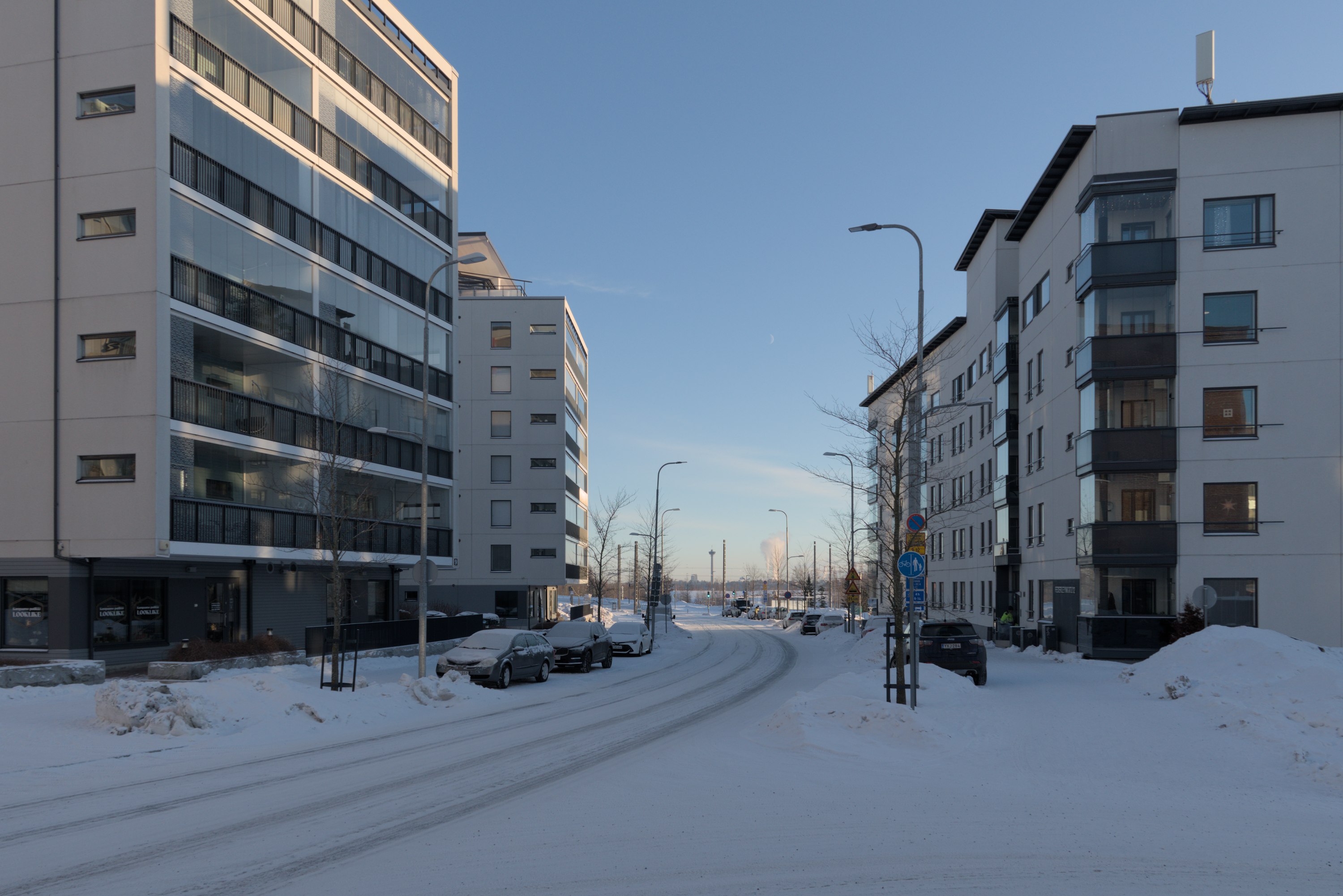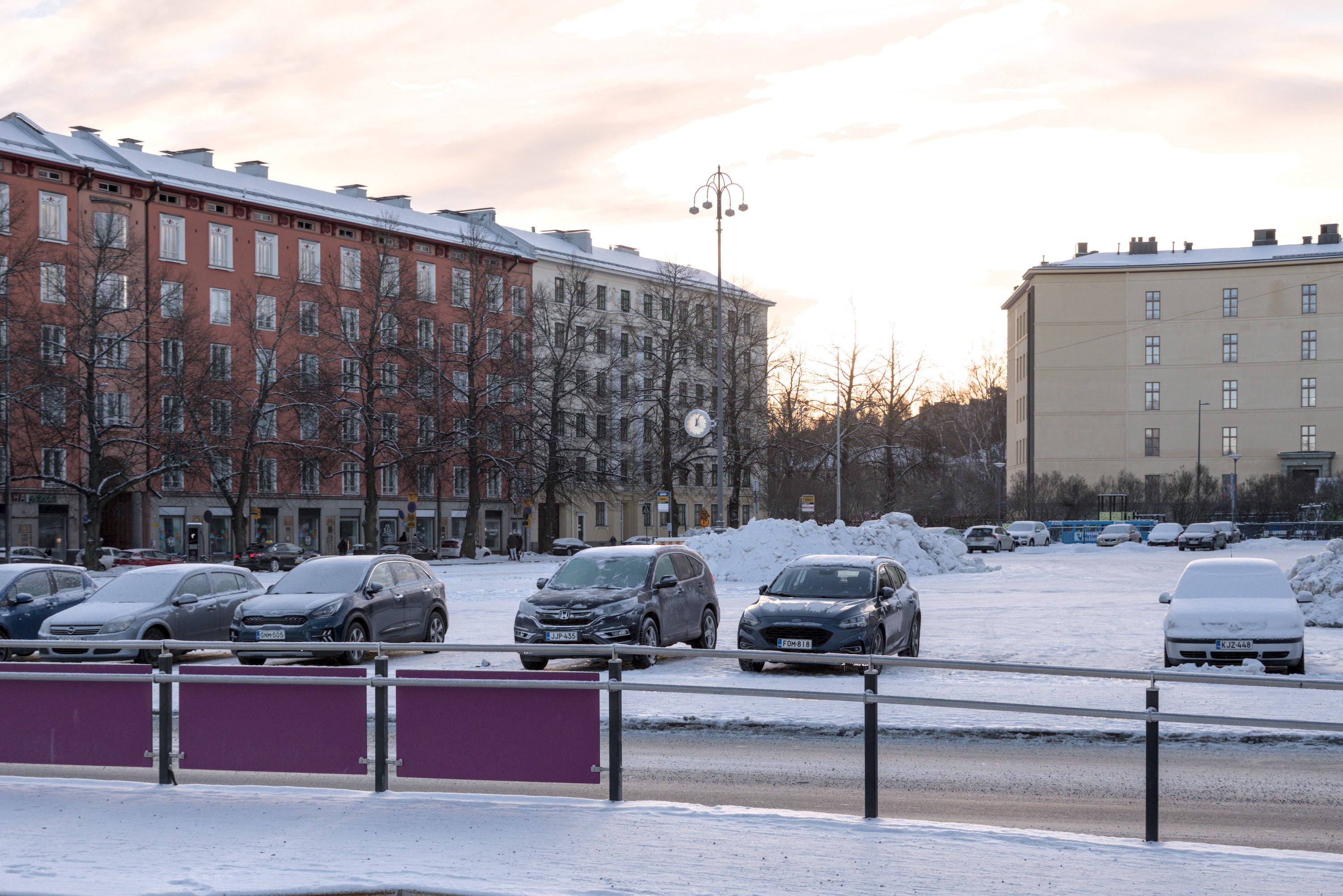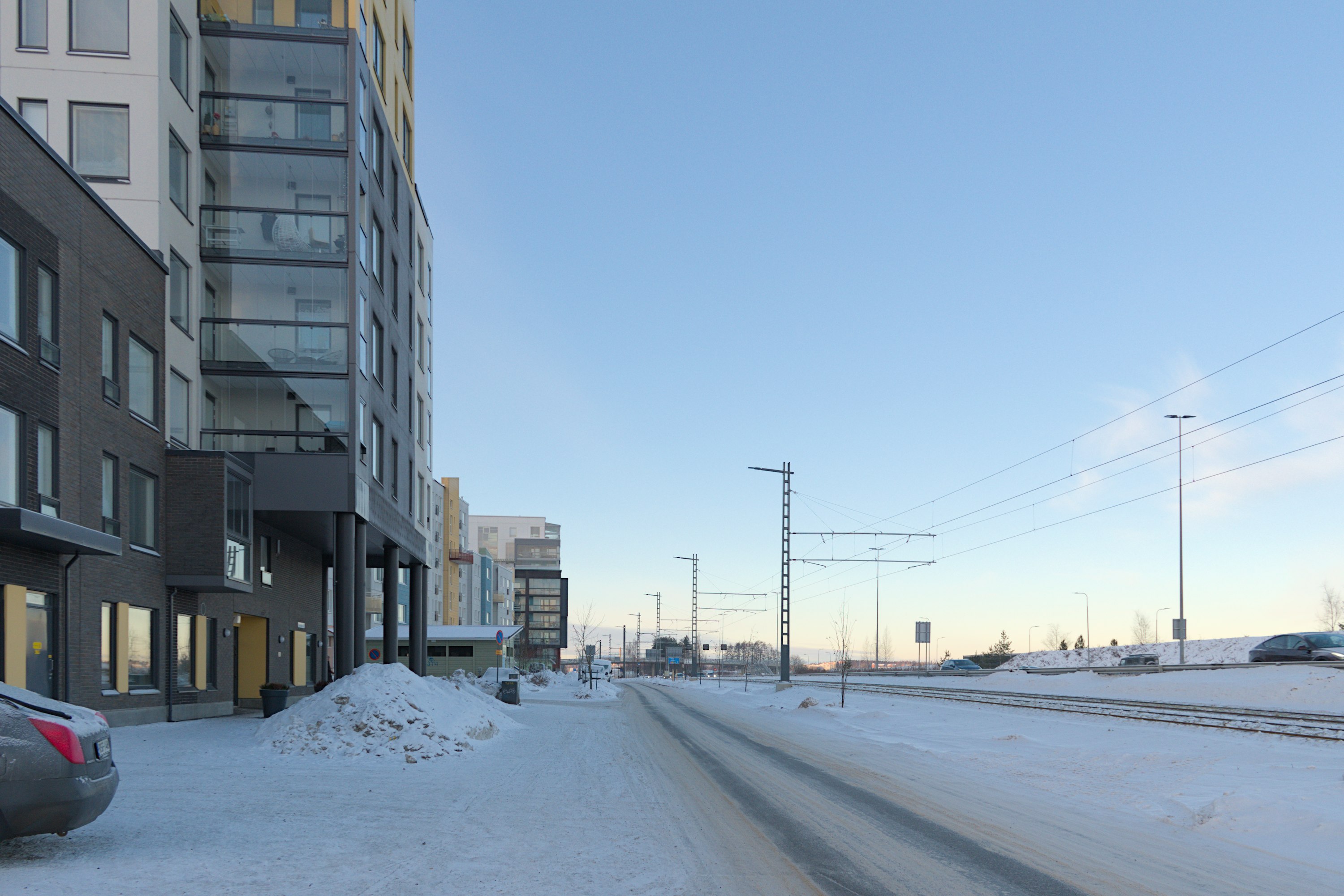 21. С парковкой в Санталахти тоже, скорее всего, не очень. Крытые и подземные парковки наверняка есть, но почти уверен, что задумывалось, что большая часть жителей будет ездить на трамвае.