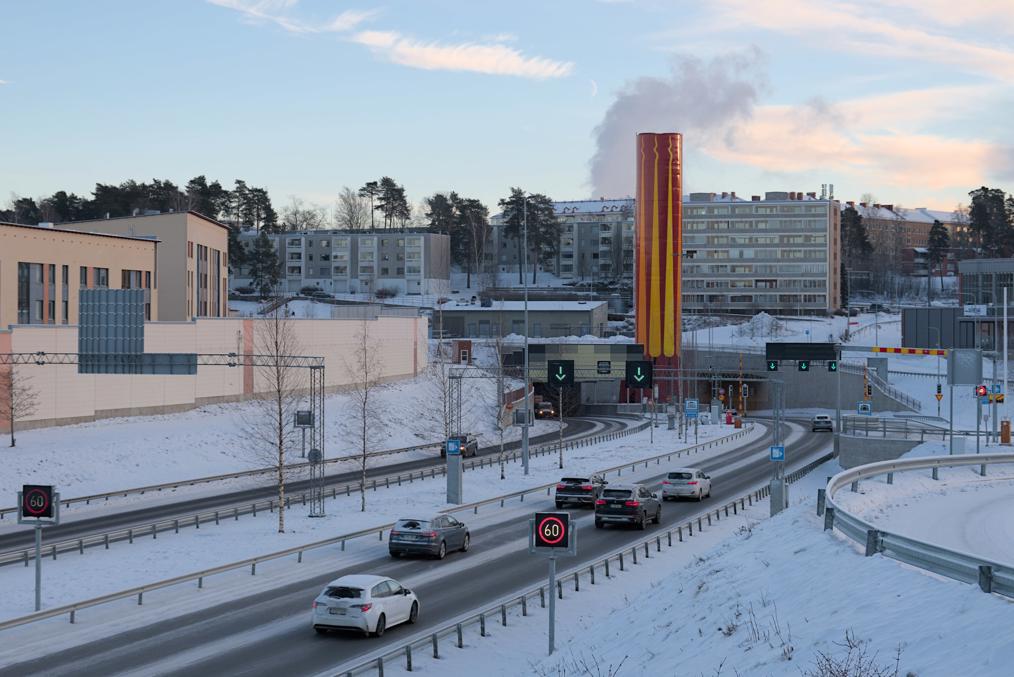 17. А в другую сторону виден предыдущий перед трамваем крупный транспортный проект Тампере — Береговой туннель (Rantatunneli), открытый в 2016 автодорожный туннель в 2+2 полосы на трассе 12 на объезде Тампере, длиной 2.3 км, что делает его до сих пор самым длинным автодорожным туннелем страны. В начале 2010-х спорили в Тампере, что строить, туннель или трамвай, вроде не хватает и на то и на другое — ну, в итоге, конечно, все равно построили и то и другое :) Обошелся туннель в 200 млн. евро. Туннель помог спрятать с глаз дорогу, проходившую через протоку Таммеркоски по мосту, и звавшуюся с запада от него дорогой Паасикиви (Paasikiventie), а с востока — дорогой Кекконена (Kekkosentie). Теперь этот участок дороги не мешает доступу к озеру, и в частности на восточном берегу Таммеркоски это позволило построить целый новый жилой район, Ранта-Тампелла. Но стоило ли оно того за целых 200 млн. — сложно сказать.