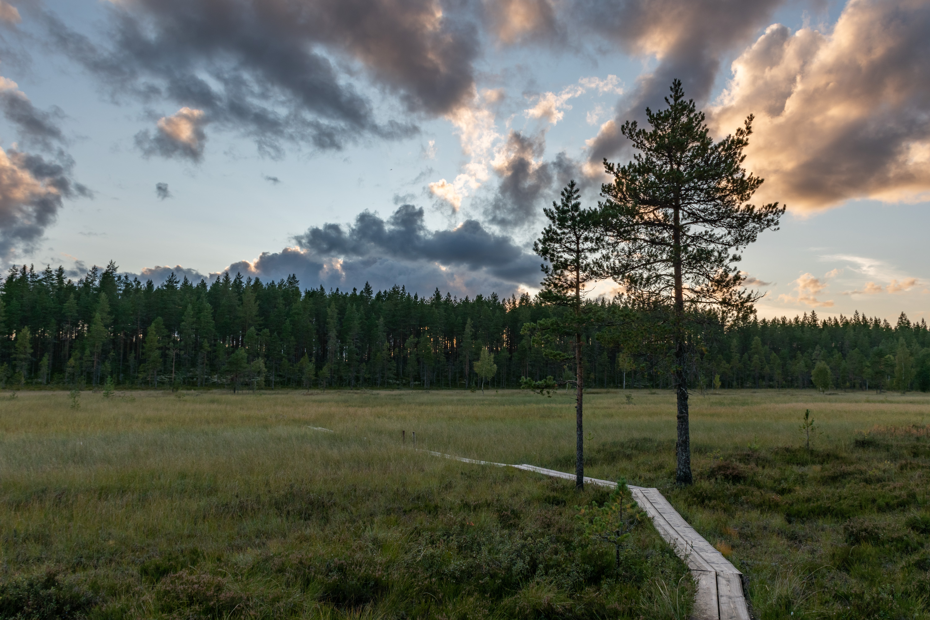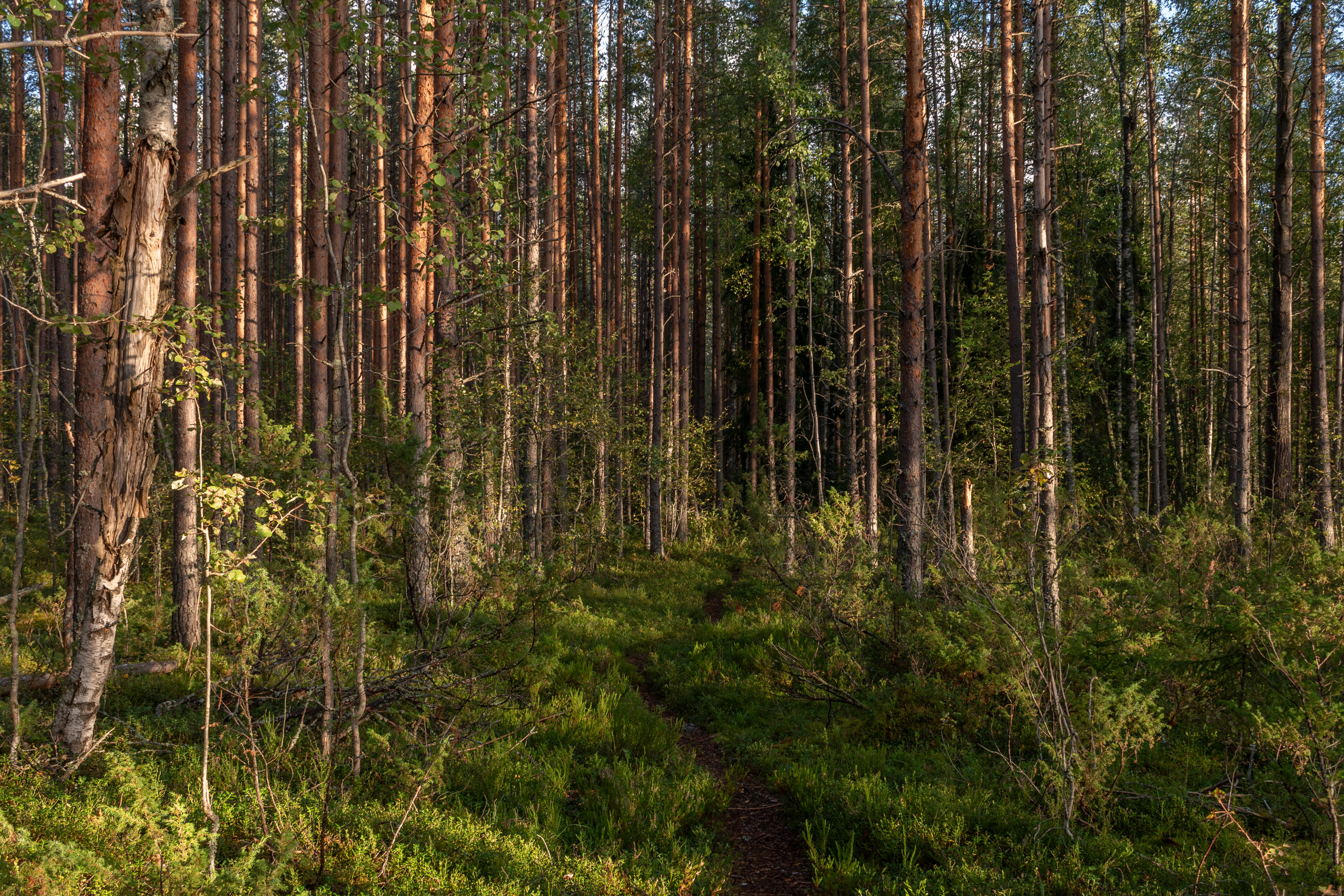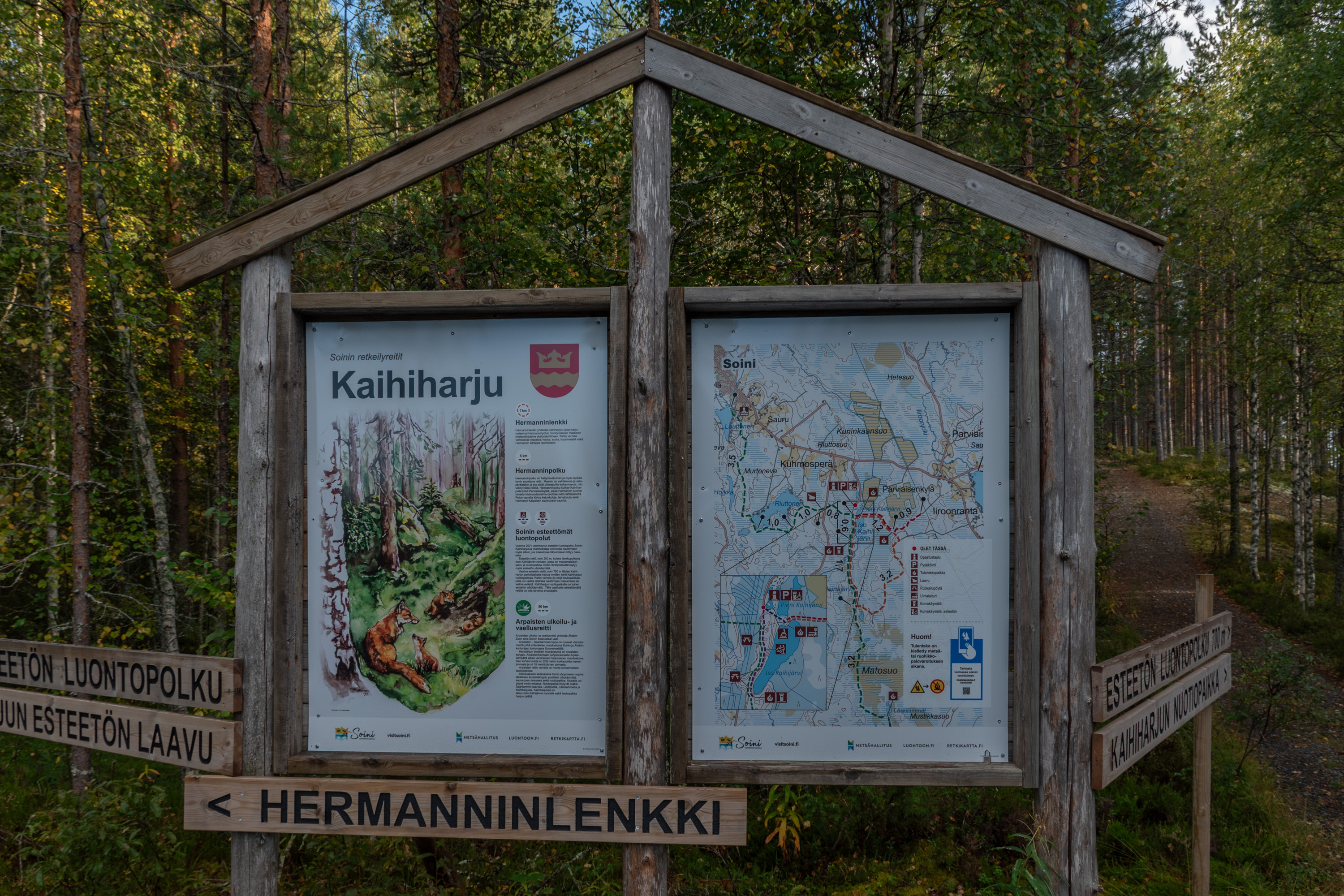 Природу Суоменсельки я уже показывал в постах про национальный парк Саламаярви и про кольцо Оленя в нем же. Сойни находится южнее; хоть на первый взгляд вроде и примерно те же самые края, а все же до Саламаярви добрых 75 км по дорогам, приличные тут расстояния. Но природа и тут хорошая, и пеших маршрутов довольно много, хоть и малоизвестных; самый большой — Арпайненский маршрут (Arpaisten reitti), длиной 55 км, соединяющий село Сойни с известным зоопарком Эхтяри (Ähtäri; тем, где были панды) на окраине одноименного города. А в этом посте я покажу немного фото с тропы Херманни (Hermanninlenkki), кольцевой тропы длиной 7 км, в лесах и болотах примерно к 6 км к юго-востоку от центра села, по дороге в сторону Мультии. Мне довелось там погулять красивым летним вечером; Сойни находится всего где-то в 20 км от дачи родителей моей партнерши-финки, в Лехтимяки, и как-то раз, отдыхая на этой даче, мы решили вечерком погулять где-нибудь по лесу, выбрали именно это место и не пожалели.
