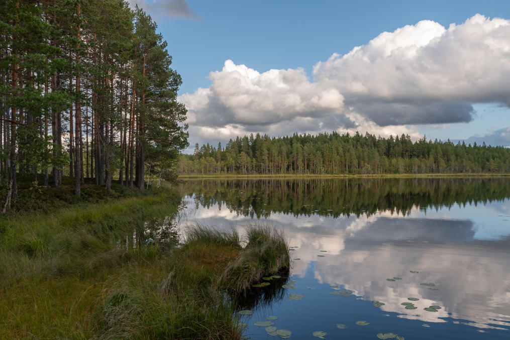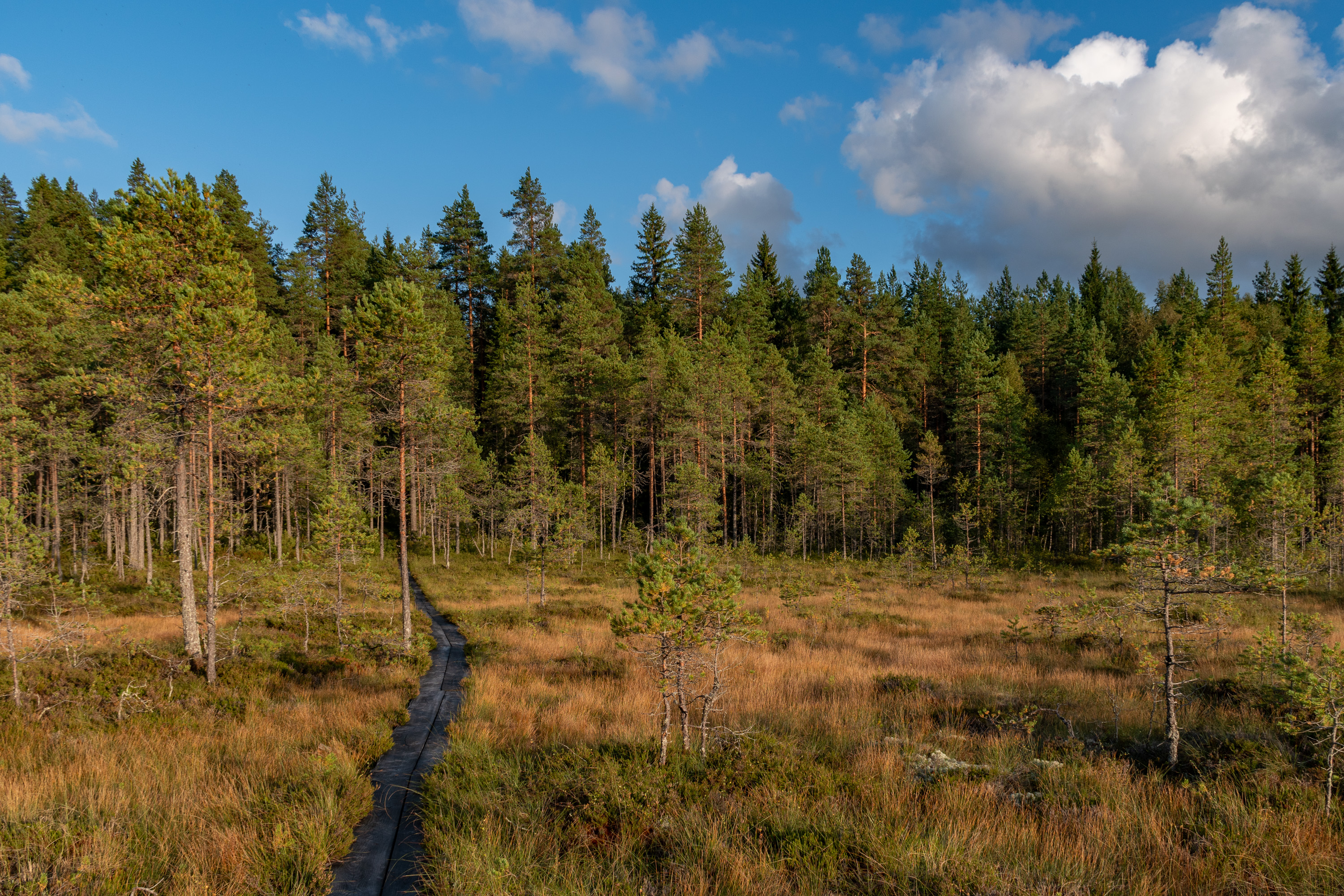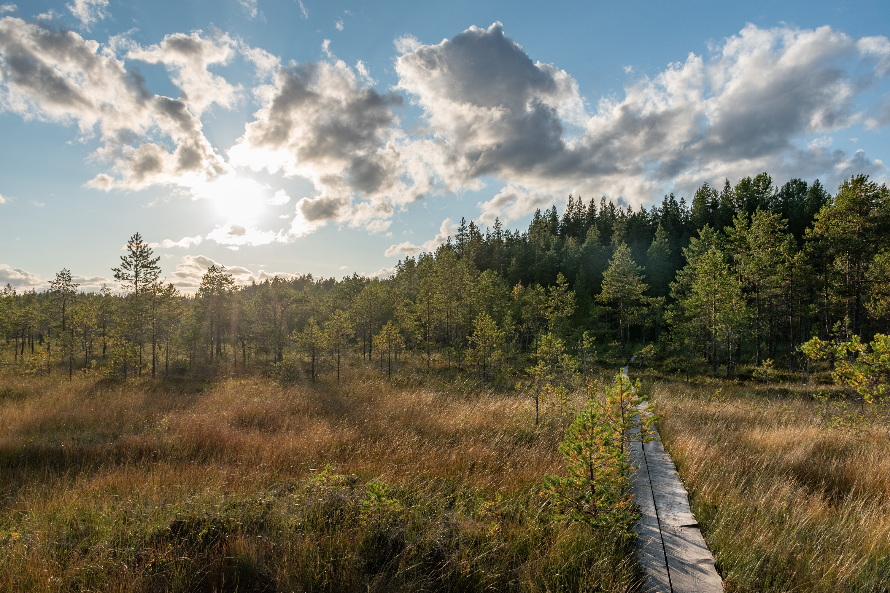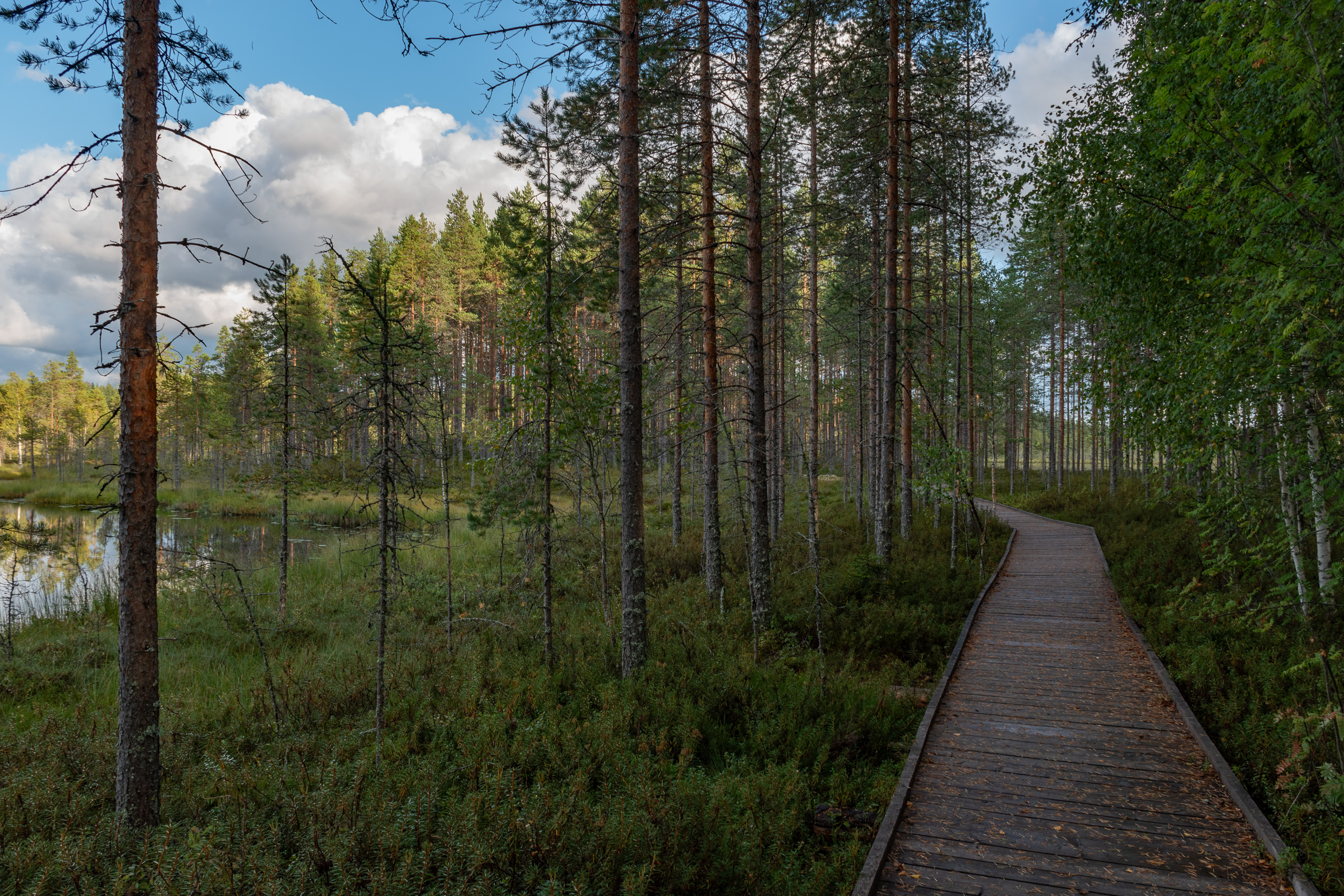 Природу Суоменсельки я уже показывал в постах про национальный парк Саламаярви и про кольцо Оленя в нем же. Сойни находится южнее; хоть на первый взгляд вроде и примерно те же самые края, а все же до Саламаярви добрых 75 км по дорогам, приличные тут расстояния. Но природа и тут хорошая, и пеших маршрутов довольно много, хоть и малоизвестных; самый большой — Арпайненский маршрут (Arpaisten reitti), длиной 55 км, соединяющий село Сойни с известным зоопарком Эхтяри (Ähtäri; тем, где были панды) на окраине одноименного города. А в этом посте я покажу немного фото с тропы Херманни (Hermanninlenkki), кольцевой тропы длиной 7 км, в лесах и болотах примерно к 6 км к юго-востоку от центра села, по дороге в сторону Мультии. Мне довелось там погулять красивым летним вечером; Сойни находится всего где-то в 20 км от дачи родителей моей партнерши-финки, в Лехтимяки, и как-то раз, отдыхая на этой даче, мы решили вечерком погулять где-нибудь по лесу, выбрали именно это место и не пожалели.