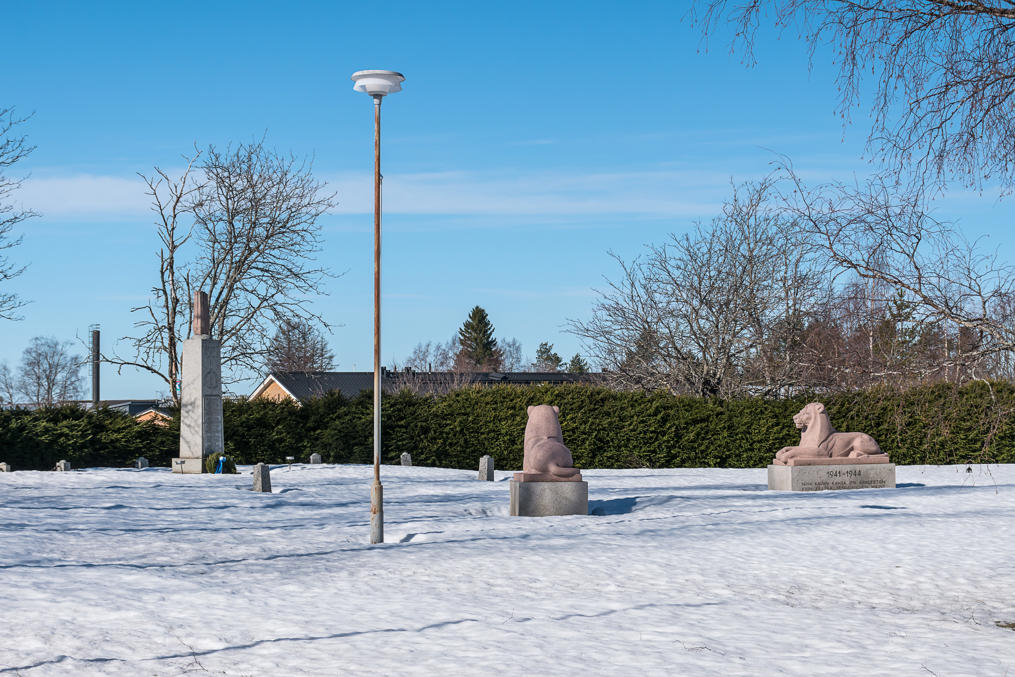 3. Воинские памятники; сами могилы наверняка под снегом, не видно тут. Слева Гражданской войны 1918, справа 1941-1944 с подписью "Народ не будет носить оковы, пока жива слава его героев".