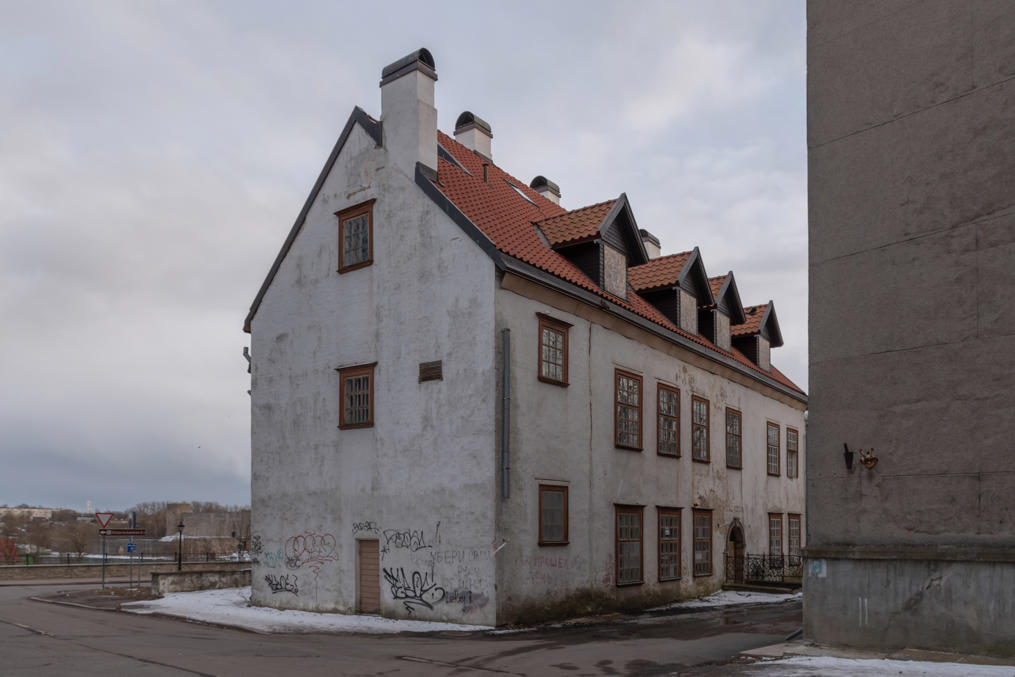 74. Основные позднесоветские жилмассивы находятся в северных и западных районах Нарвы, где мы тоже не побывали. Но подобной архитектурой можно и тут, на Пушкина, полюбоваться. Непонятно, почему в Нарве все дома строили без балконов — выглядят из-за этого, как общежития, хотя, с другой стороны, нет балконов — меньше возможности их изуродовать.
