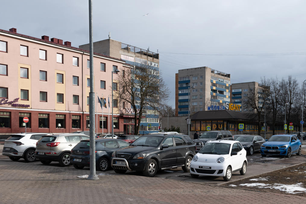 75. Ладно, это было последнее отступление. Прогулка по Нарве наконец-то подходит к концу. Площадь Пауля Кереса — большое круговое движение в самом центре города.