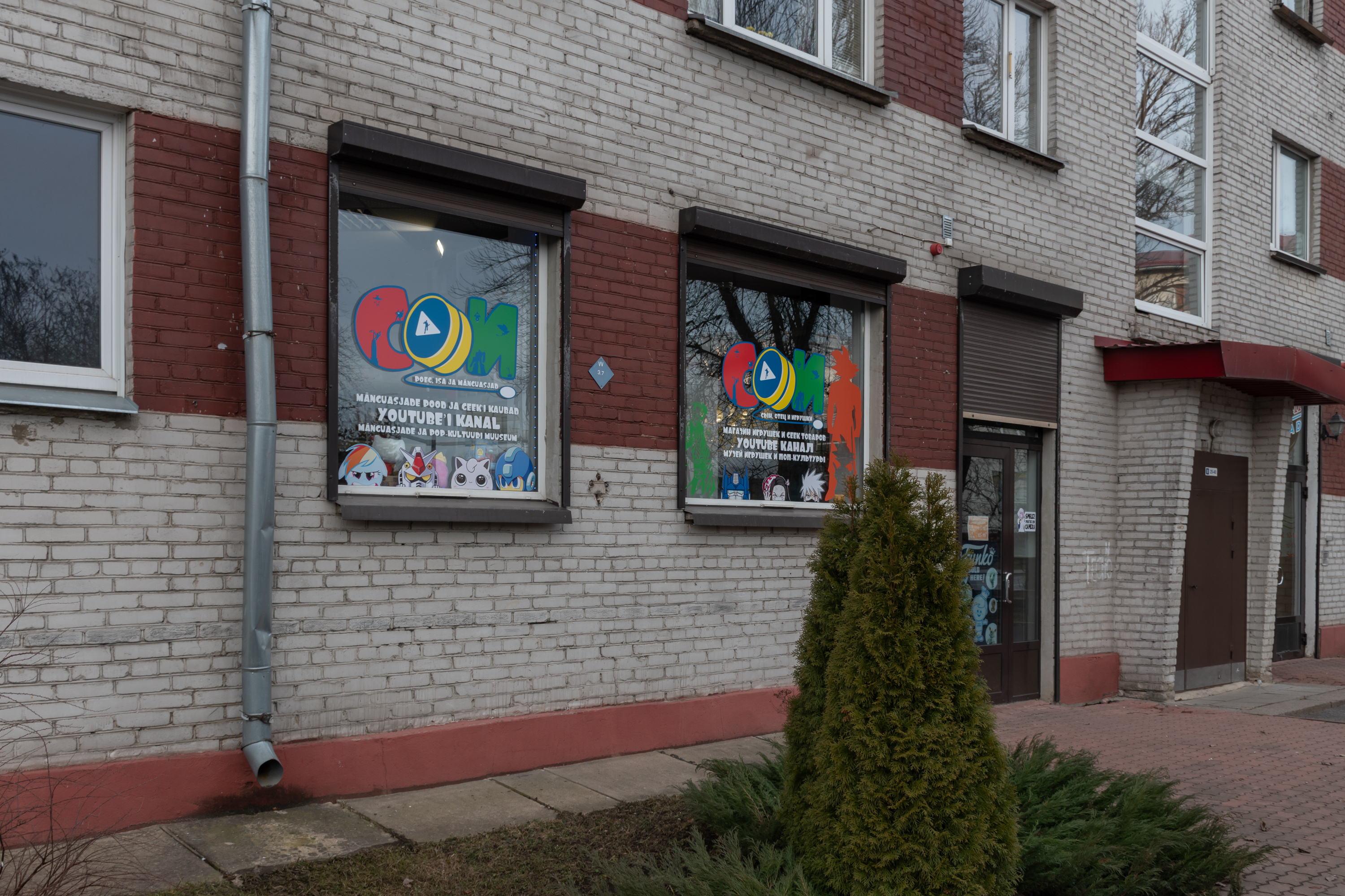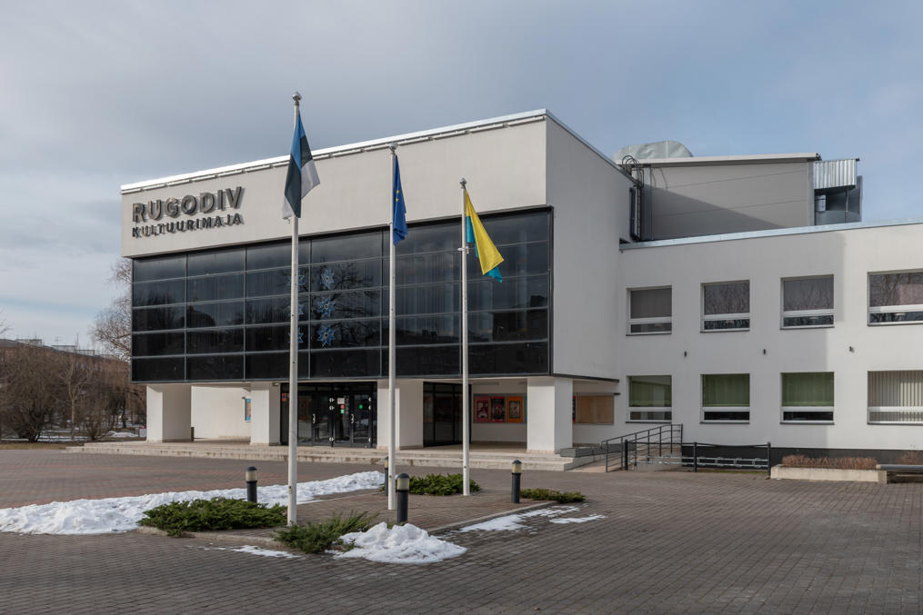 38. Но все ж нельзя, конечно, сказать, что прям совсем все русское тут как-то давят. Вон на те же русскоязычные СМИ не покушаются вроде пока что. Или вот дом культуры "Ругодив" — это древнее русское название Нарвы, неизвестной этимологии — название не меняют :) Флаг справа — флаг города Нарва, который, конечно, в наши дни путают с украинским, хотя он по сравнению с украинским вверх ногами, и цвет голубой совсем другого оттенка.