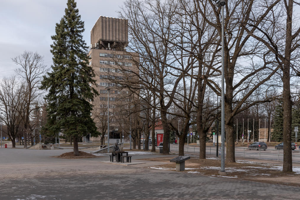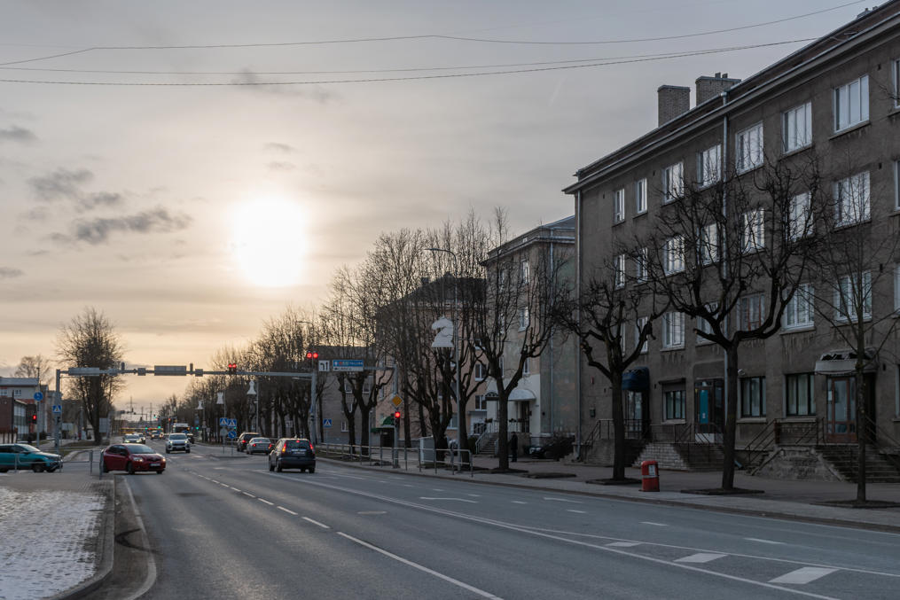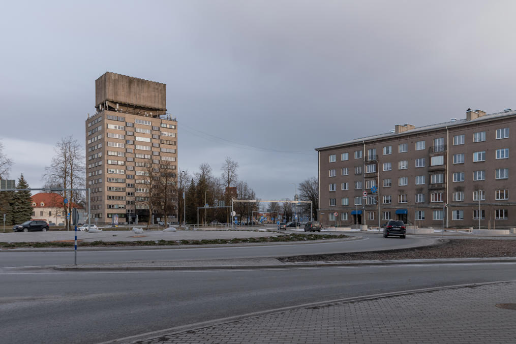 76. Отсюда начинается Таллиннское шоссе (Tallinna maantee) — эстонская национальная трасса 1. Шахматные фигуры на фонарных столбах тоже, видимо, в честь Пауля Кереса.