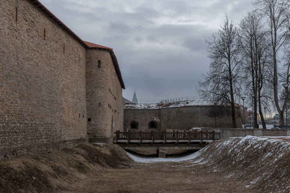44. Бастионы, построенные при шведах, звались Спес (Надежда), Юстиция (Суд), Пакс (Мир), Виктория (Победа), Гонор (Честь), Глория (Слава), Фама, Триумф и Фортуна (Удача). Все сохранились, кроме Фамы (западнее места, где он был, ныне ТЦ Fama Keskus), и по крайней мере некоторые реставрированы. На фото прямо под замком небольшой бастион Спес. Самый известный же — Виктория, северный из обращенных к реке, в его казематы тоже водят экскурсии, а на нем и рядом с ним разбит старый Темный сад с несколькими важными памятниками. Тоже, к сожалению, не дошли туда.