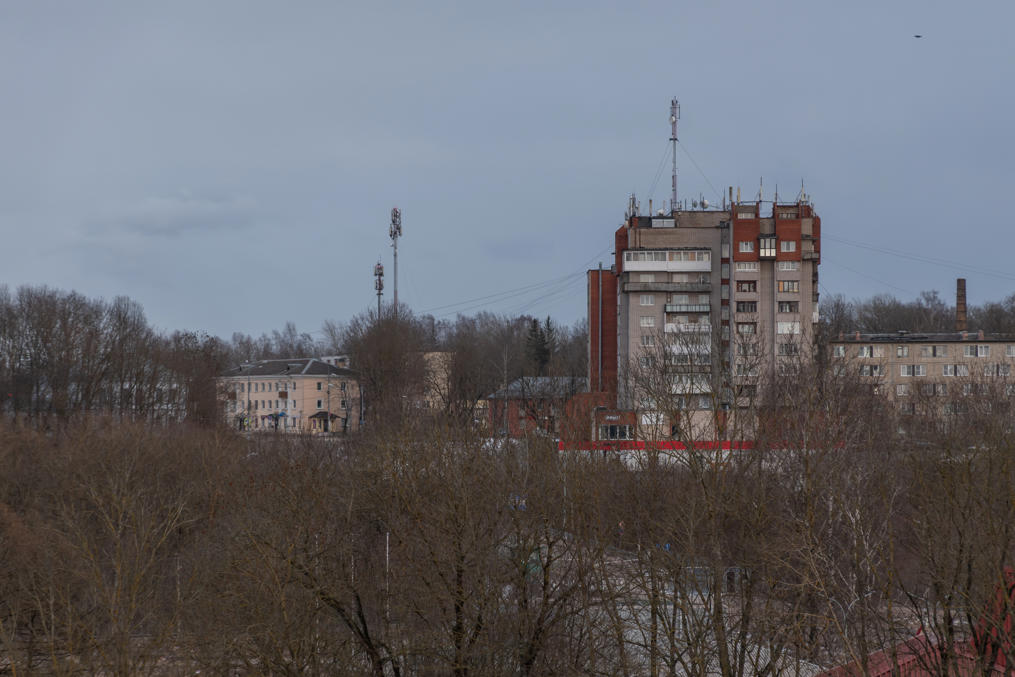 59. Ну и видно чуть-чуть, конечно, центр Ивангорода, с одинокой девятиэтажкой, и даже магазин в ней отсюда вполне уверенно можно опознать как "Магнит".