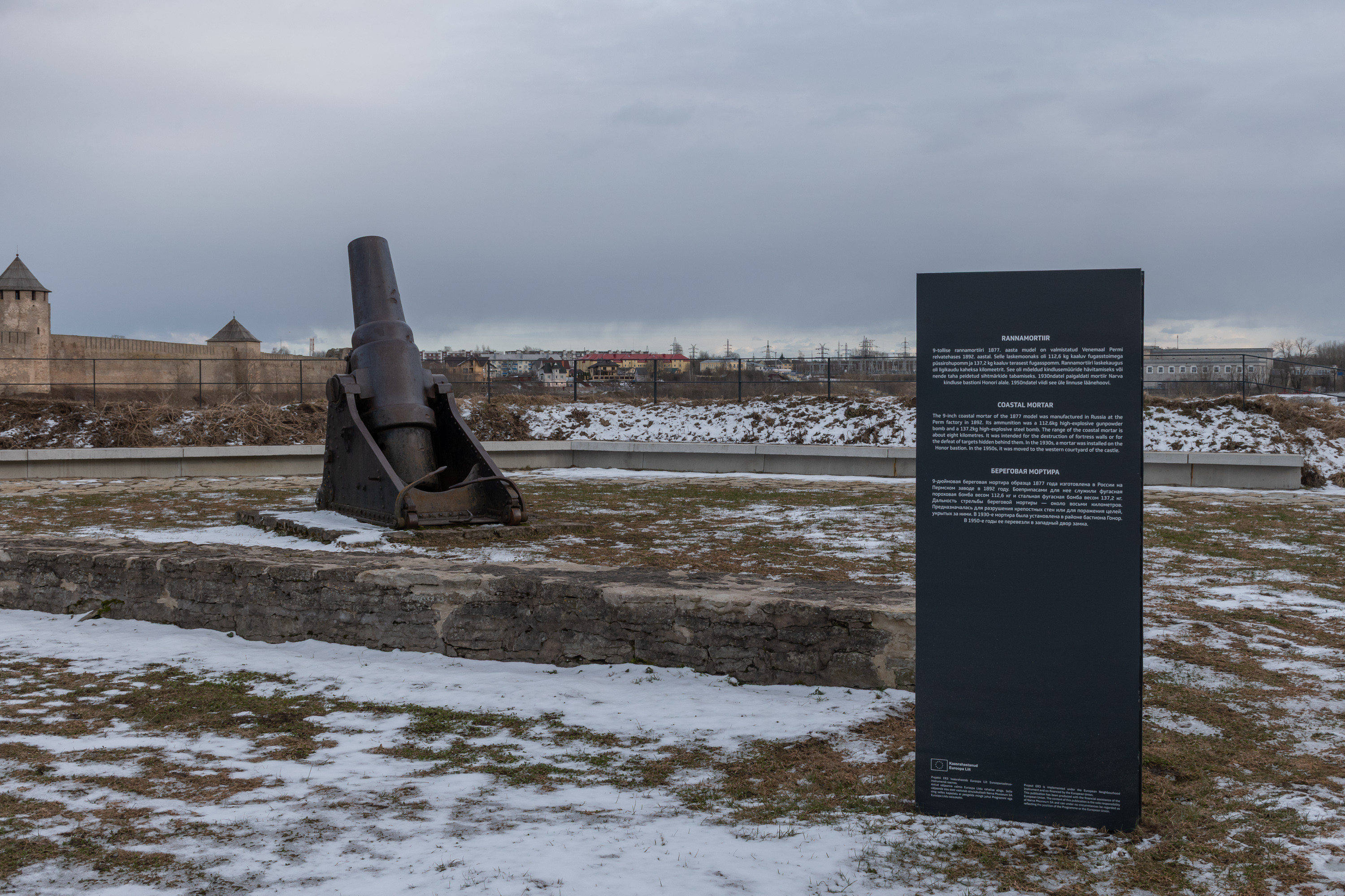 49. Ликвидация советских памятников войны в Эстонии после 2022 тоже в Нарве стала особенно острым моментом. Тут, на приграничной Петровской площади (Peetri plats), где стоит надпись Narva, раньше чуть правее на стене видного за ней бастиона Триумф висела большая мемориальная доска советским воинским частям, участвовавшим в освобождении или, если угодно, реоккупации Нарвы в 1944, только на русском. Ее сняли в августе 2022 — я даже не знал о ее существовании, хотя место показалось странно пустым, уже потом в интернете прочитал.