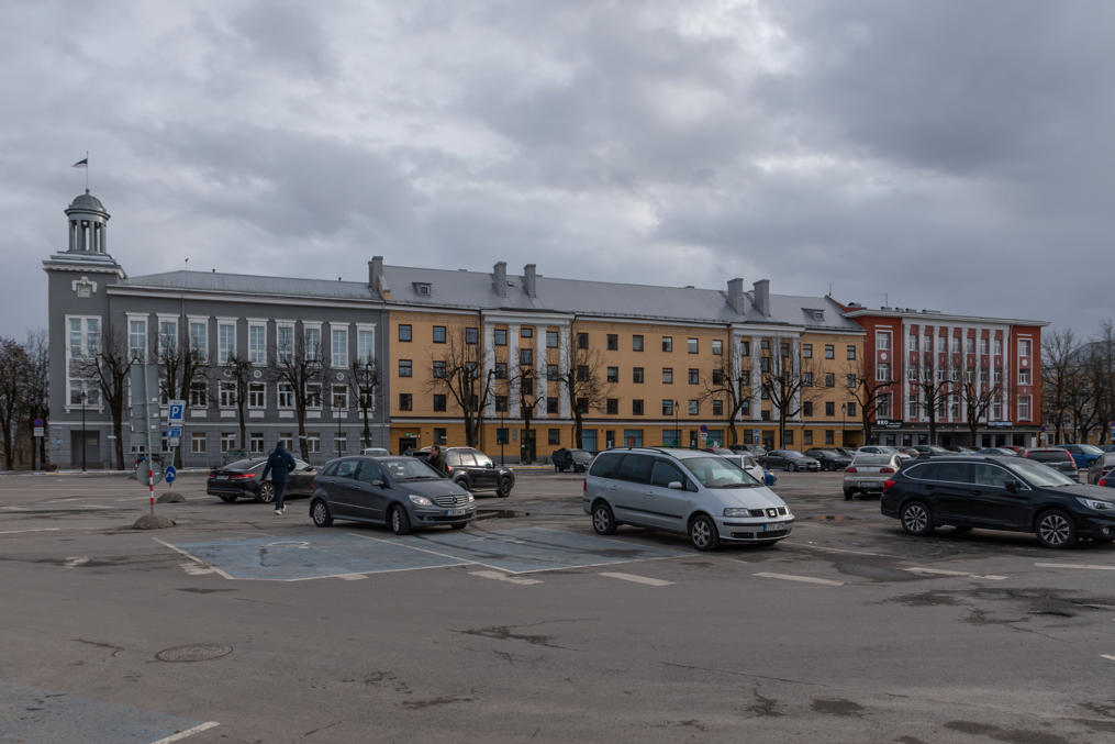52. Петровская площадь — единственное, кроме замка, что я раньше видел в Эстонии, когда проезжал ее без остановки. В левом здании, довоенной постройки, размещается в наши дни городская администрация.