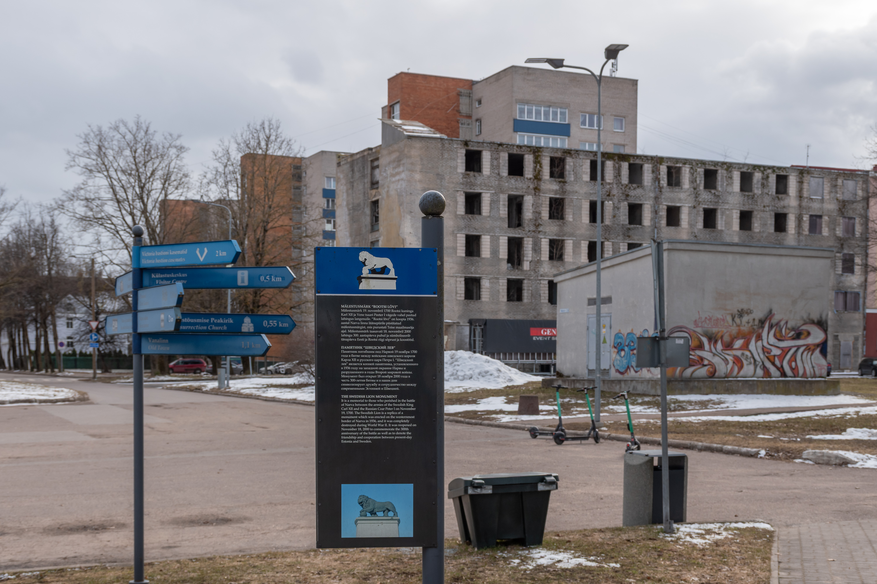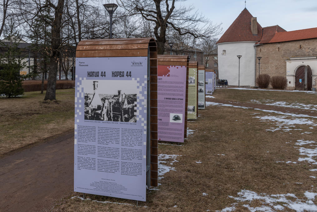 48. В сквере перед замком, который я рассмотрел плохо, стоят щиты с информацией в т. ч. о бомбардировках Нарвы в 1944, когда город был практически полностью уничтожен. Формулировка на щите на фото, конечно, интересная, "в марте 1944 советская авиация совершила разрушительный налет на эстонские города", как будто просто из ненависти к Эстонии она это сделала, а не потому, что тут еще оставались немцы — но немцы на этом щите вообще не упомянуты. Впрочем, в Эстонии, как я понимаю, есть версии, что их в целом и Нарву в частности специально бомбили особенно сильно. Город, конечно, могли бы восстановить, как восстановили Таллинн или Петергоф, или как в Европе в разных странах города восстанавливали, но, видимо, не стало приоритетом. По-видимому, это и стало еще одним фактором того, что при СССР город стал русским — эстонцам просто негде жить оставалось. Конечно, и при Первой Республике тут русских было достаточно заметное количество.