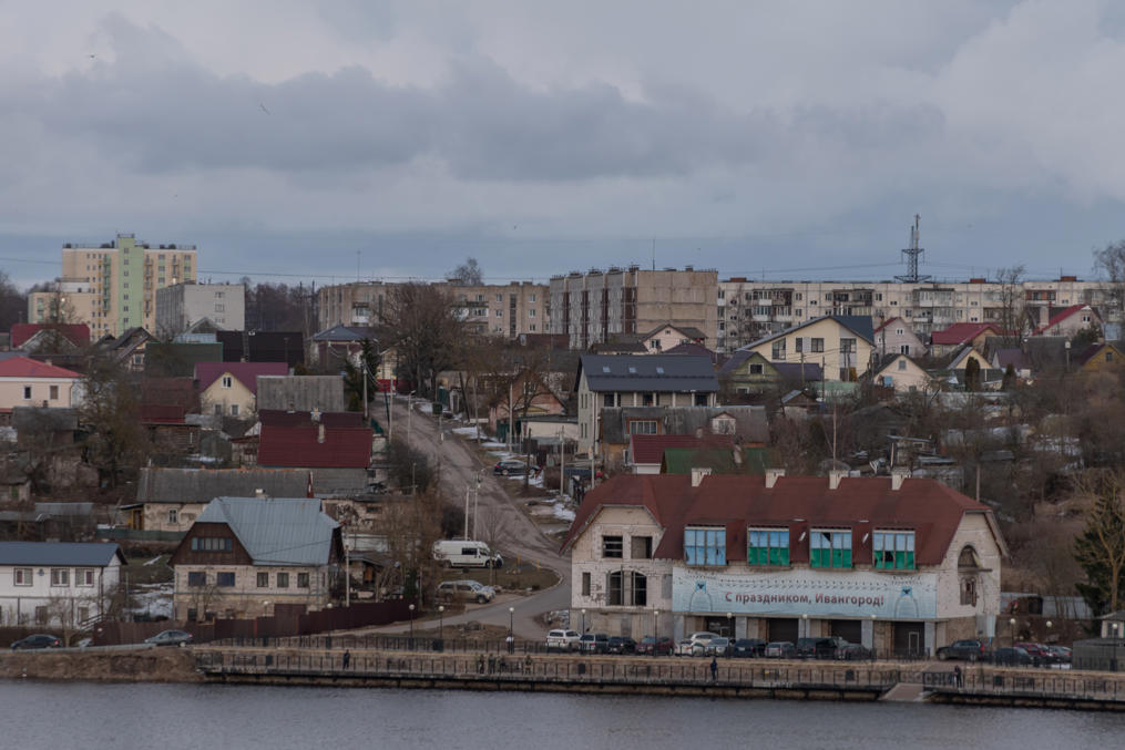 63. А Ивангород дальше на север снова становится совсем малоэстетичен. Вообще тут были после 2022 случаи, когда из Ивангорода для нарвитян какие-то представления устраивали. Танк ладно, а вот в 2023-2024 были концерты на День Победы у стен крепости, на которые нарвитяне массово приходили через реку посмотреть. А из Нарвы в ответ на стену замка вешали плакат Putin War Criminal, но его ивангородцы, по-видимому, оценили куда меньше. Но что то, что другое детский сад какой-то, конечно.
