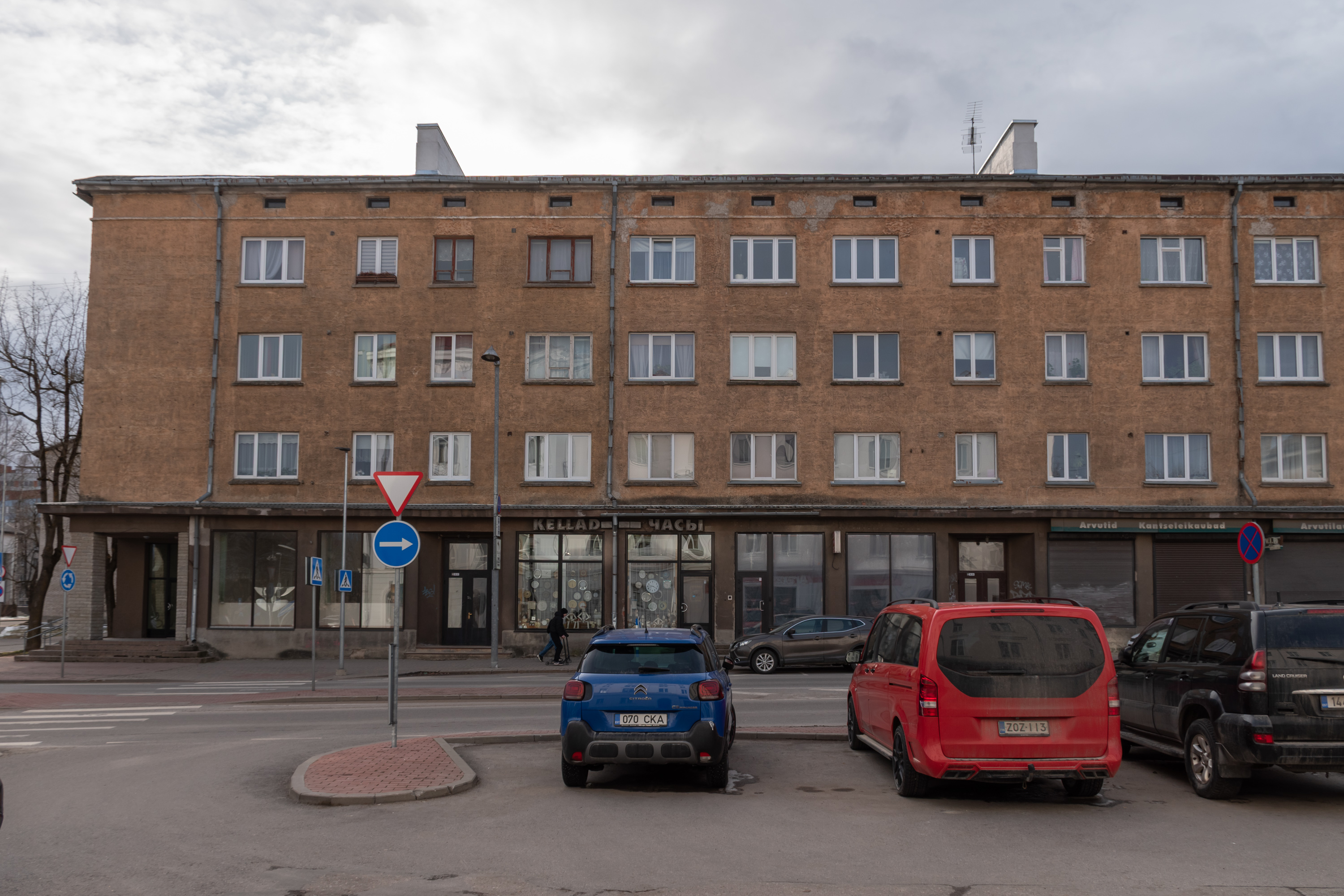 37. А на этом доме сохранилась, видимо, еще советских времен вывеска с русским "Часы" (и даже магазин сохранился). Но вообще в Нарве странно выглядит то, что русских надписей не то, чтобы мало, но они не бросаются в глаза — по эстонским законам эстонский язык для юридических лиц всегда должен быть во всех вывесках, объявлениях и проч. первым и более заметным, а другие языки могут быть лишь после эстонского. И есть специальный орган, который это контролирует, см., например, новость от прошлого года. Так что ни одного эстонского слова мы за весь день не услышали, зато вывески на эстонском повсюду.