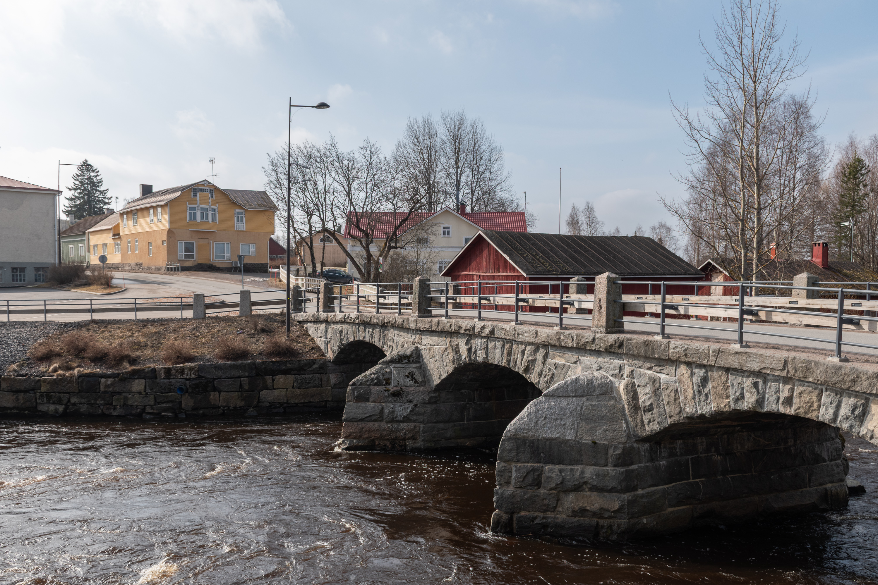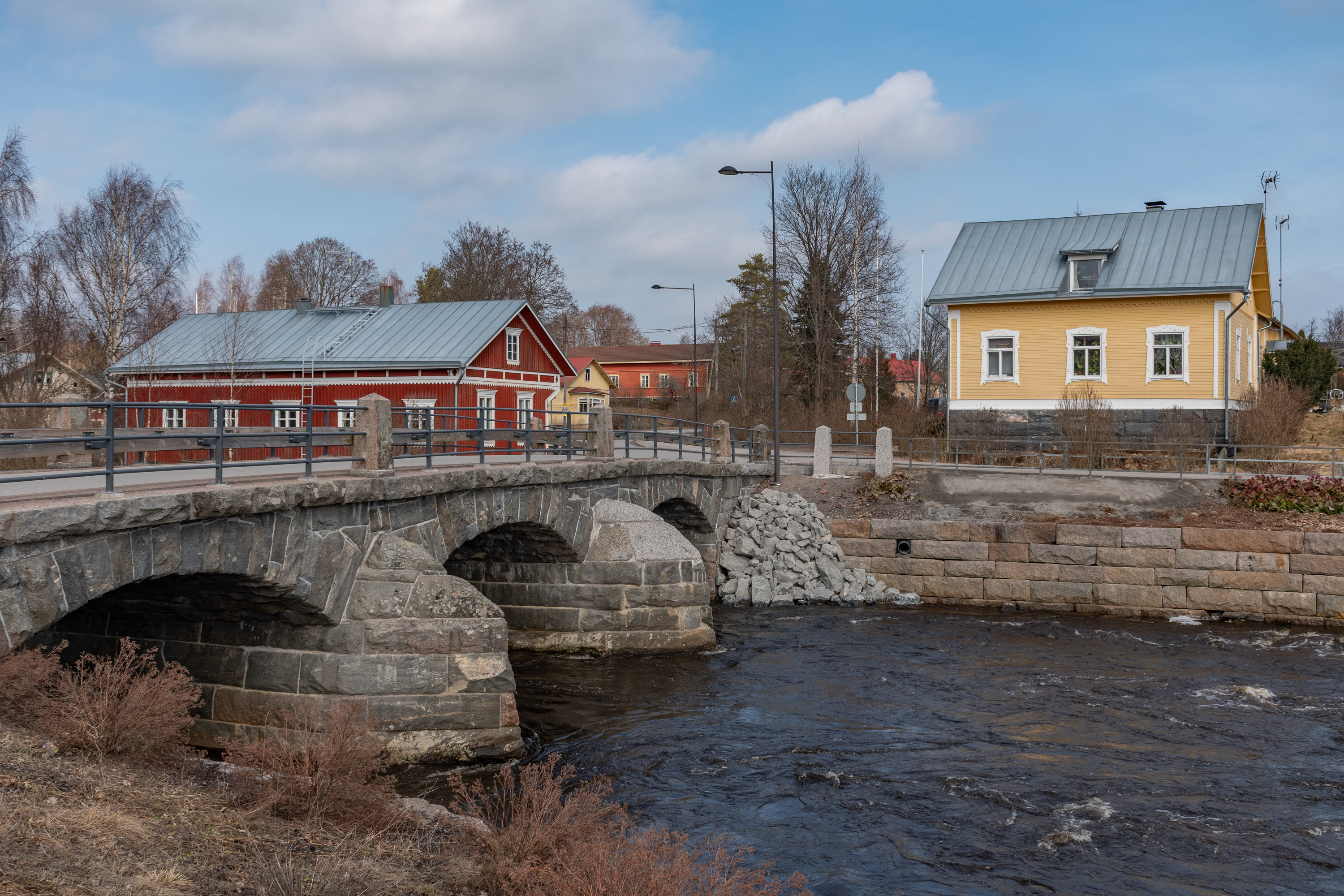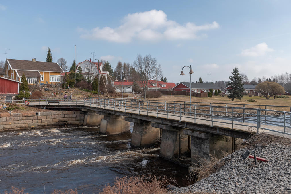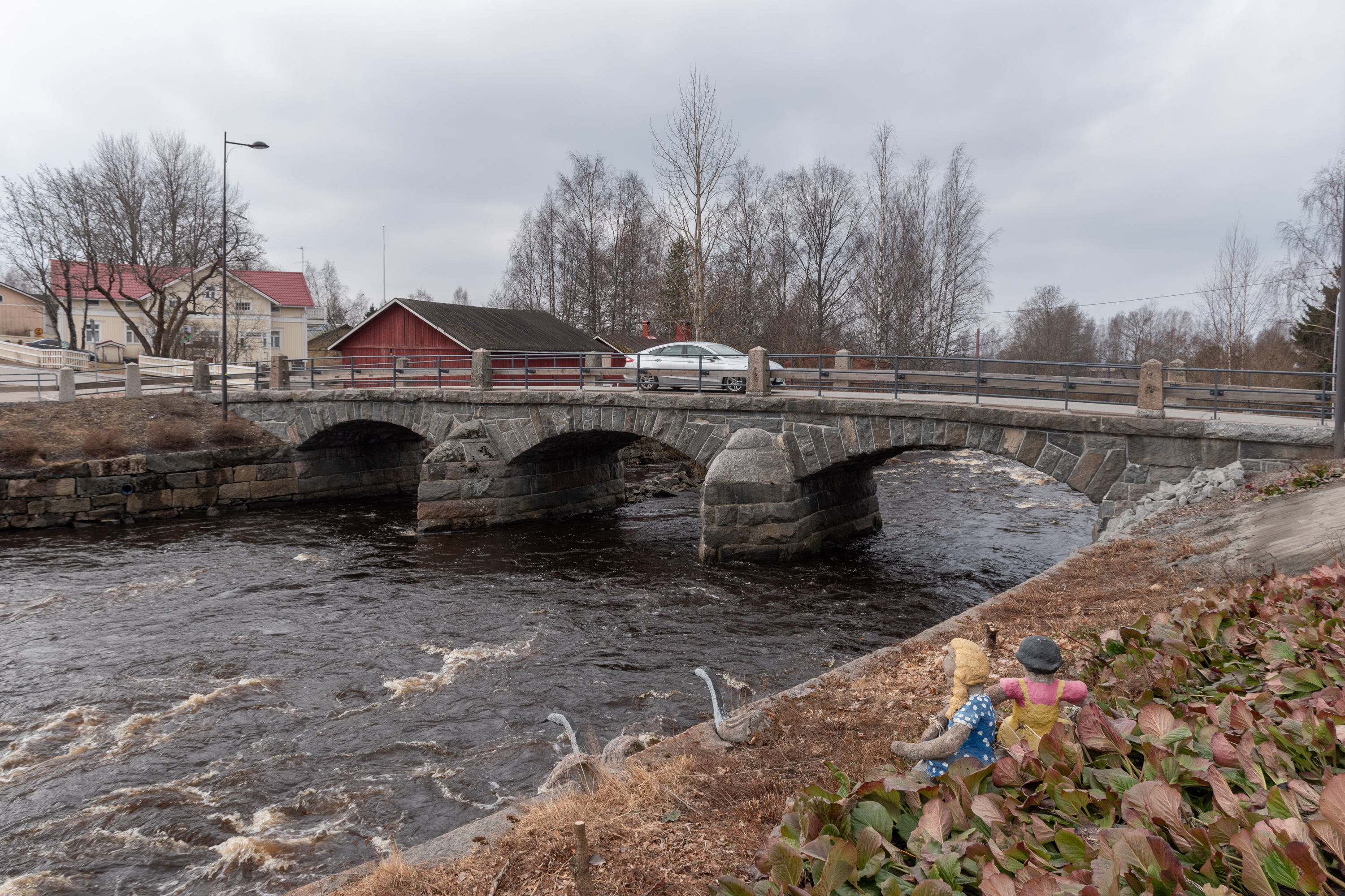 3. Мост слишком узкий даже для тротуара, и тротуар проложен по соседней с ней плотинке Кюлянкоски (Kylänkoski, фин. Деревенские пороги), одной из трех, регулирующих реку длиной всего 13 км.