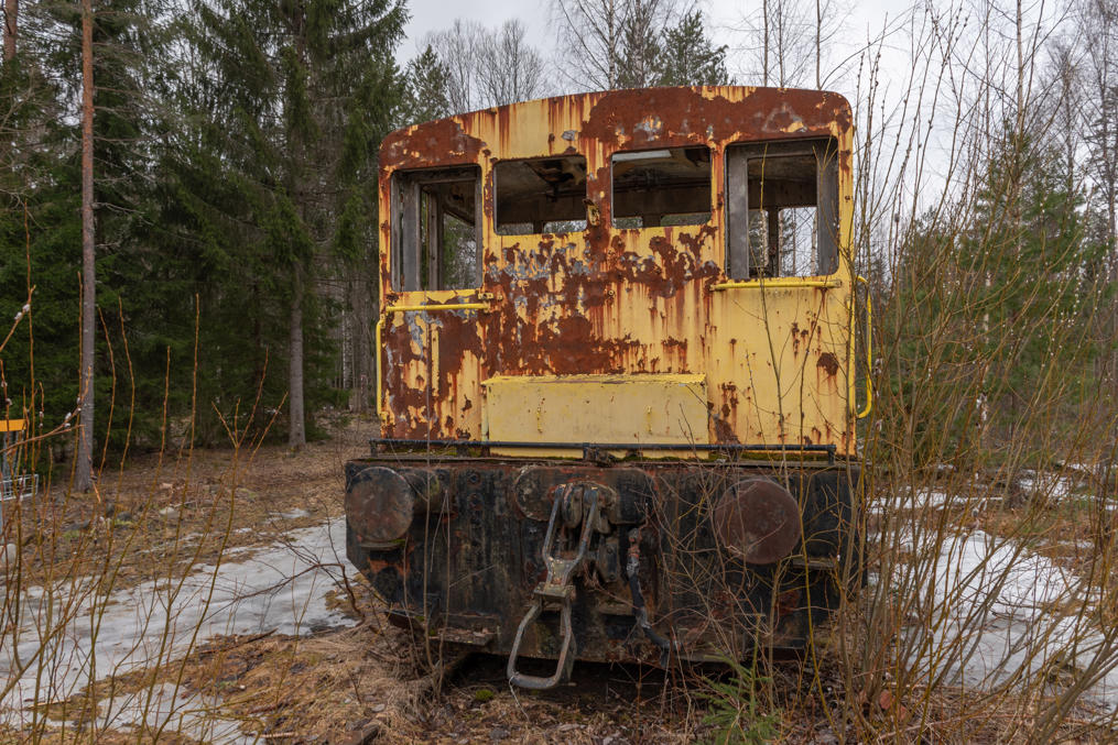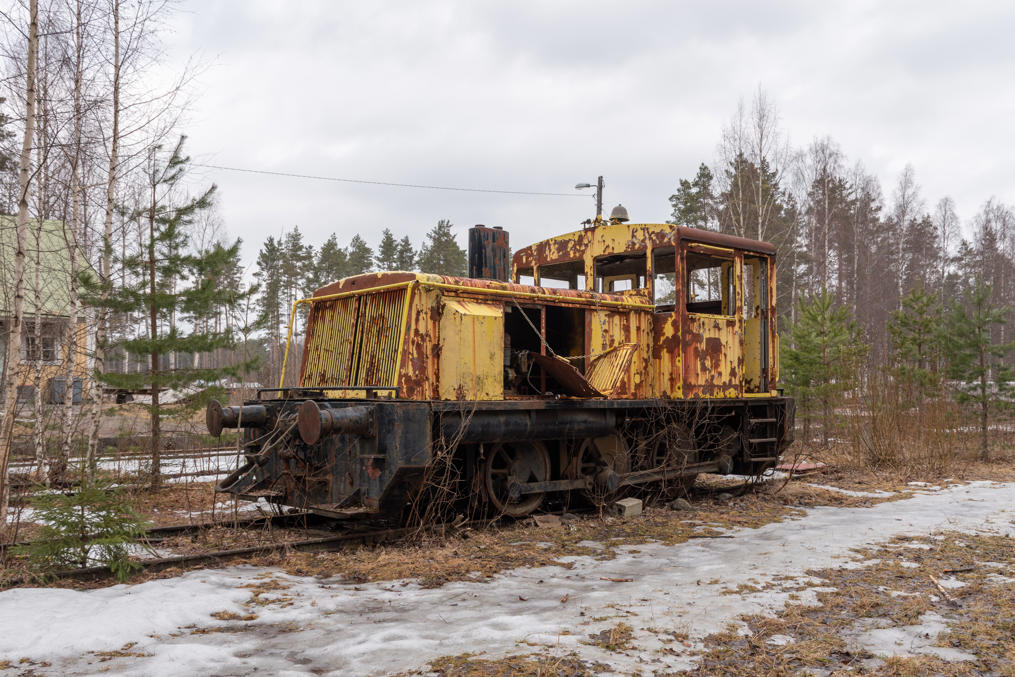 19. На боковом заросшем пути стоит уже лет двадцать как мотовоз-тленовоз. По данным vaunut.org, это модель Move51m, такие производили в 1950-х — сейчас никаких табличек и проч. не сохранилось; работал когда-то на медеплавильном заводе Outokumpu в Пори, закрытом окончательно в начале 2000-х; Elämysrautatie выкупили мотовоз в 2005 с базы металлолома и хотели восстановить и оставить тут как памятник, но, видимо, не осилили.