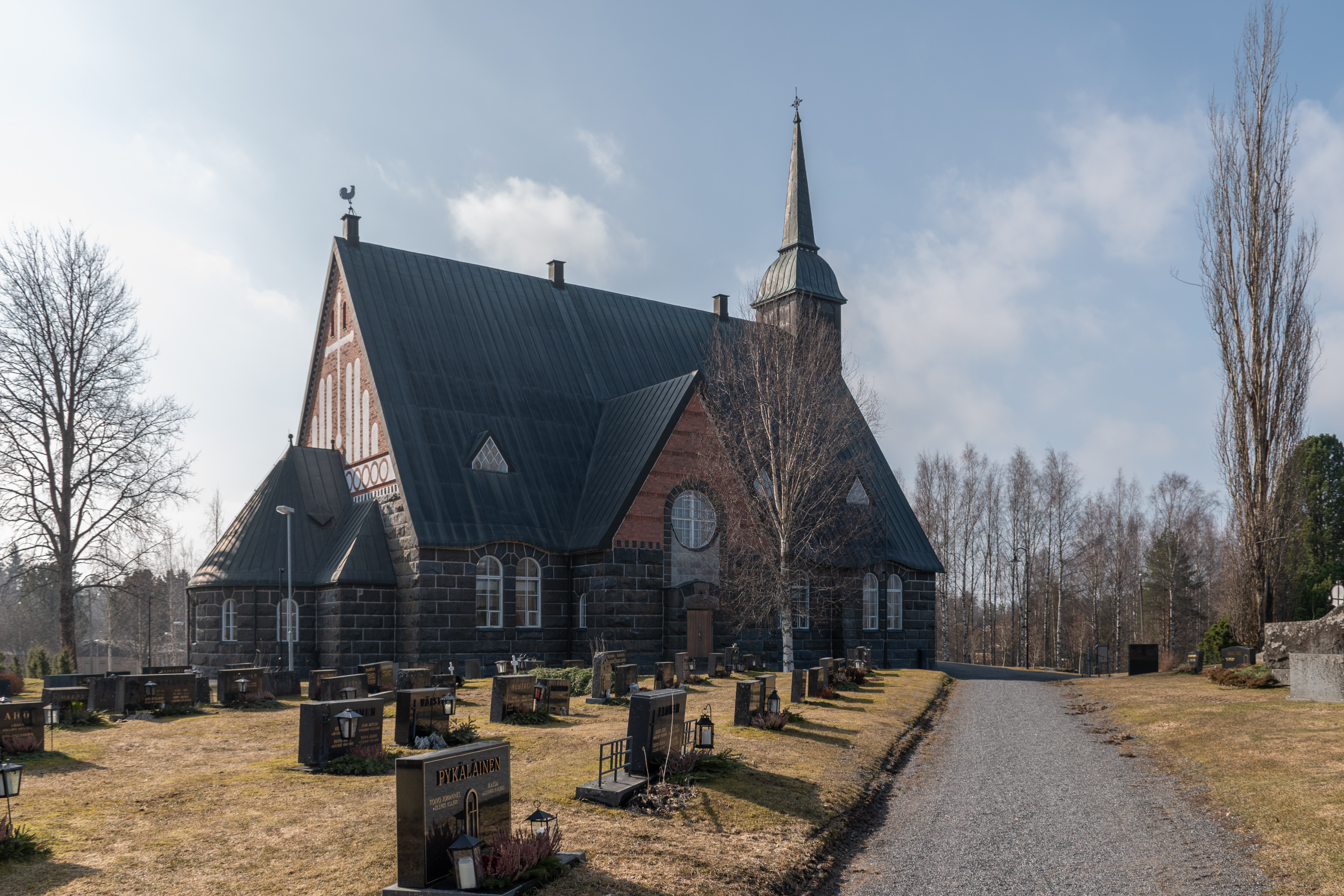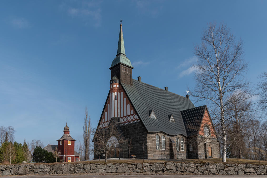 8. Новая же церковь — 1921 года (Илмари Лаунис, Ilmari Launis), в национально-романтическом стиле — облицованная аккуратными серыми гранитными блоками, но с узорами на фронтонах, имитирующими финские средневековые церкви из грубого камня.
