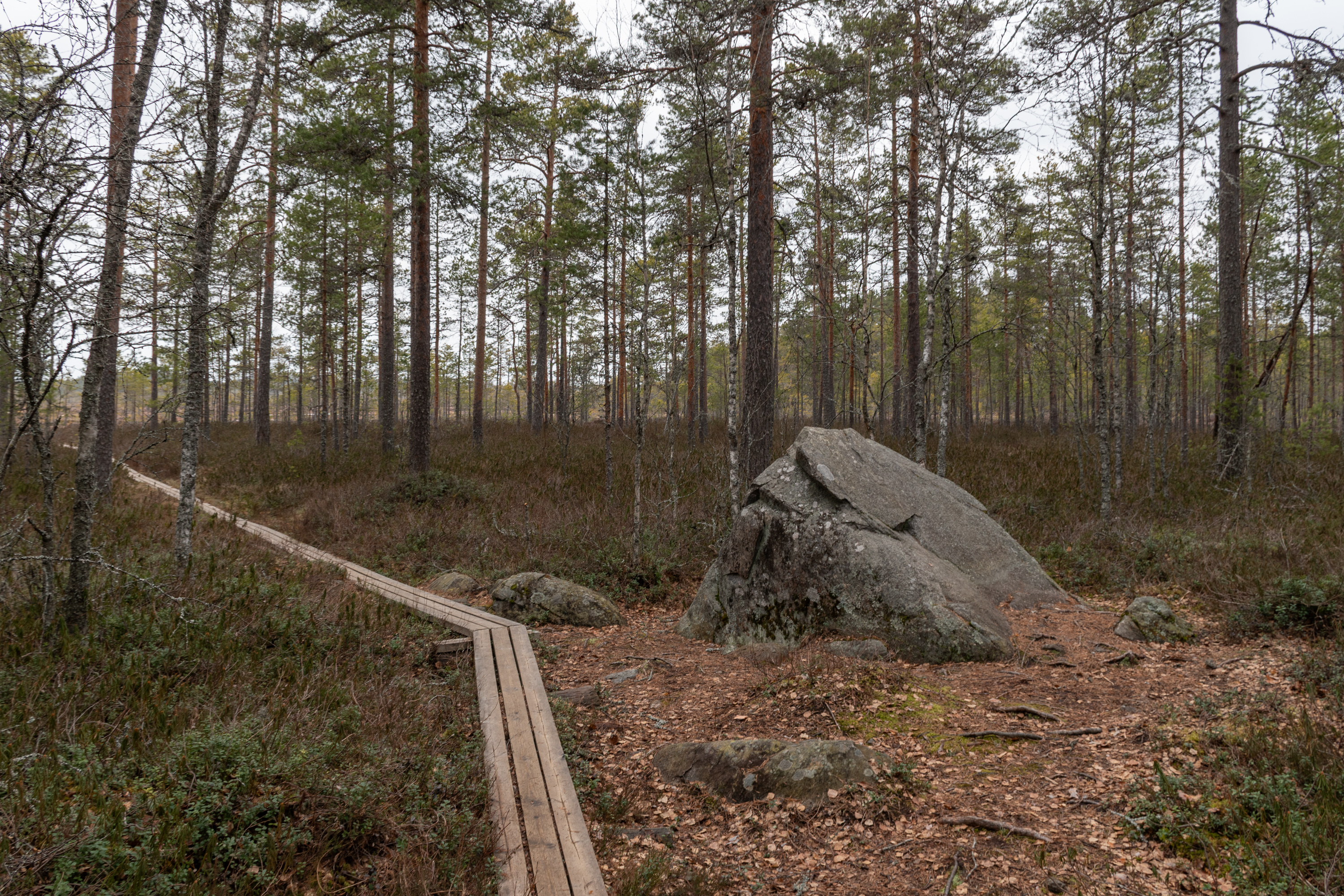 25. Это верховое болото, по краям с сырым сосняком (räme), в центре моховое (neva). По названию на -neva можно понять, что тут просторные открытые пейзажи и много совершенно покрытых водой участков. Площадь болота — 930 га, оно хранит около 24 млн. куб. м торфа, толщиной покрова до 5.3 м. Трасса на Пори и ЛЭП делят его напополам, и основная тропа проходит через северную часть, но и в южную продолжается какой-то старый пеший маршрут.