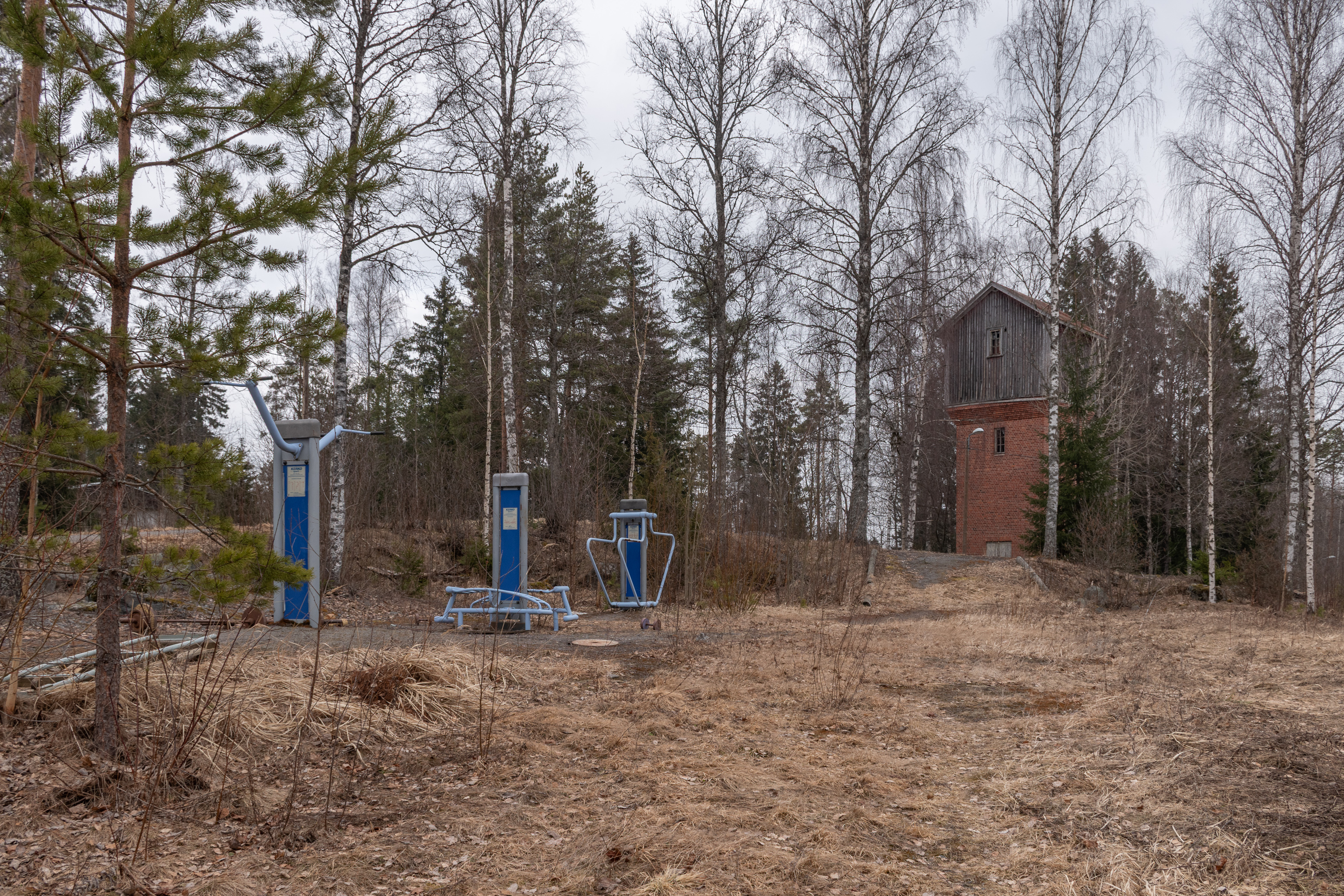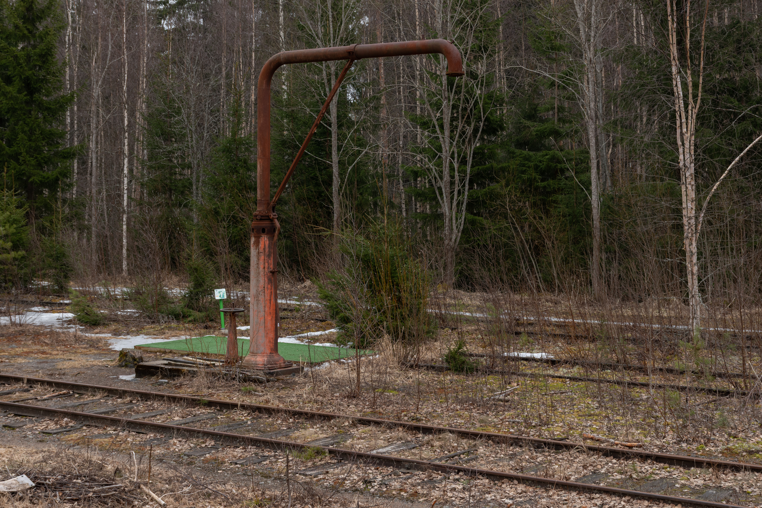 20. Из железнодорожного еще отлично сохранились водонапорная башня (у которой стоят уличные тренажеры и разбит парк для диск-гольфа) и паровозная водоколонка. А ржавые легкие рельсы уходят на северо-восток на Канкаанпяя.