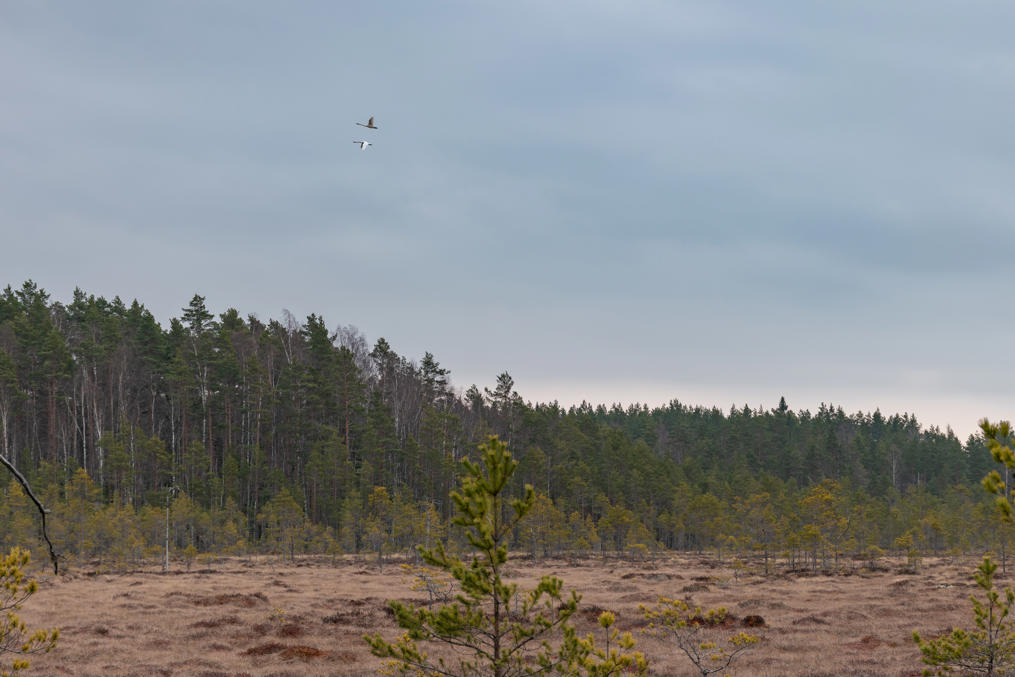 27. Лебеди летят (и вопят) над болотом. В эти выходные я их много повидал.