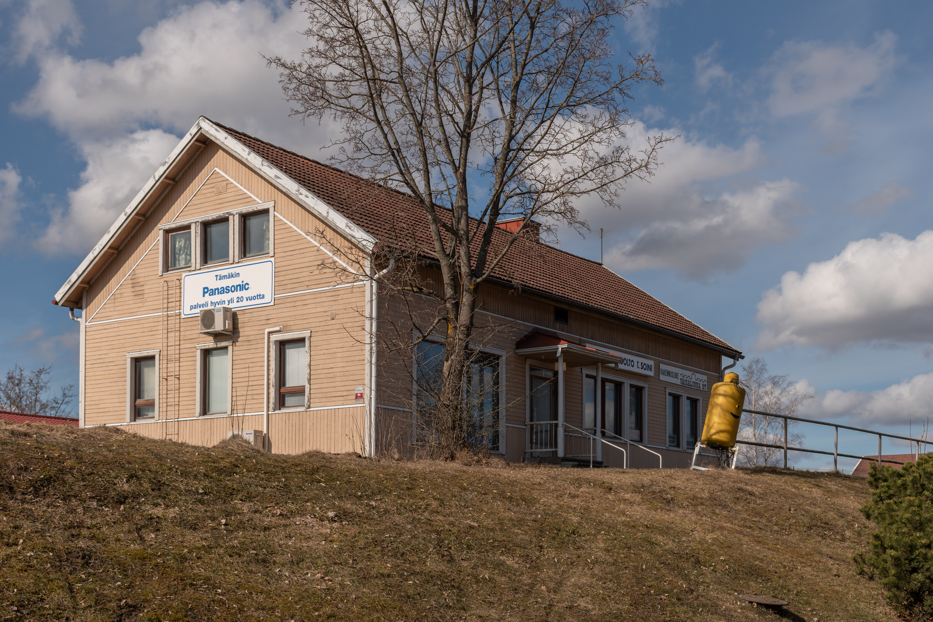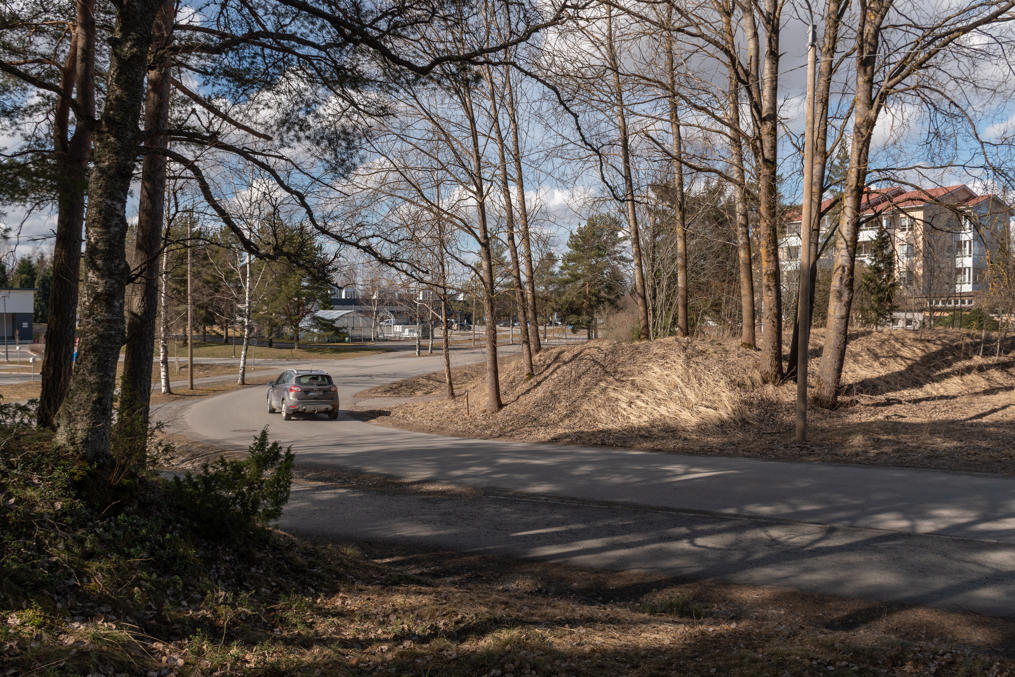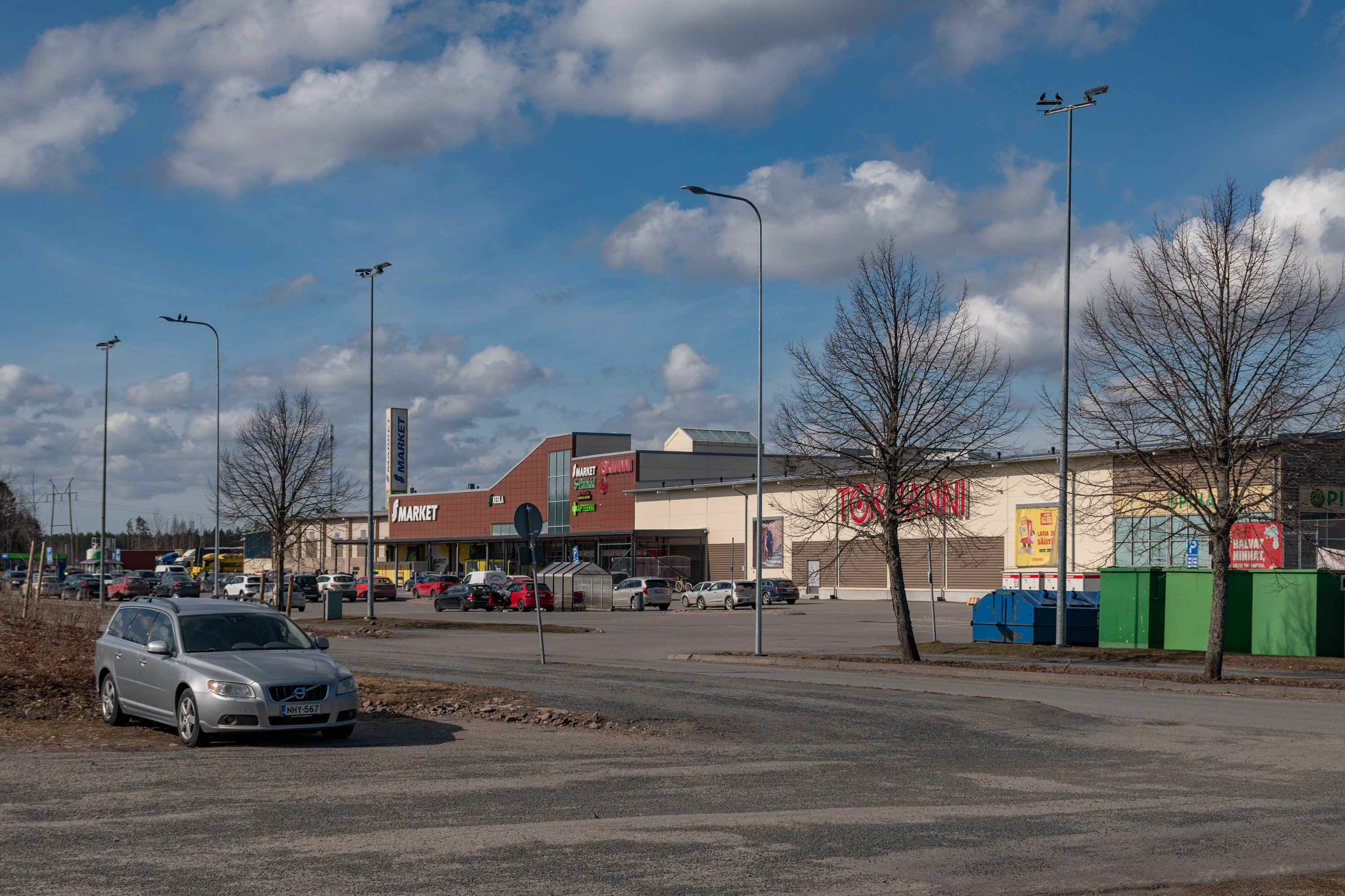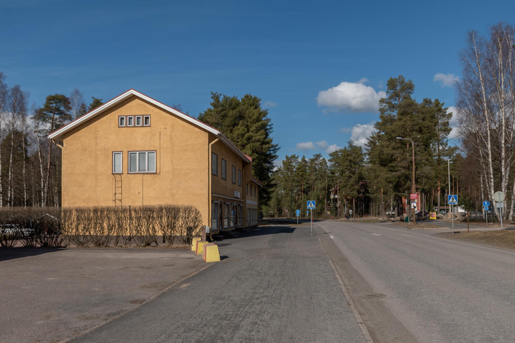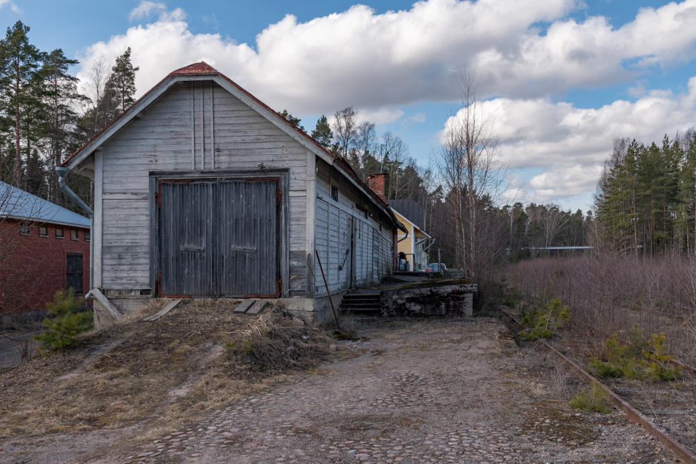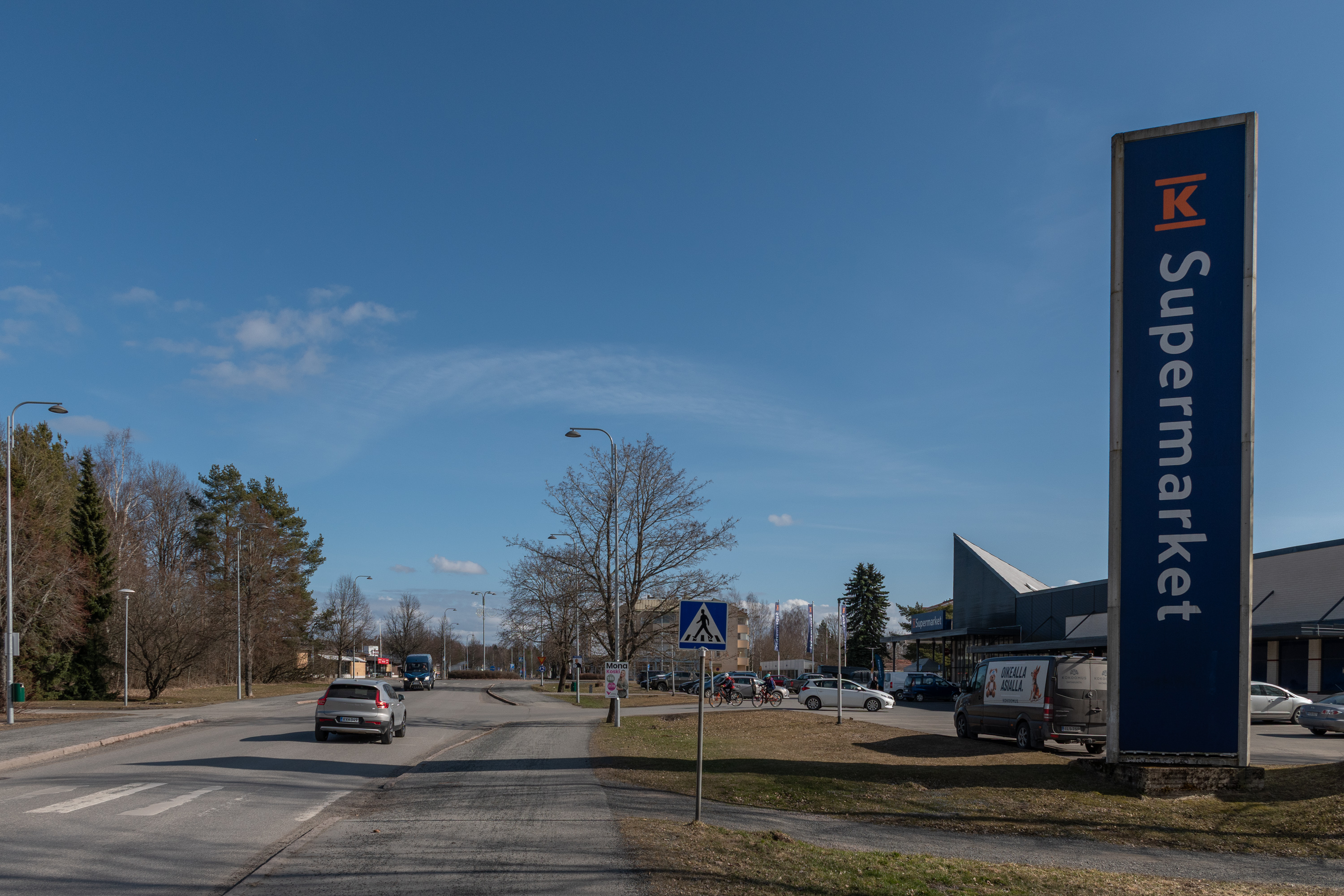 По другую сторону от этой улицы идет заброшенная железная дорога, а за ней — другой завод, машиностроительный, Kone-Tuomi. Раньше еще был производитель упаковки Amcor Flexibles, на OpenStreetMap до сих пор отмечен, но он закрылся в 2019 (минус 127 работников). На заборе промзоны неожиданно обнаружились также таблички "военная территория", так что снимать ее или железную дорогу я не стал, да там ничего и не было интересного. Интересно, почему военная? Этот Kone-Tuomi что-то для военных строит, или, может, было еще раньше что-то, а таблички просто не сняли? Нагуглить не удалось.