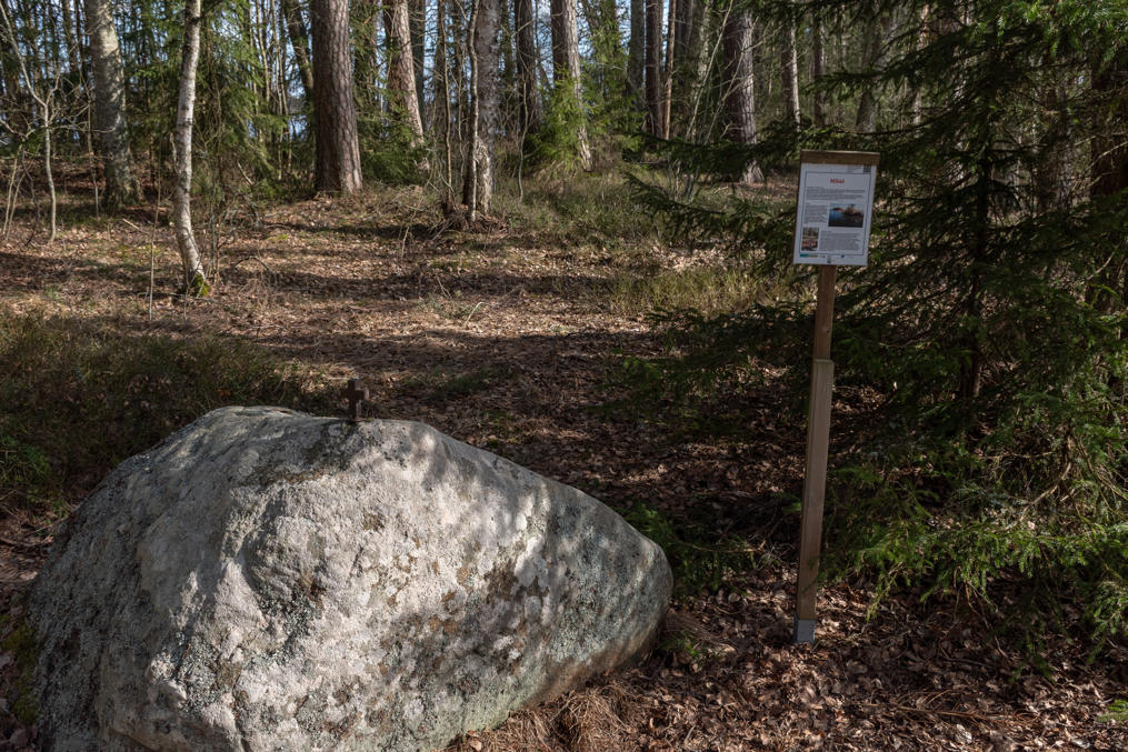 19. Как напоминают на этой табличке, холмик, в те времена, когда на нем хоронили, был островом — в очередной раз в Финляндии изостатический подъем земной коры после последнего оледенения определяет и географию, и историю места.